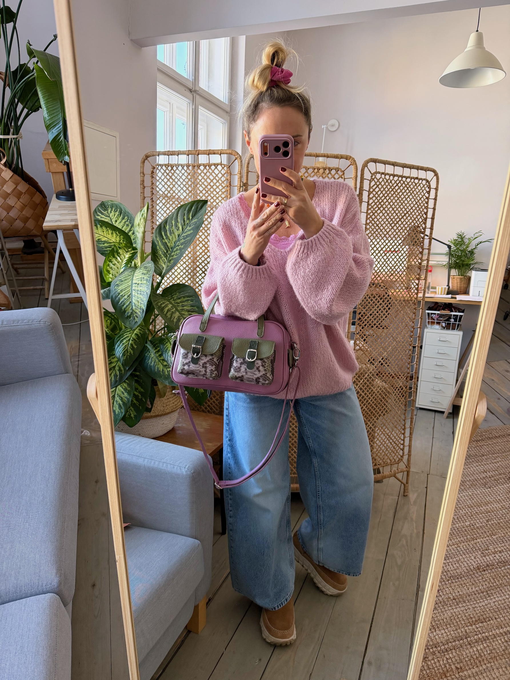 Średniej wielkości torba do noszenia na ramieniu. Uszyta ze skóry naturalnej licowej.