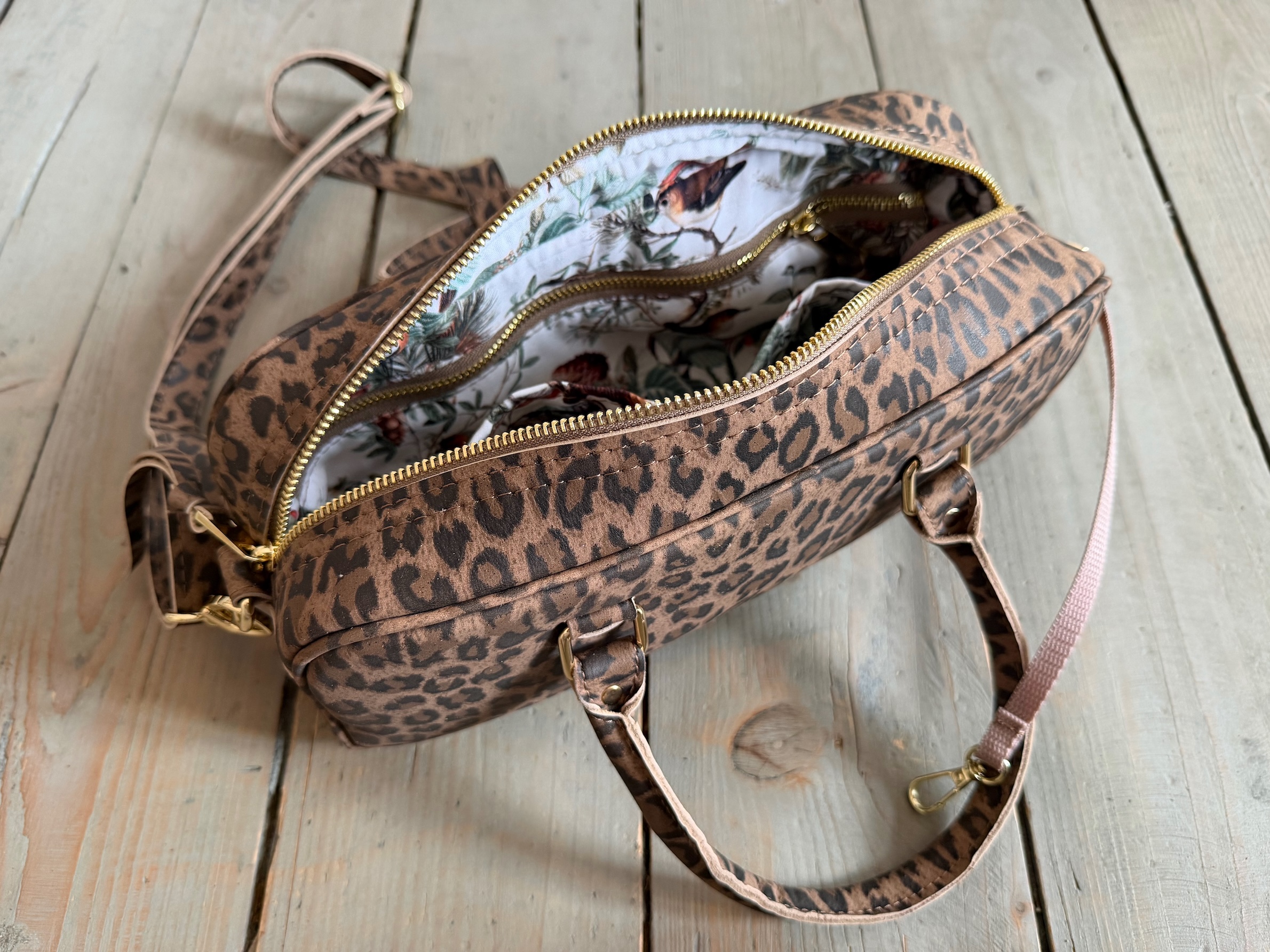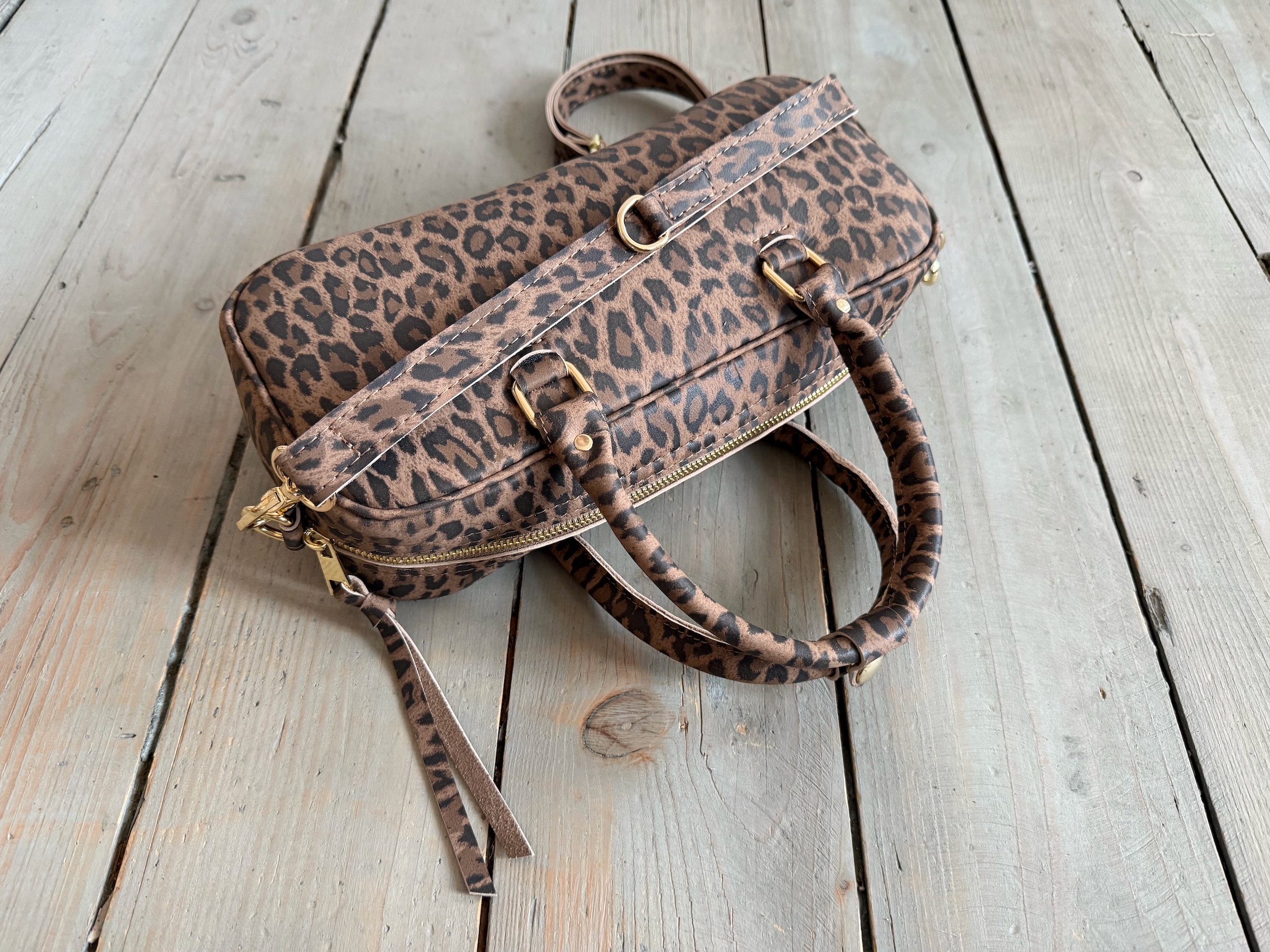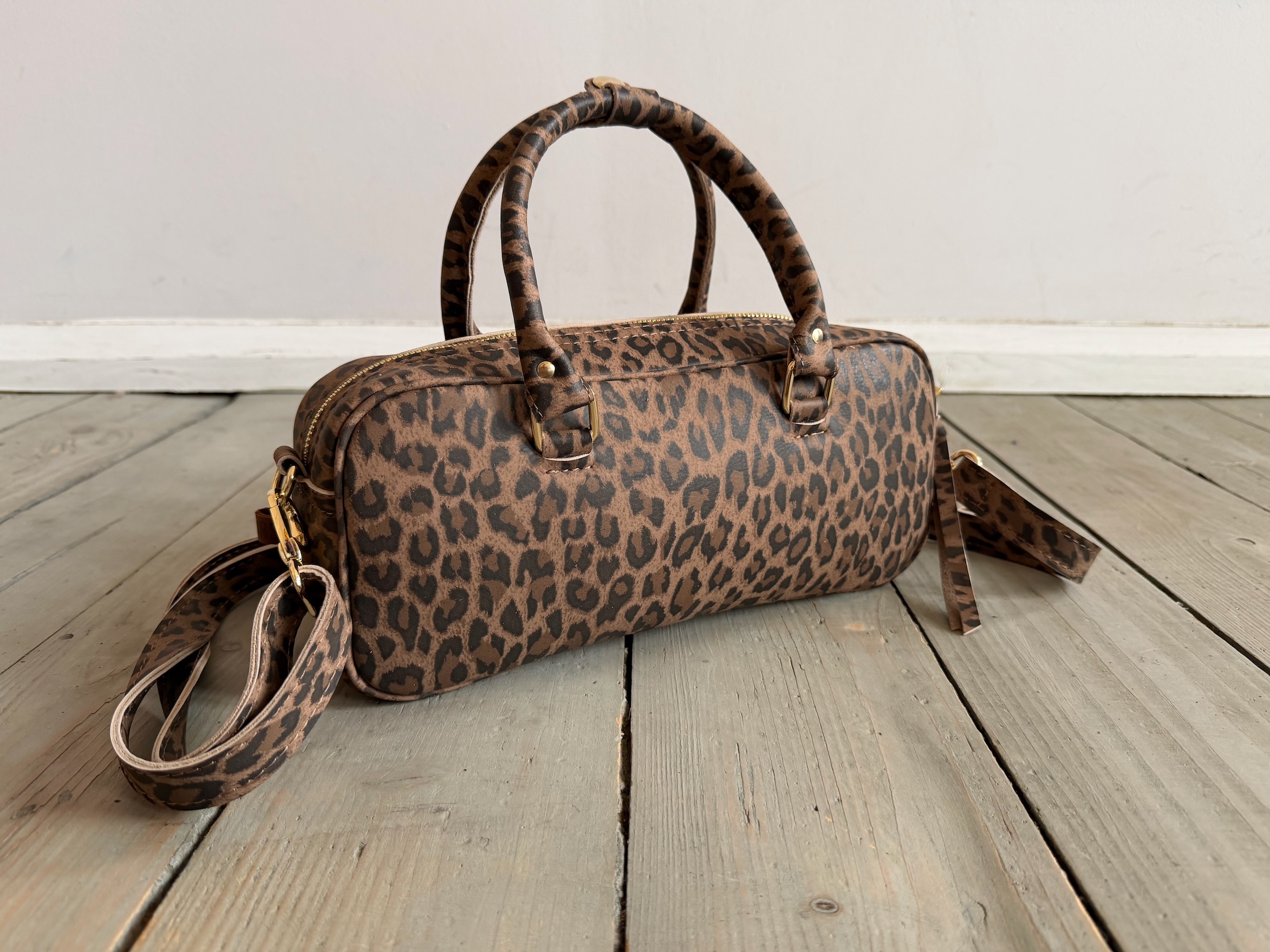 Spora torba bagietka o jamnikowatym kształcie do noszenia w dłoni lub na ramieniu/na skos. Uszyta ze skóry naturalnej nubukowej.
