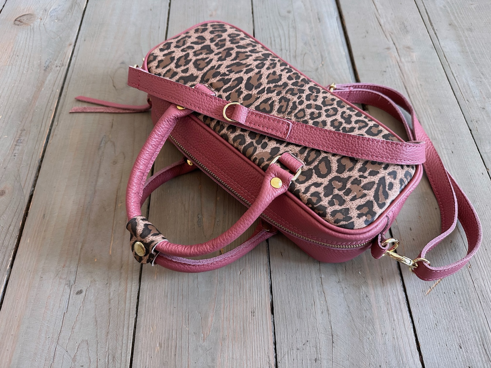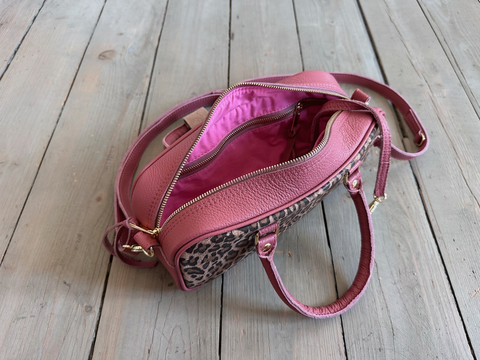 Spora torba bagietka o jamnikowatym kształcie do noszenia w dłoni lub na ramieniu/na skos.Uszyta ze skóry naturalnej licowej + nubukowej.