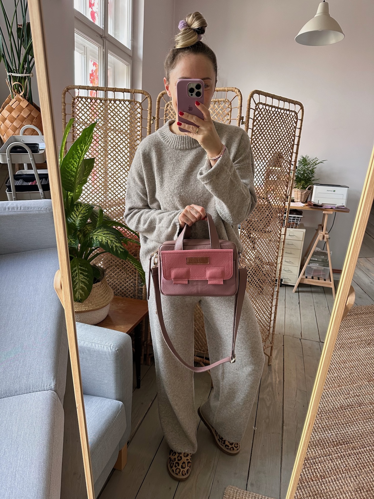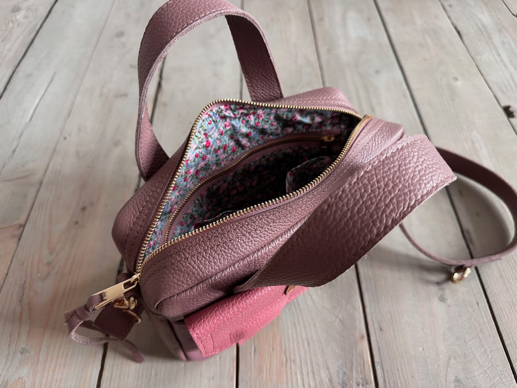 Uszyta ze skóry naturalnej licowej + podszewka 100% bawełny.