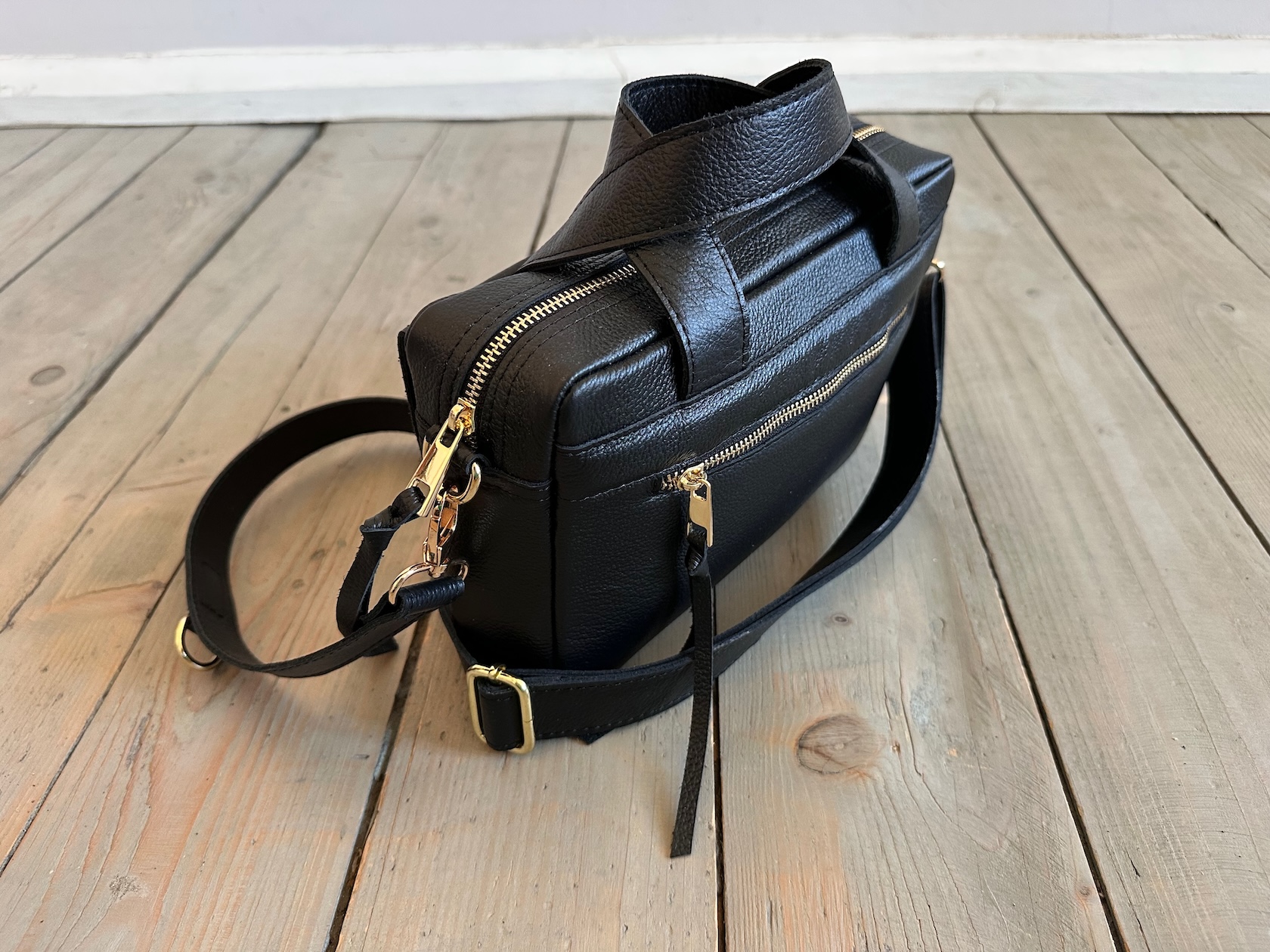 Uszyta ze skóry naturalnej licowej + nubukowej, podszewka 100% bawełny.