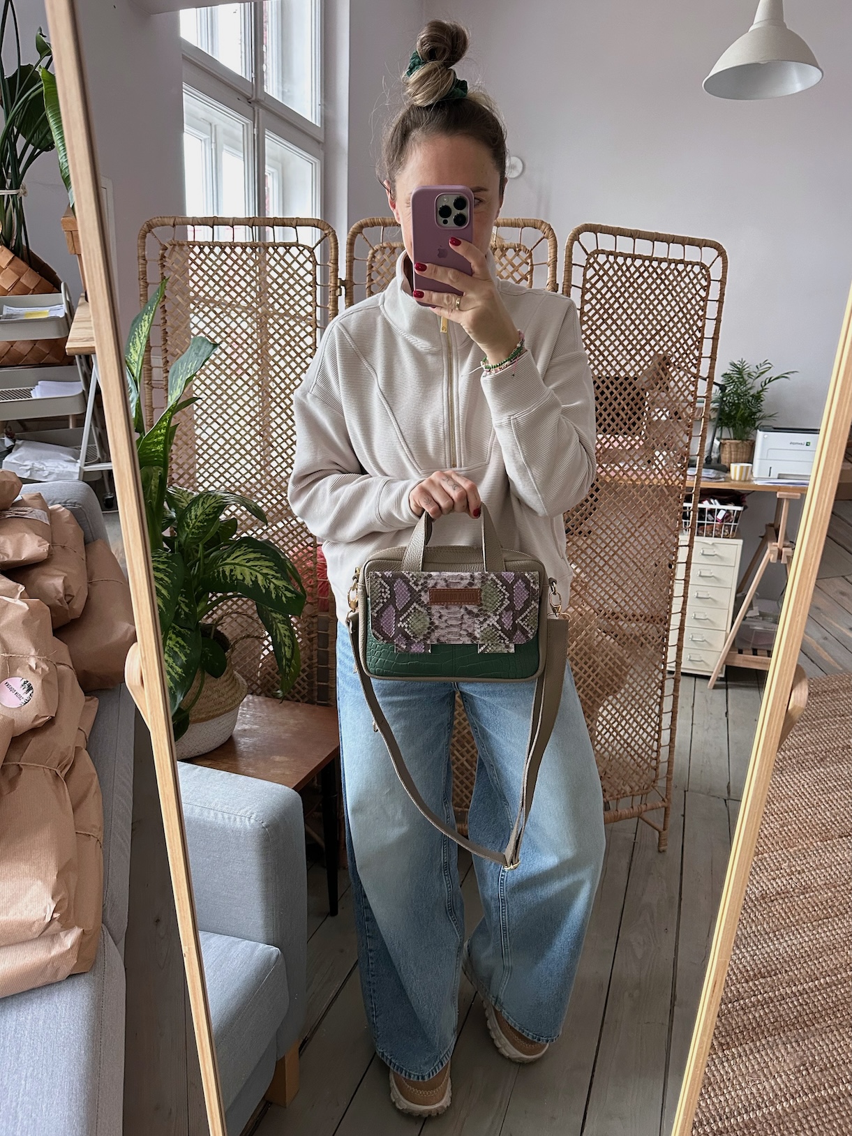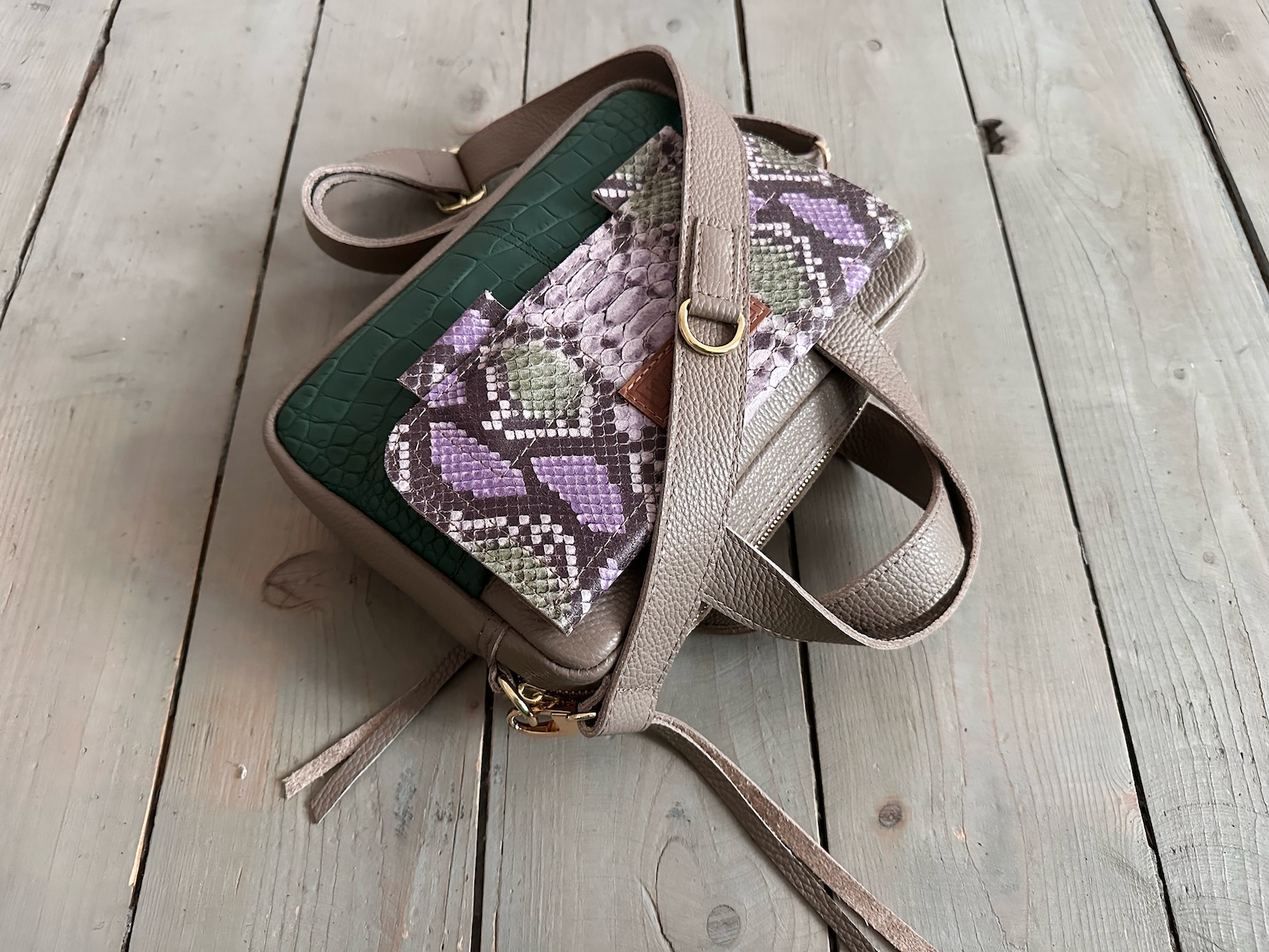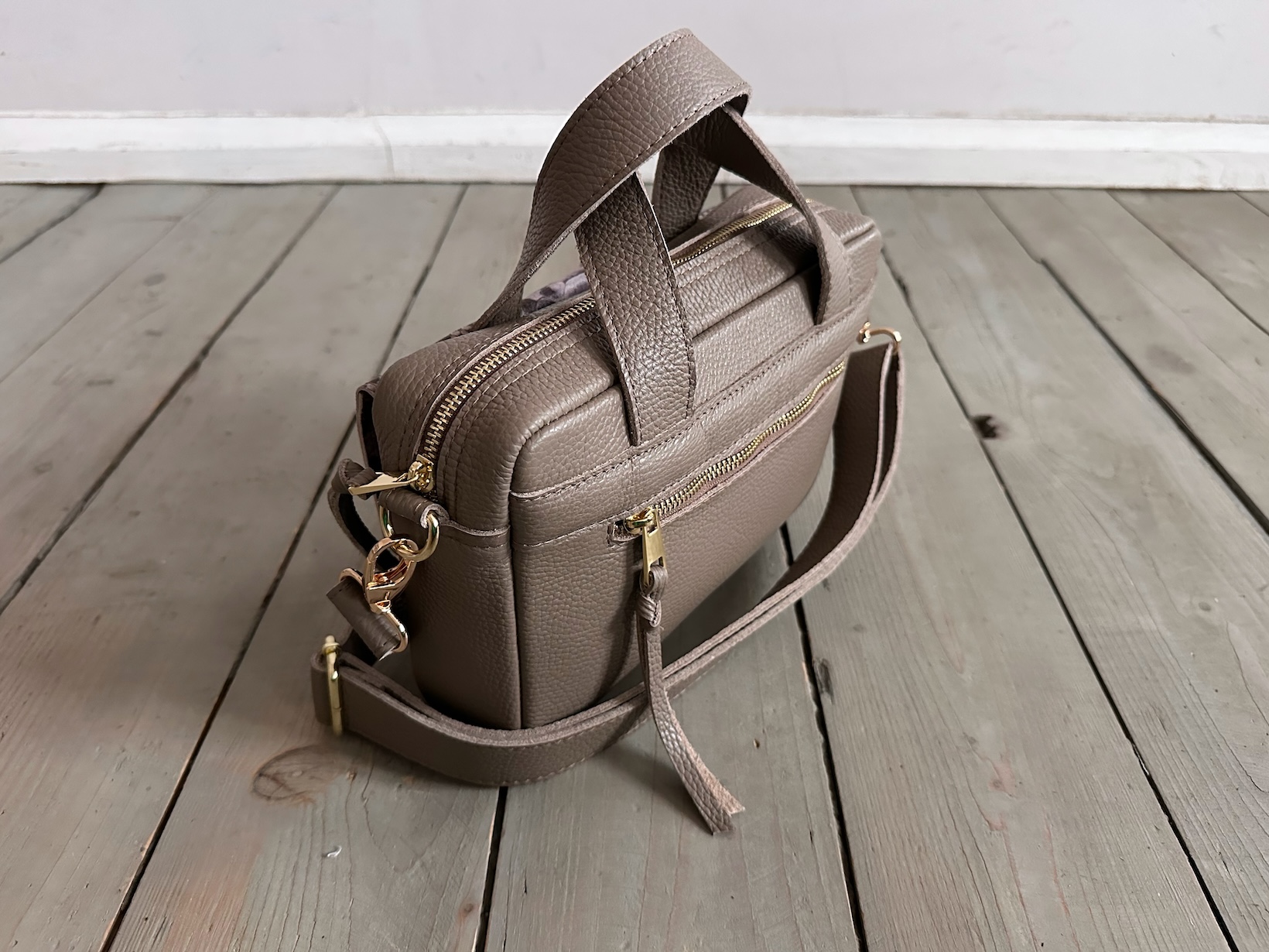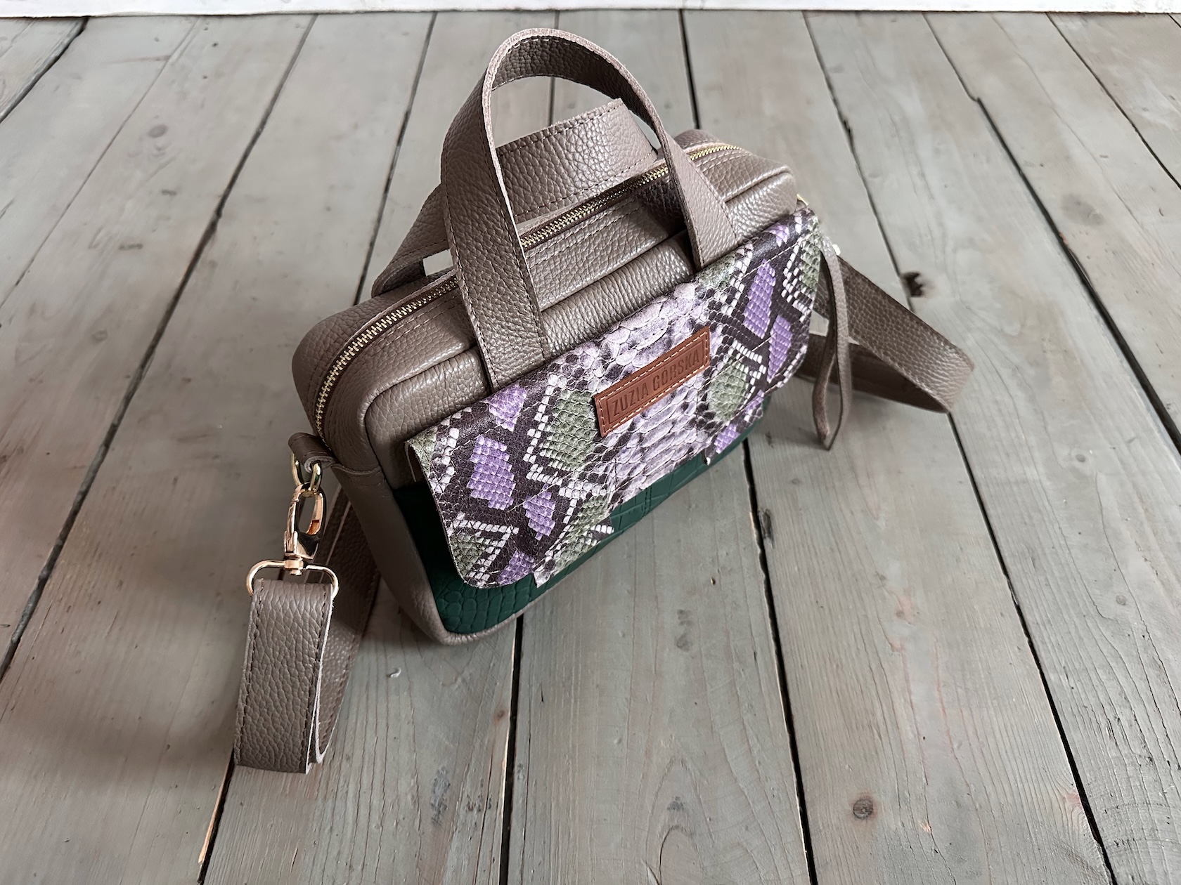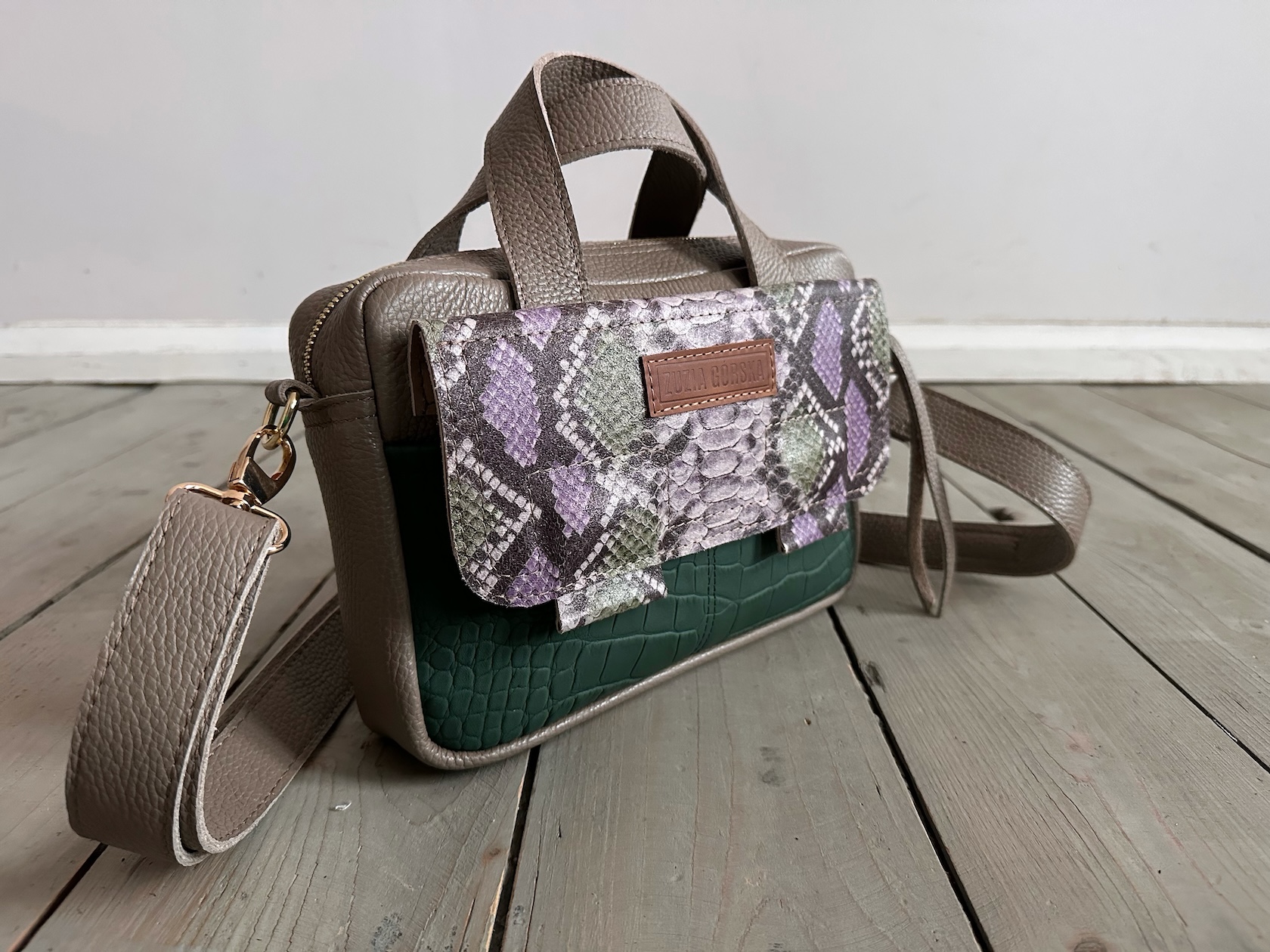 Uszyta ze skóry naturalnej licowej + podszewka 100% bawełny.