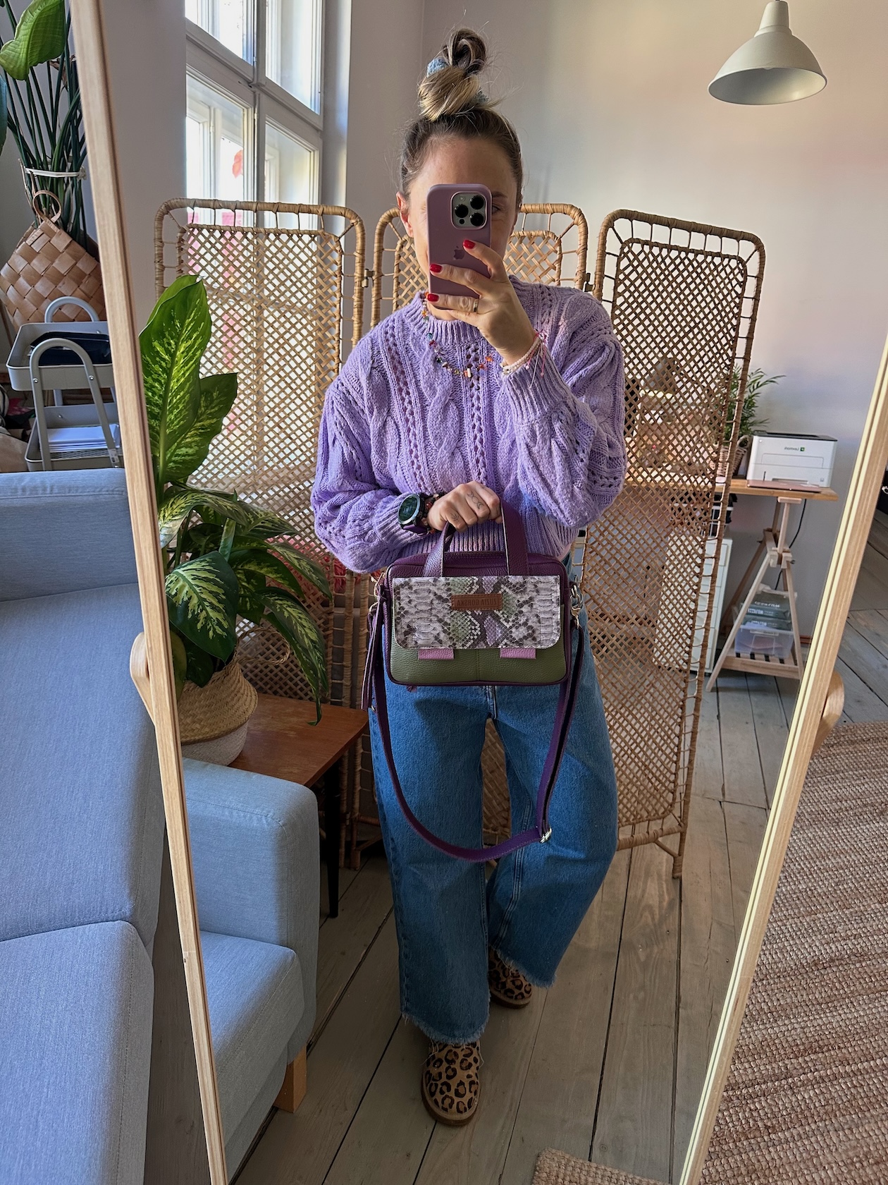 Uszyta ze skóry naturalnej licowej + podszewka 100% bawełny.