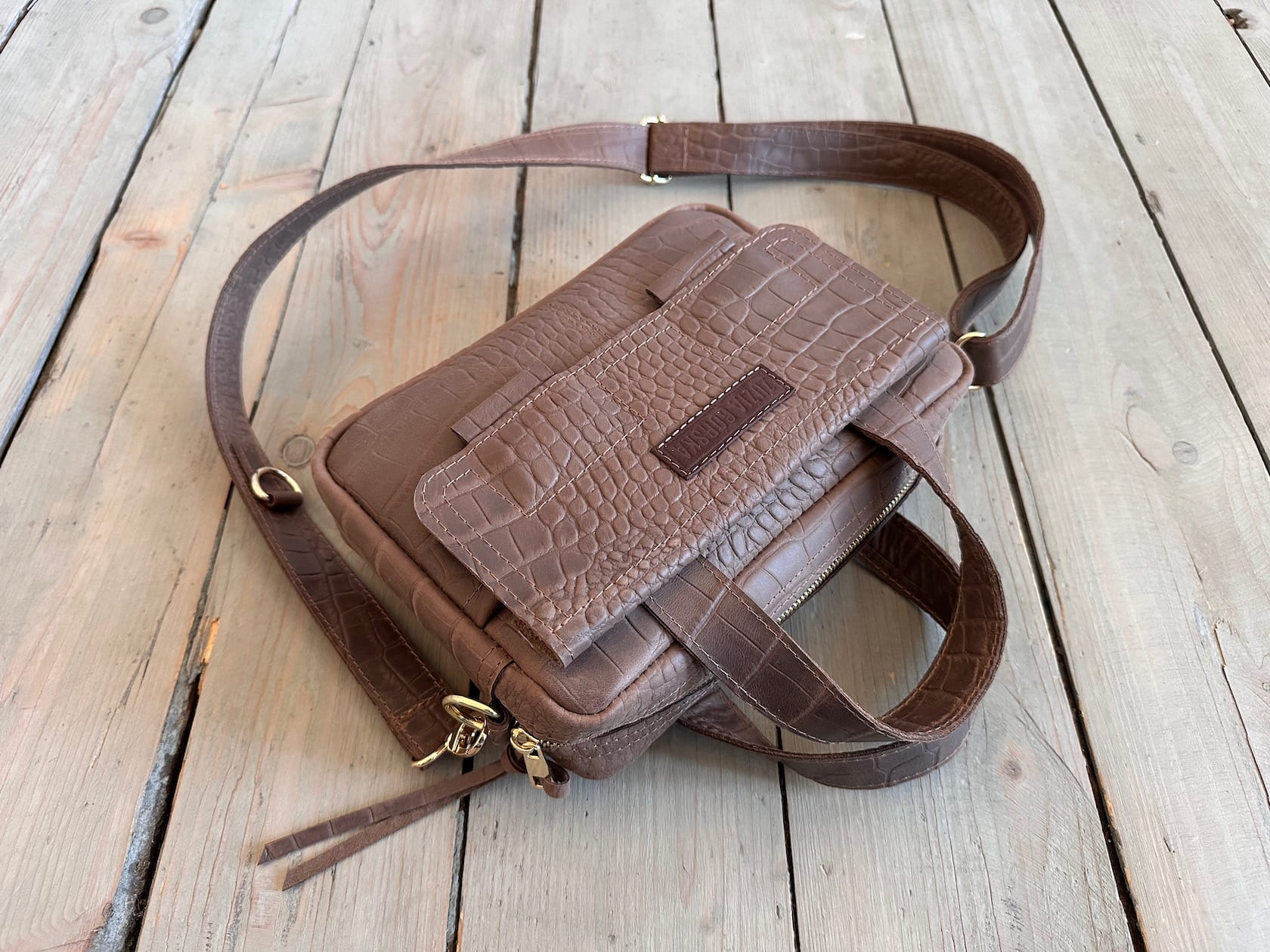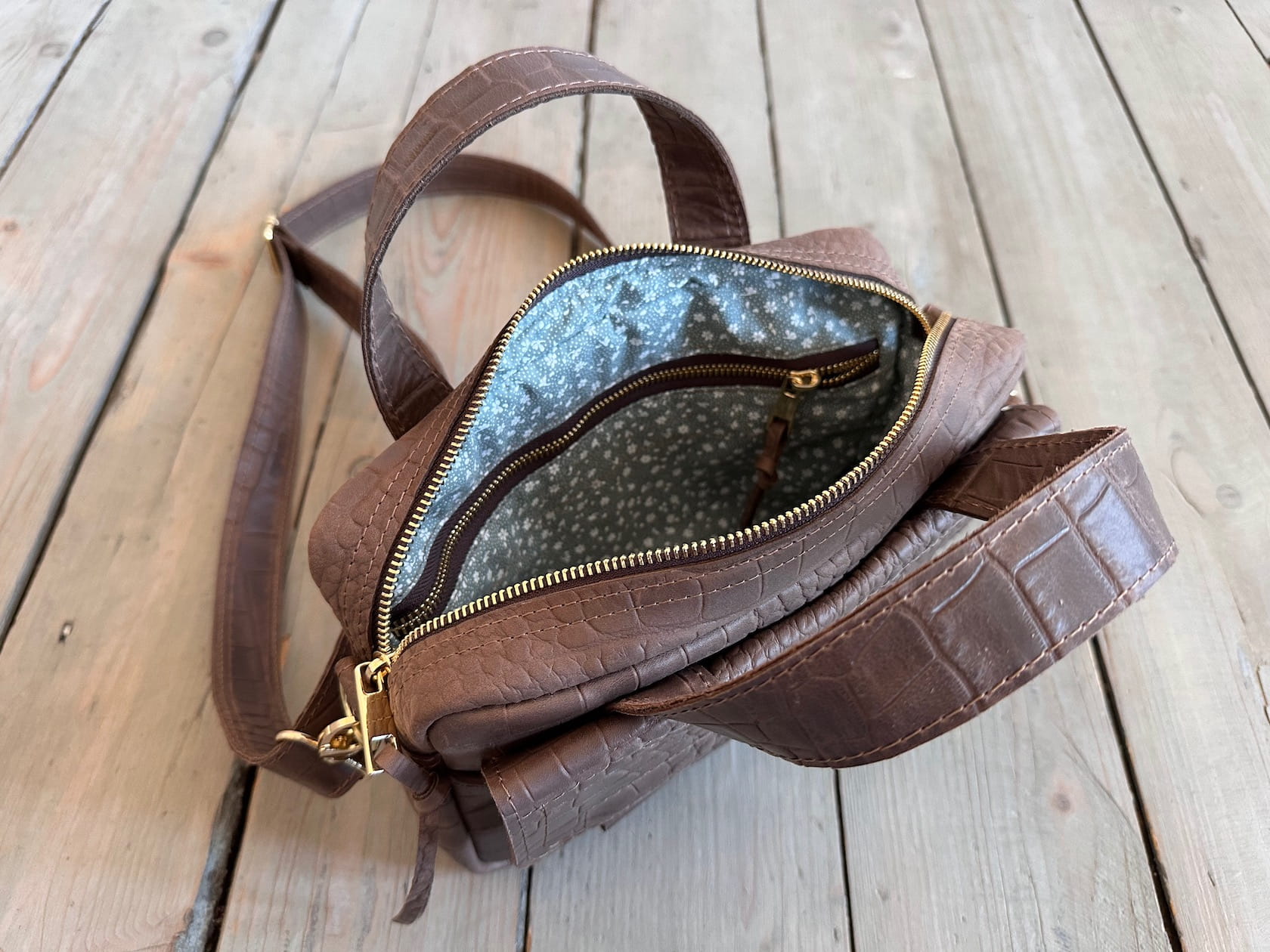 Uszyta ze skóry naturalnej typu pull-up woskowanej, podszewka 100% bawełny.