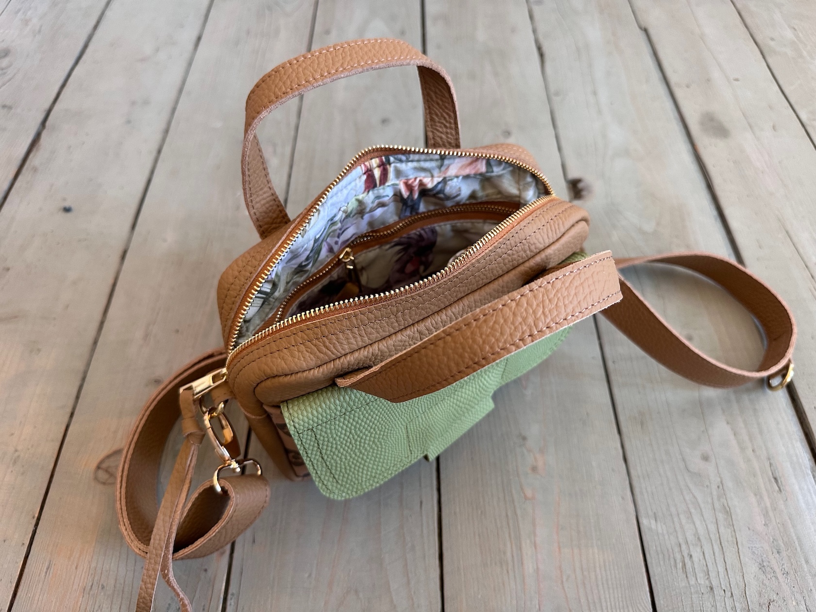 Wewnątrz kieszonka na zamek + dwie kieszonki wsuwki.