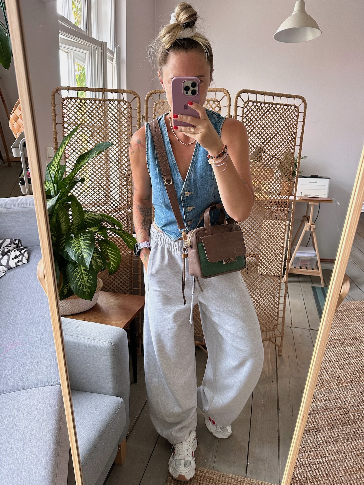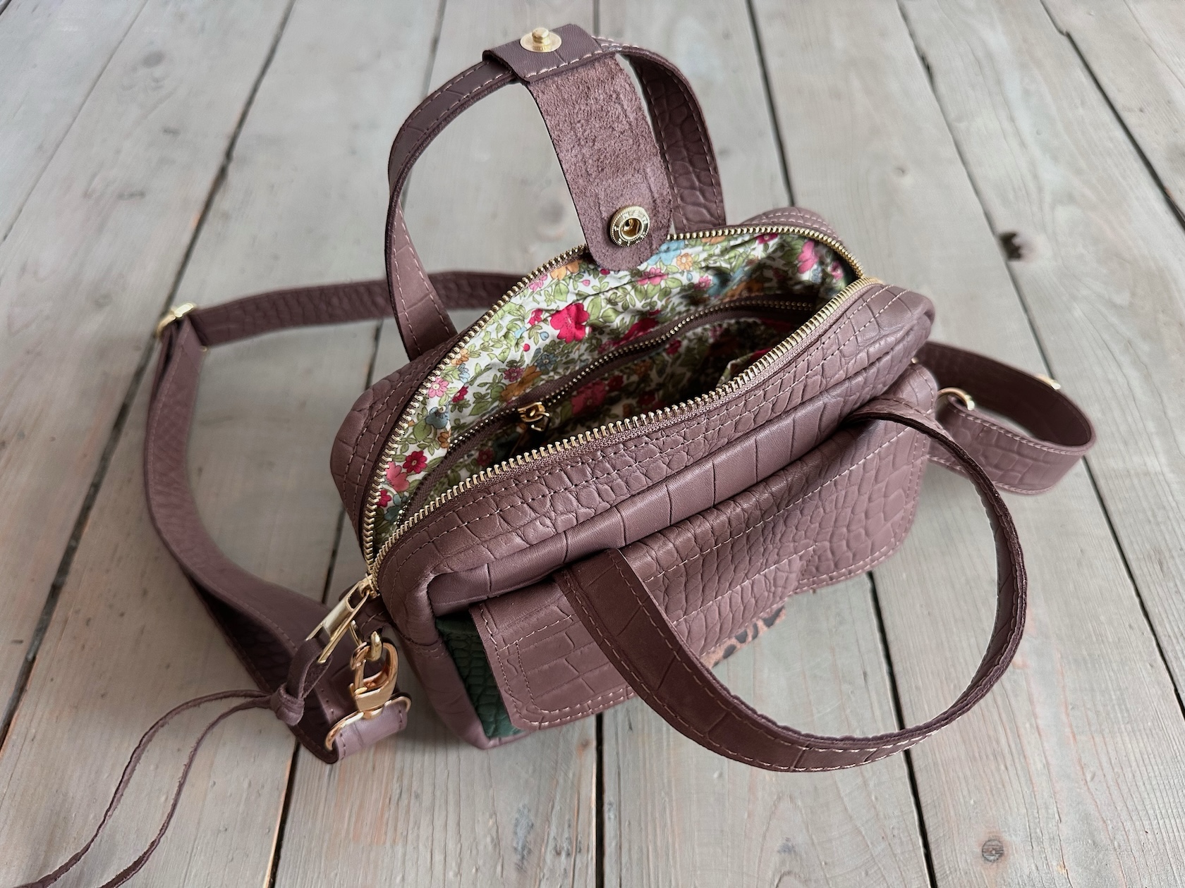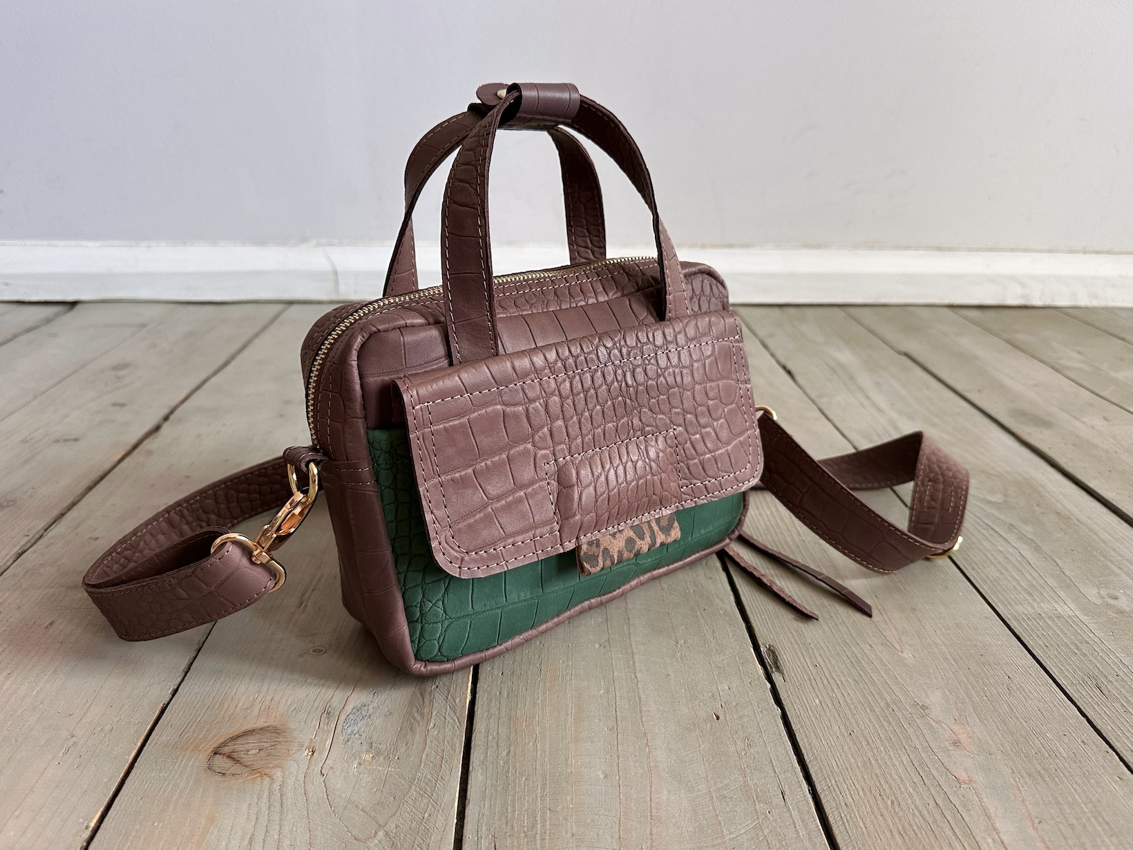Bigger Pocket Croco II Taupe + Emerald Croco II
