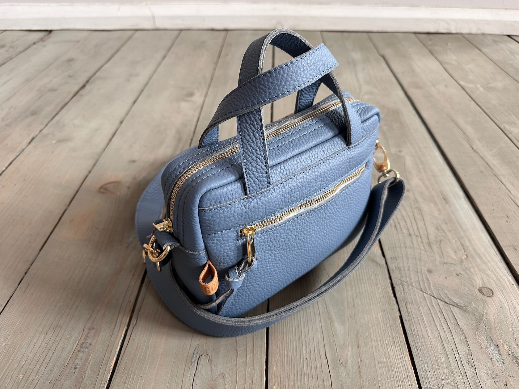 Uszyta ze skóry naturalnej licowej + welurowej + licowej typu crust.