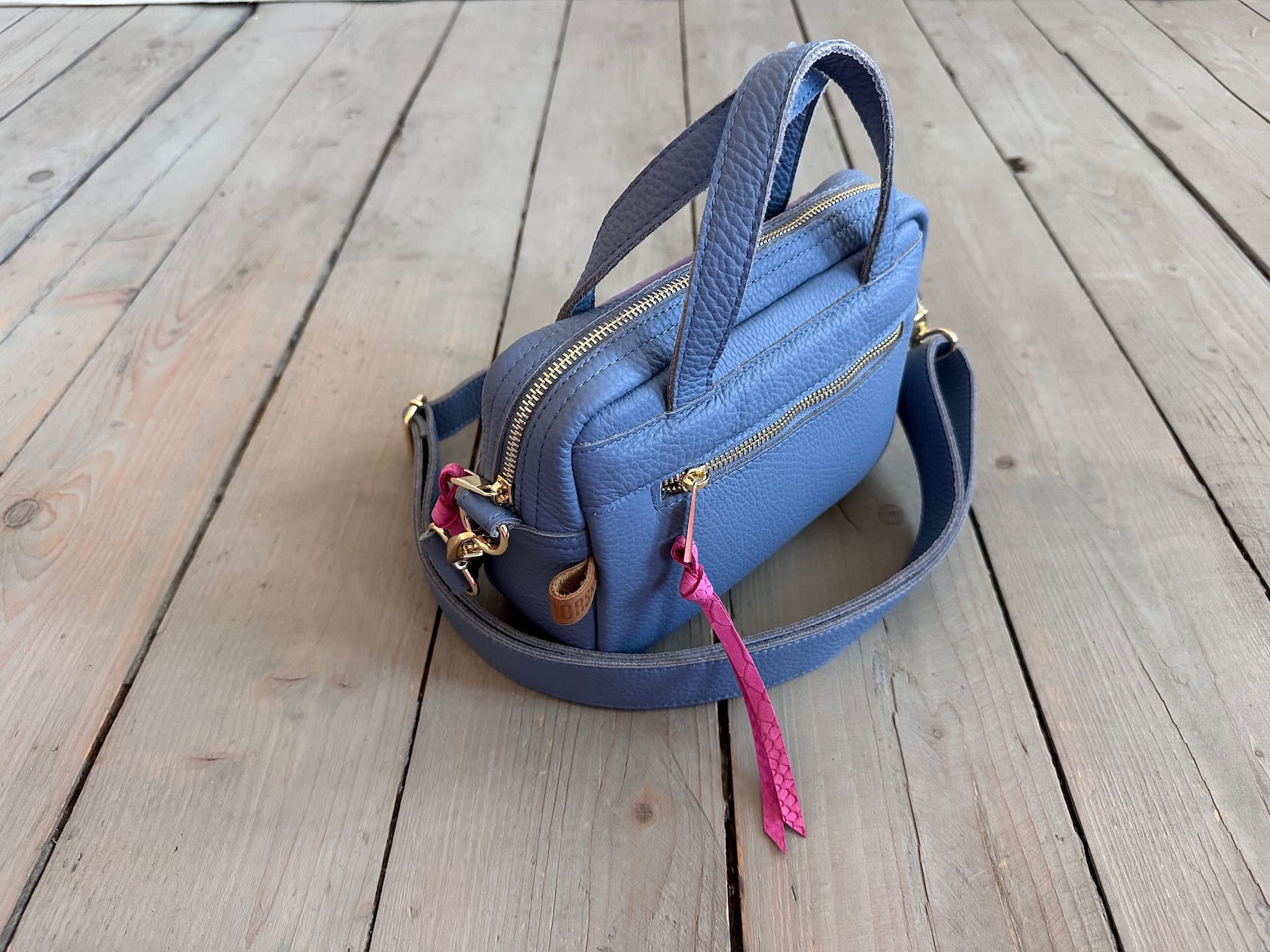 Uszyta ze skóry naturalnej licowej.