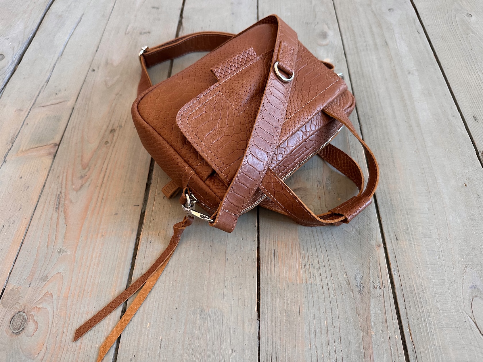 Zewnątrz naszyta kieszonka z klapką zamykana na magnes + kieszonka na zamek z tyłu.