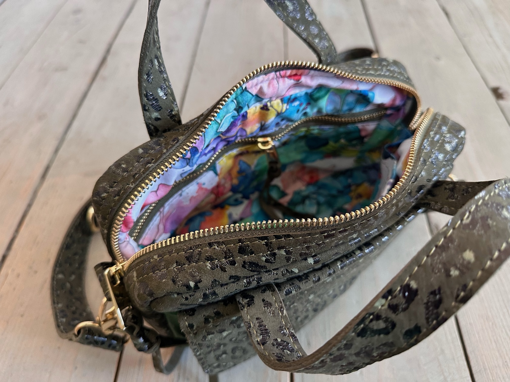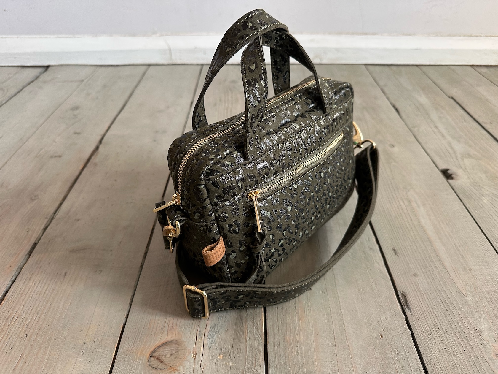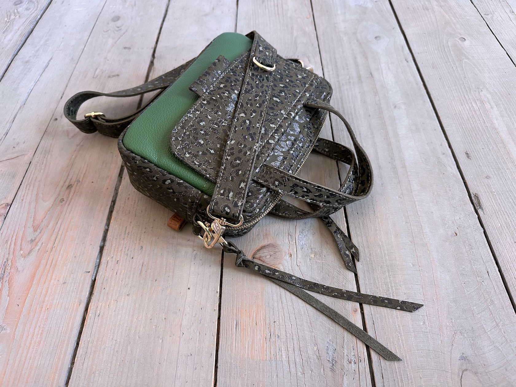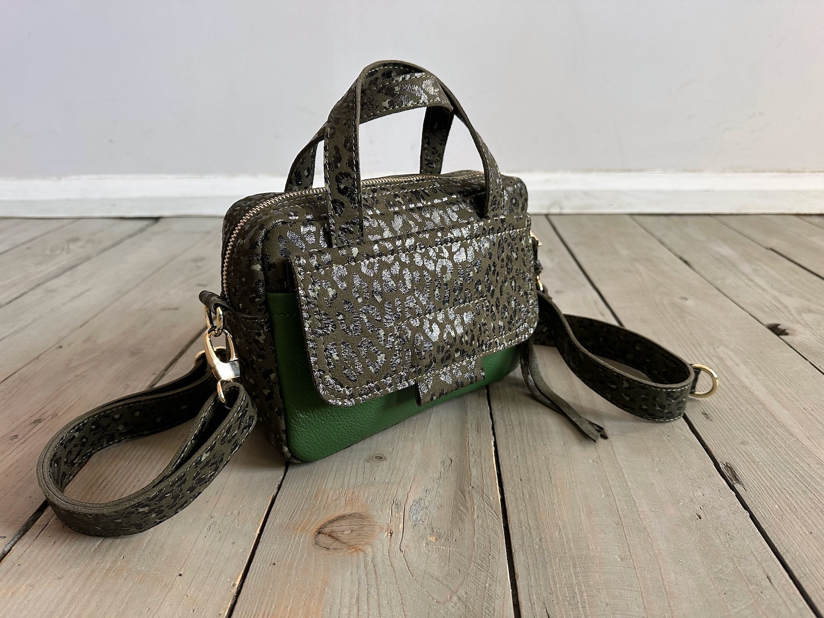Bigger Pocket Leopard I Dark Green Suede + Green