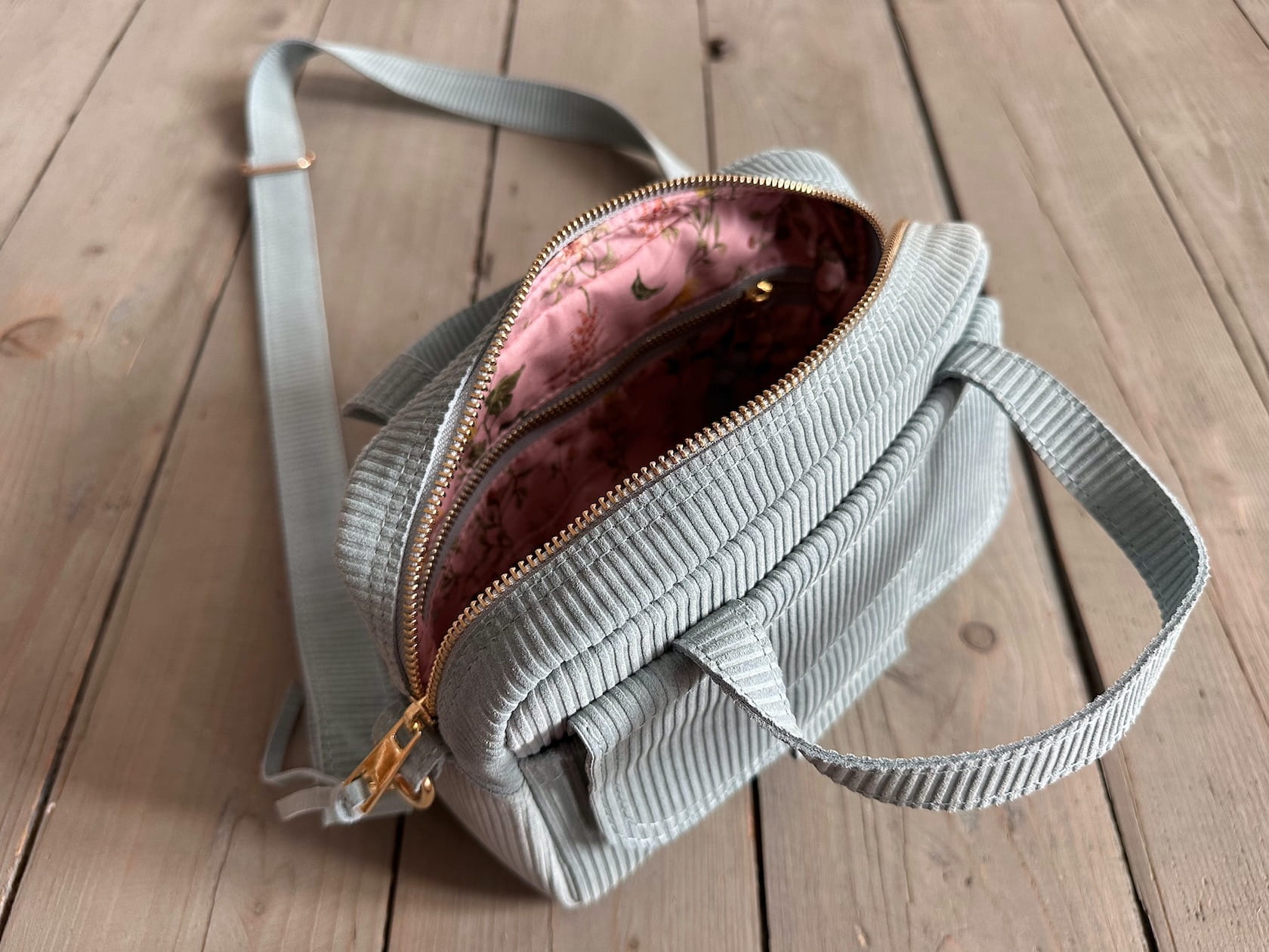 Wewnątrz kieszonka na zamek + dwie kieszonki wsuwki.