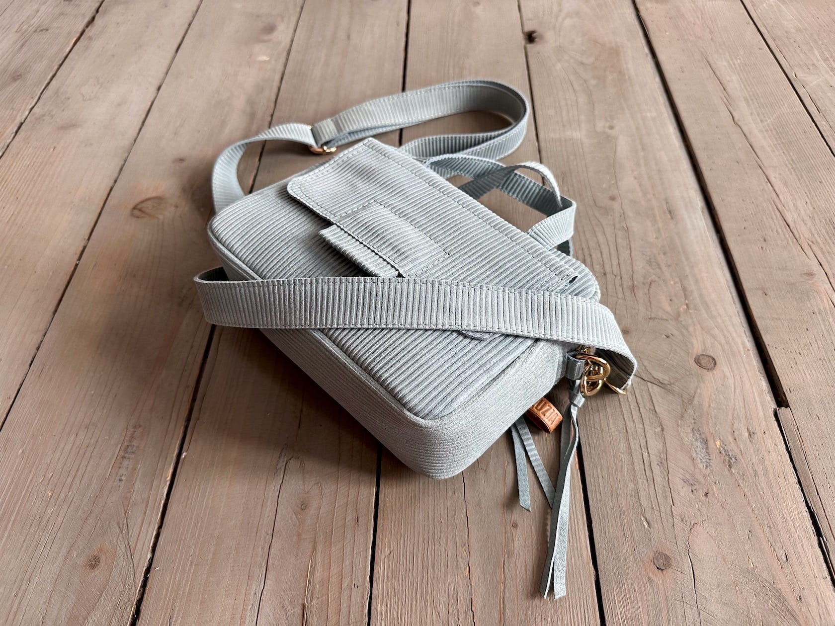 Zewnątrz naszyta kieszonka z klapką zamykana na magnes + kieszonka na zamek z tyłu.
