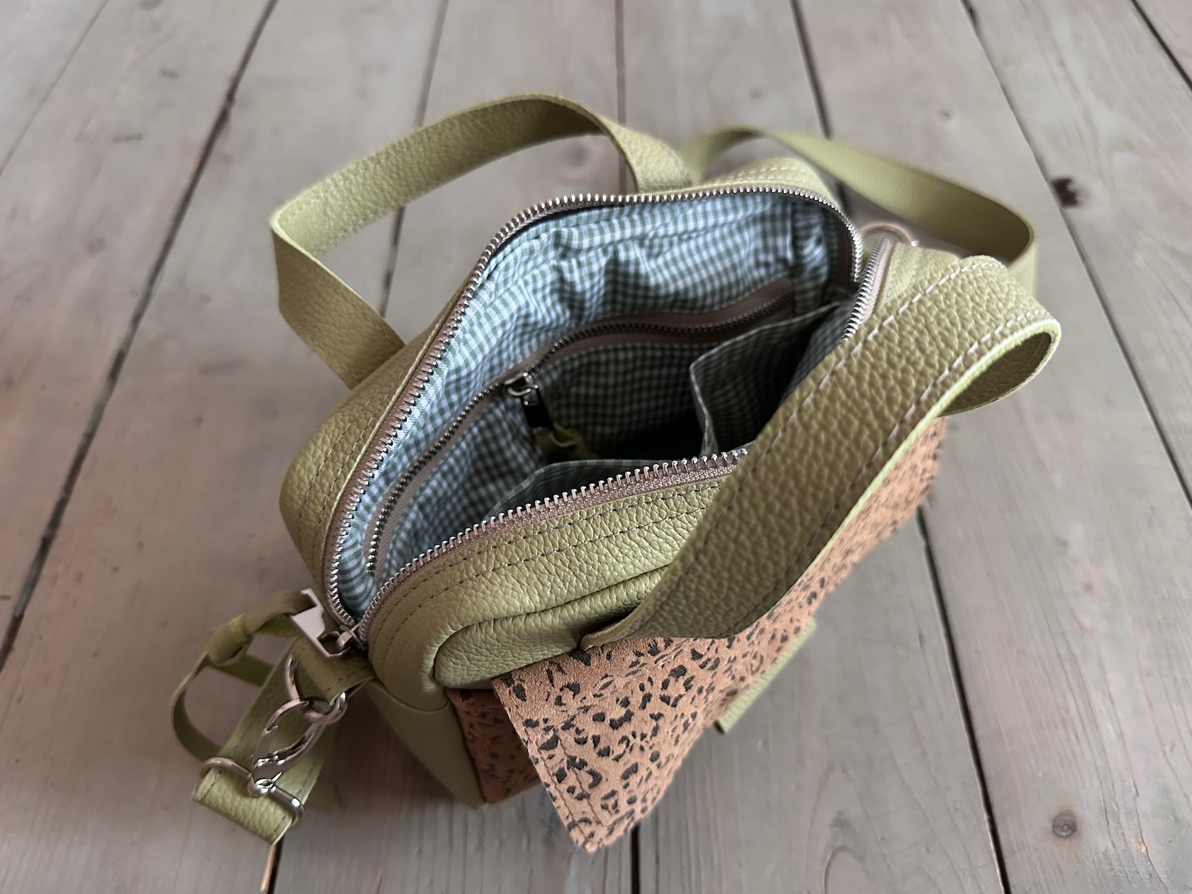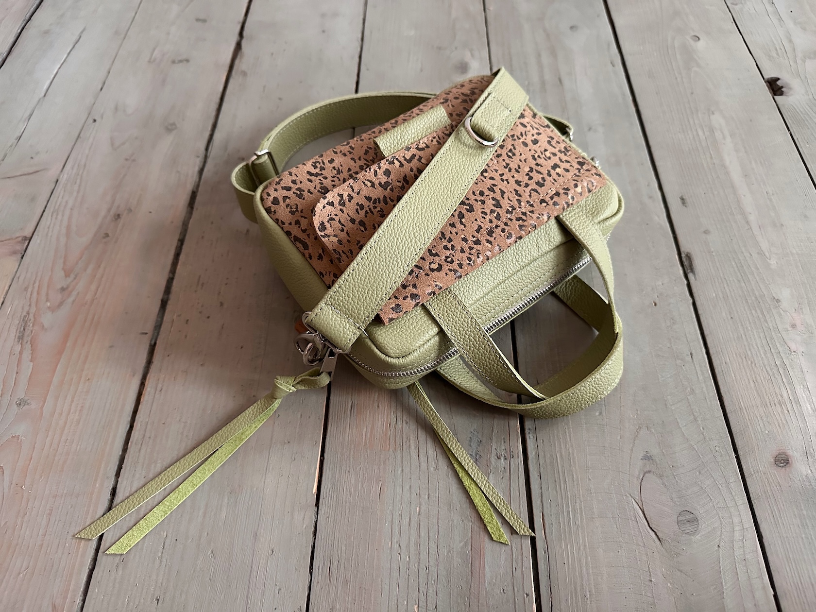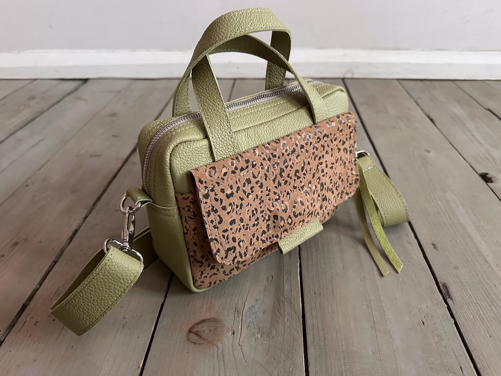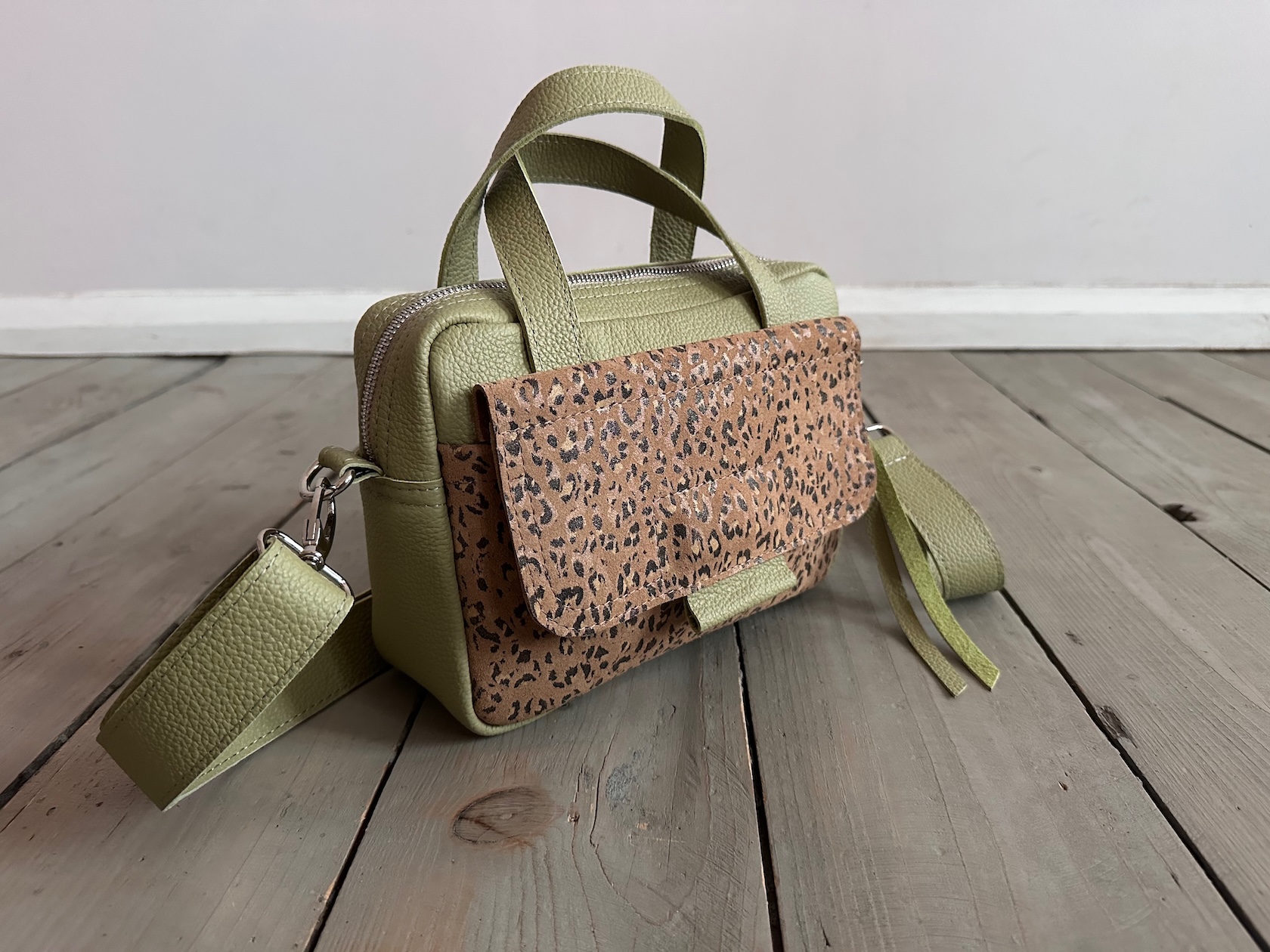 Bigger Pocket Olive + Leopard III Camel Suede
