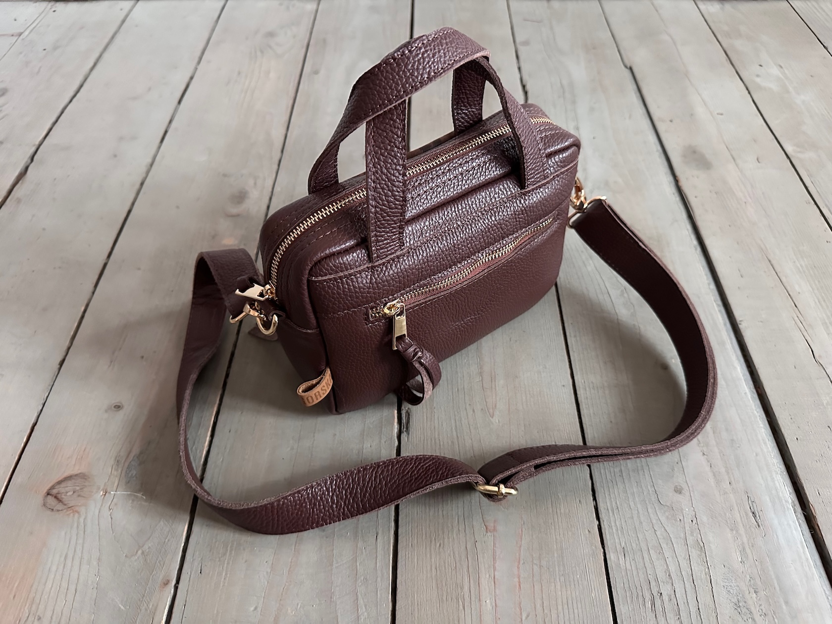Uszyta ze skóry naturalnej licowej + nubukowej.