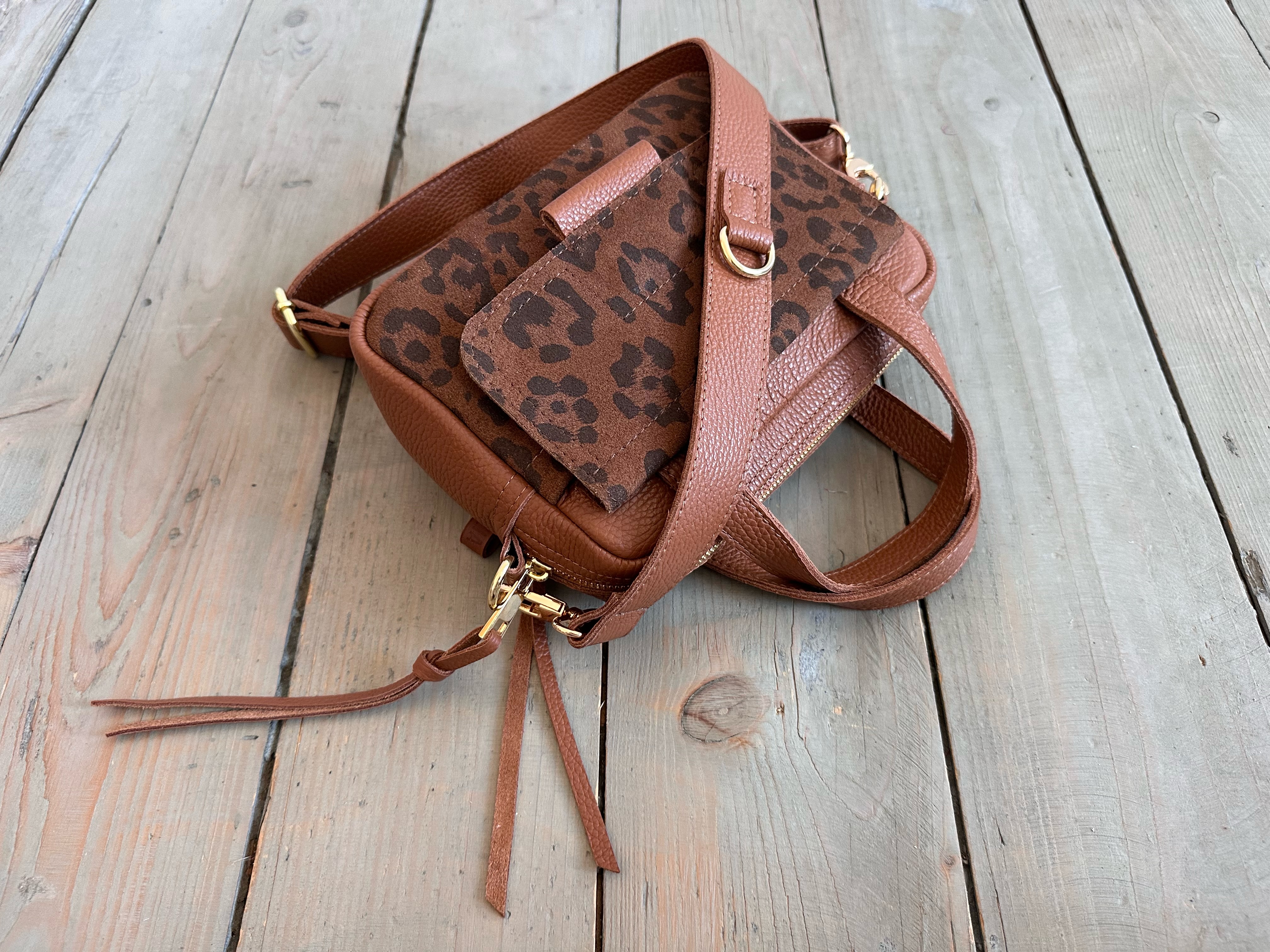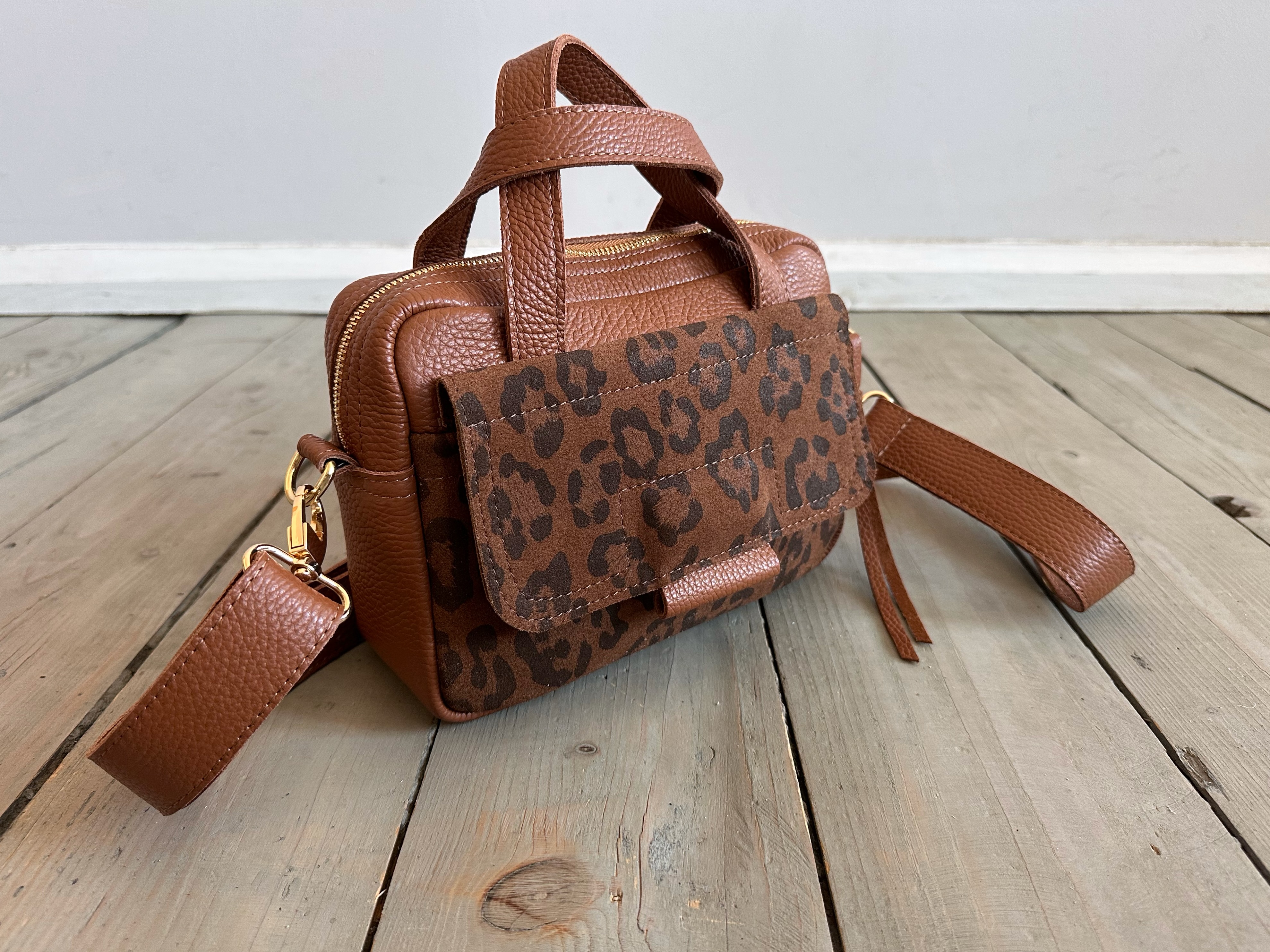 Bigger Pocket Walnut + Leopard IV Siena Suede