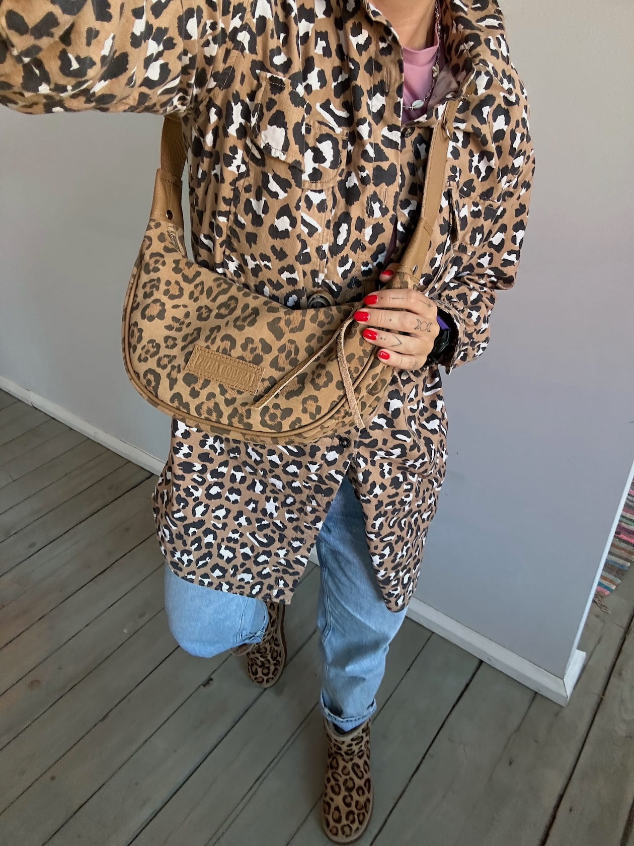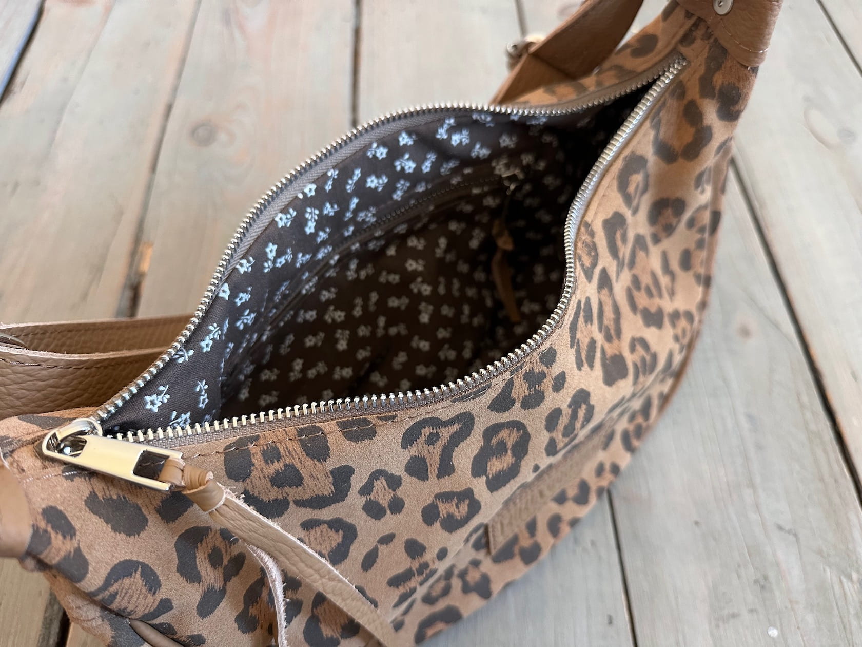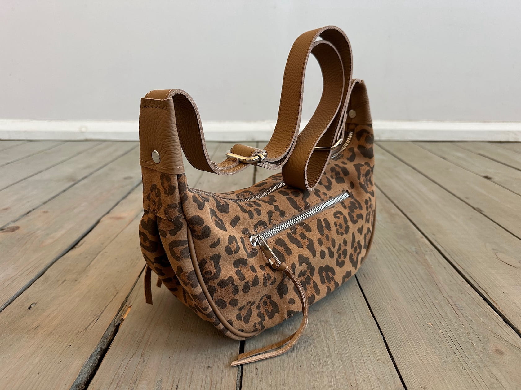 Uszyta ze skóry naturalnej nubukowej + bawełnianej podszewki/