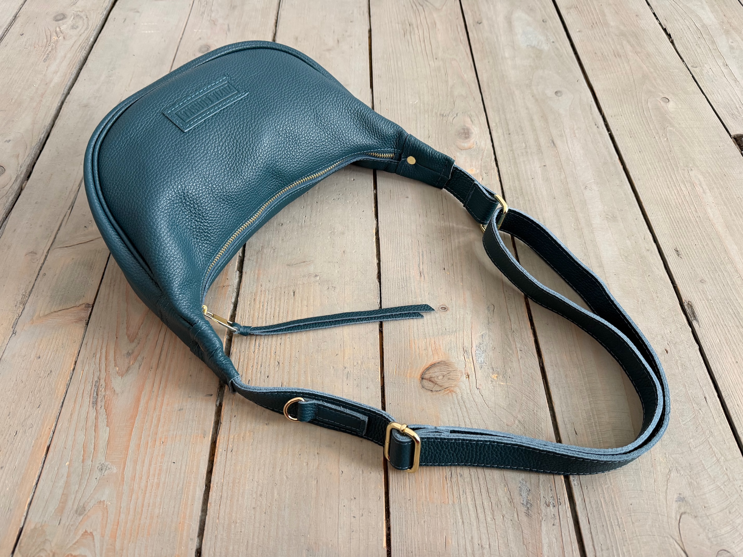 Uszyta ze skóry naturalnej licowej + bawełnianej podszewki.