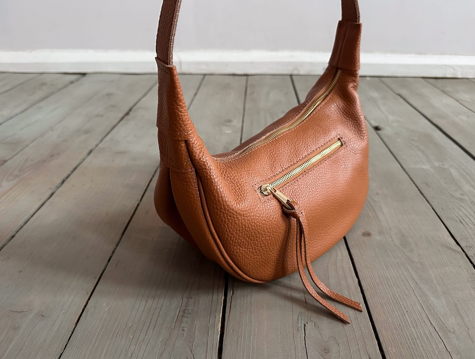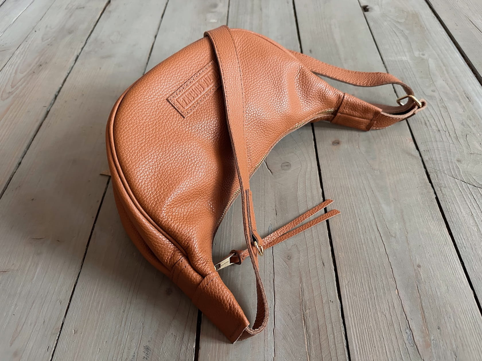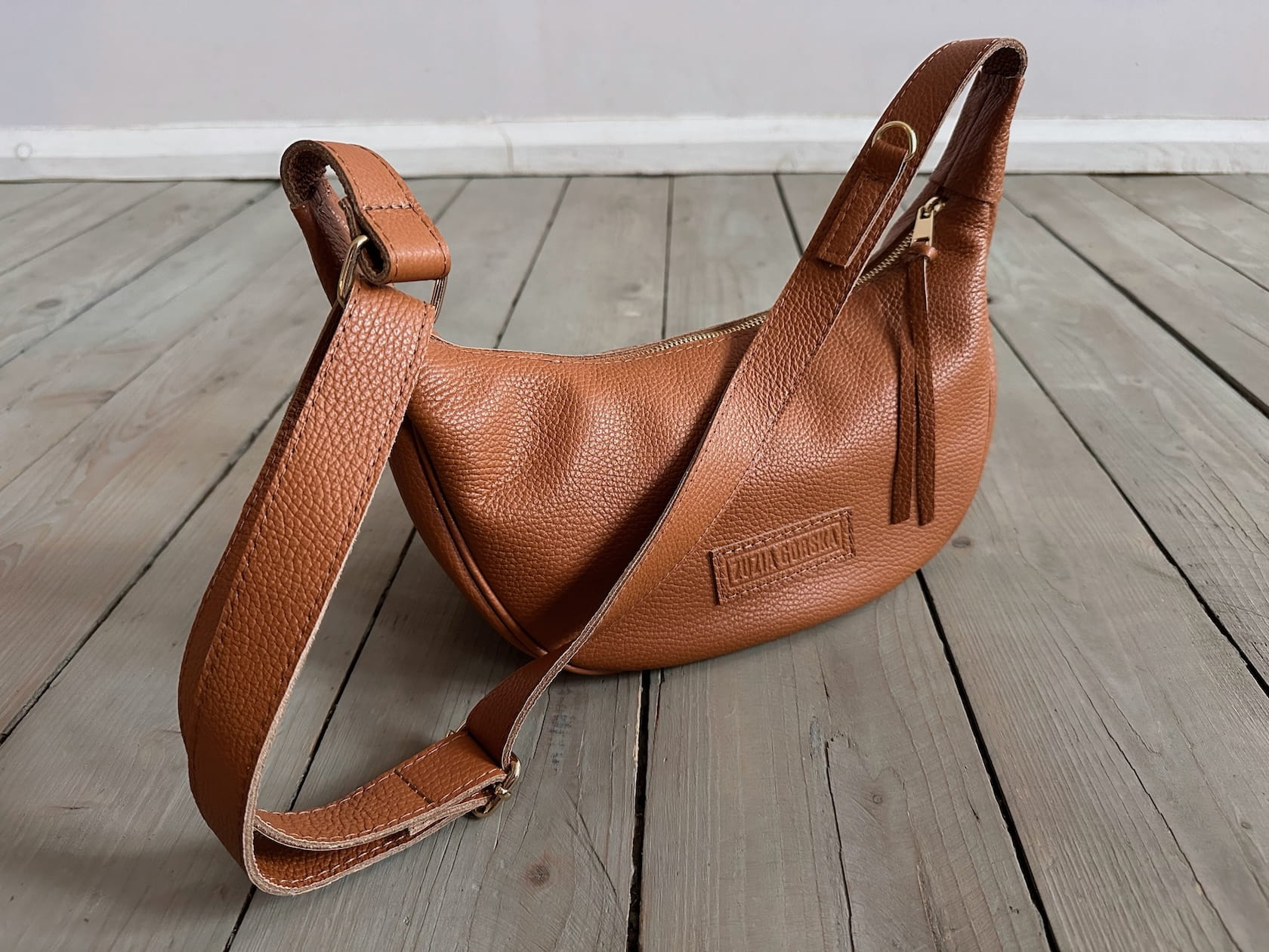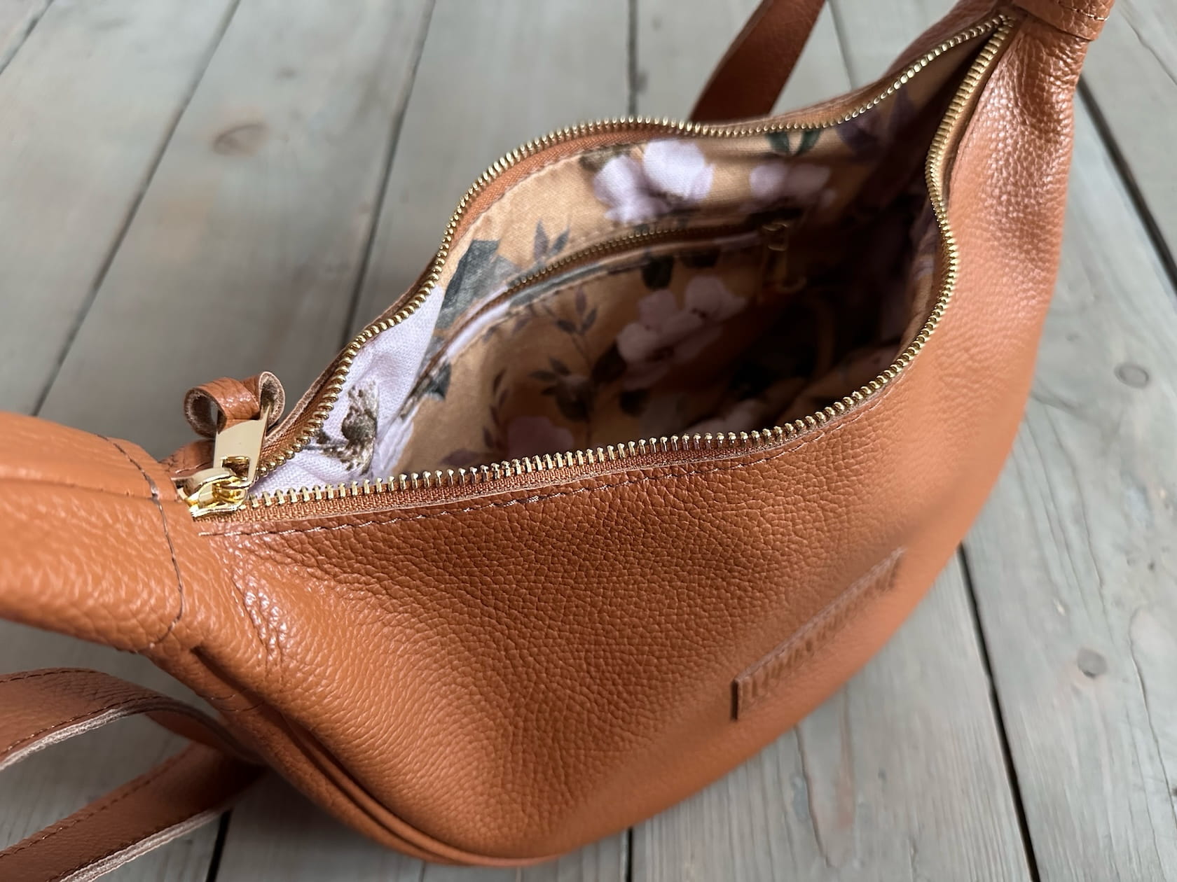 Uszyta ze skóry naturalnej licowej + bawełnianej podszewki/
