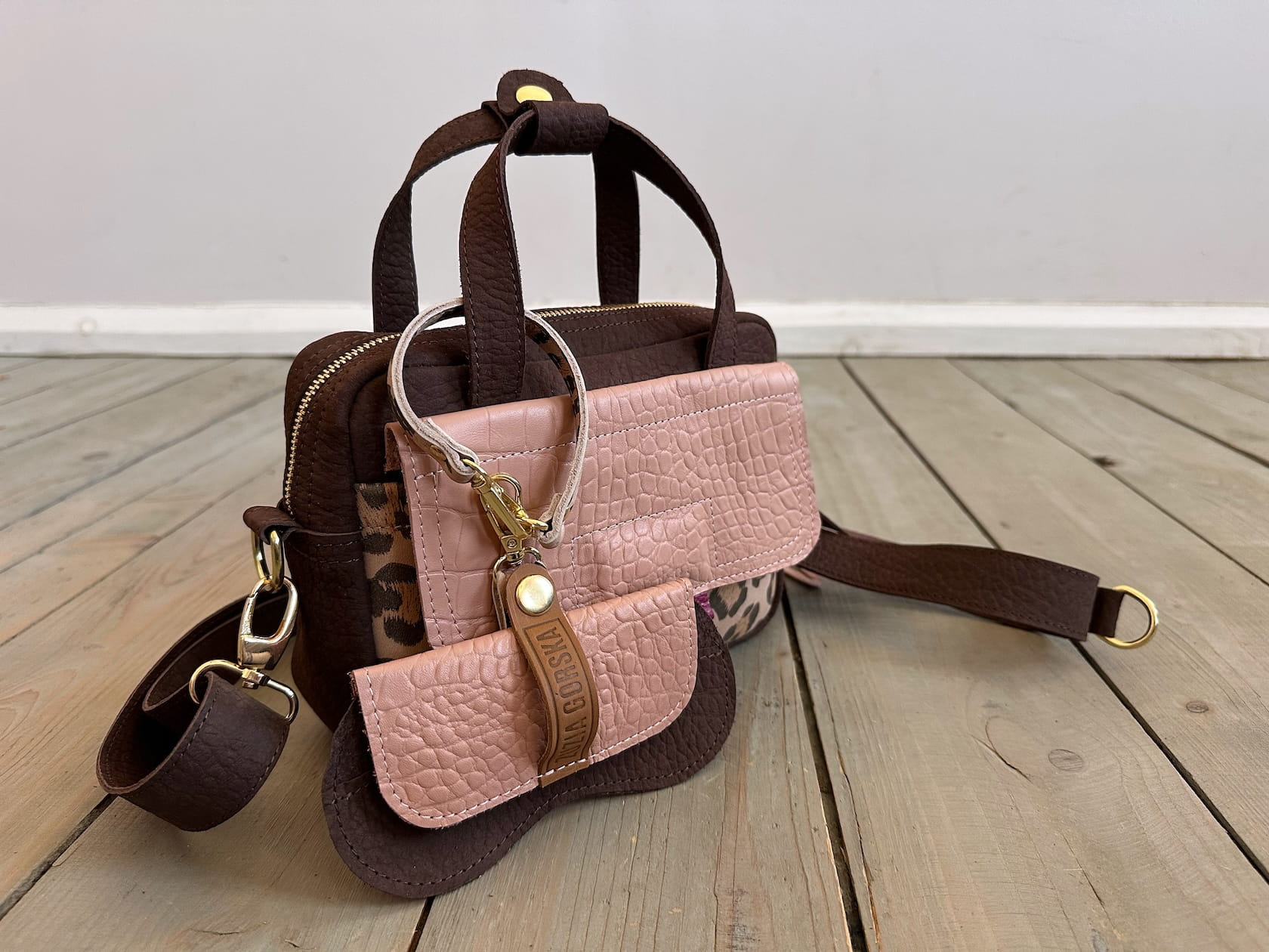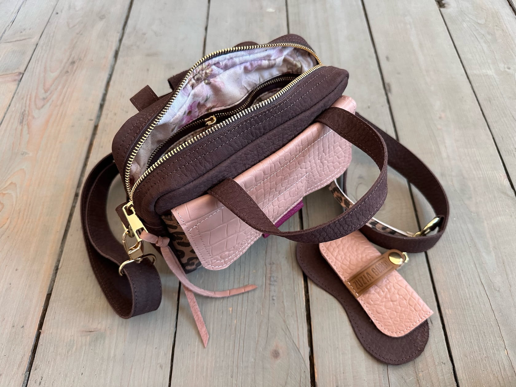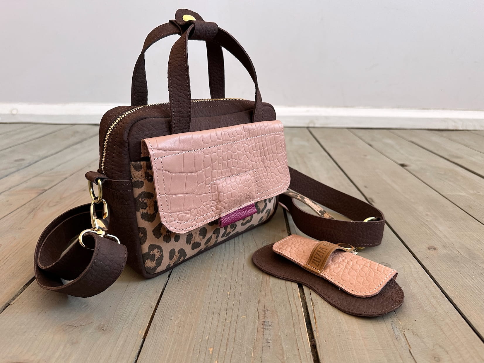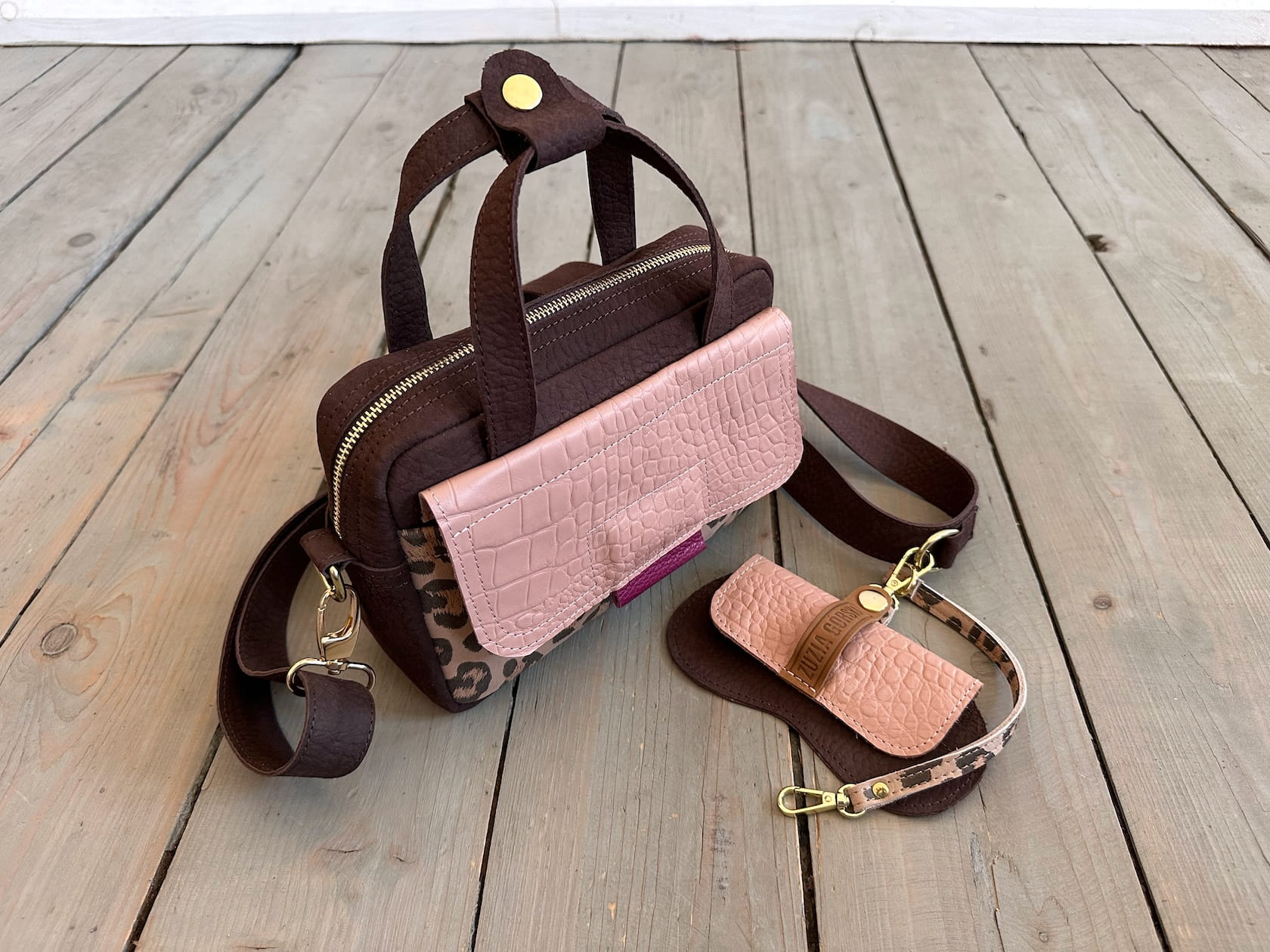KOMPLET: Bigger Pocket Choco Elephant Nubuck + Nude Croco II + Leopard IV Suede + Sunglasses Case