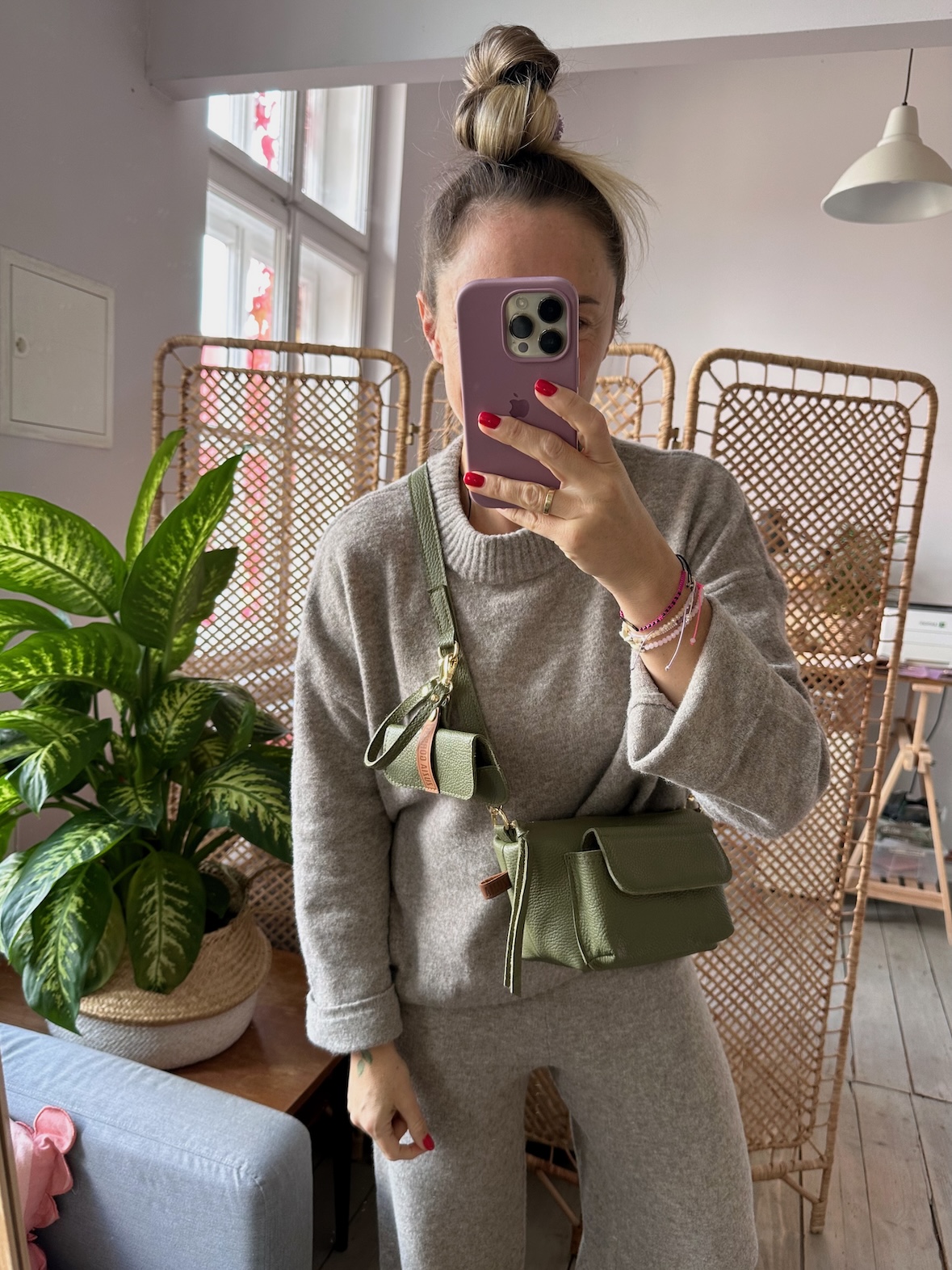Na zewnątrz naszyta kieszonka idealna na telefon, zamykana na magnes.