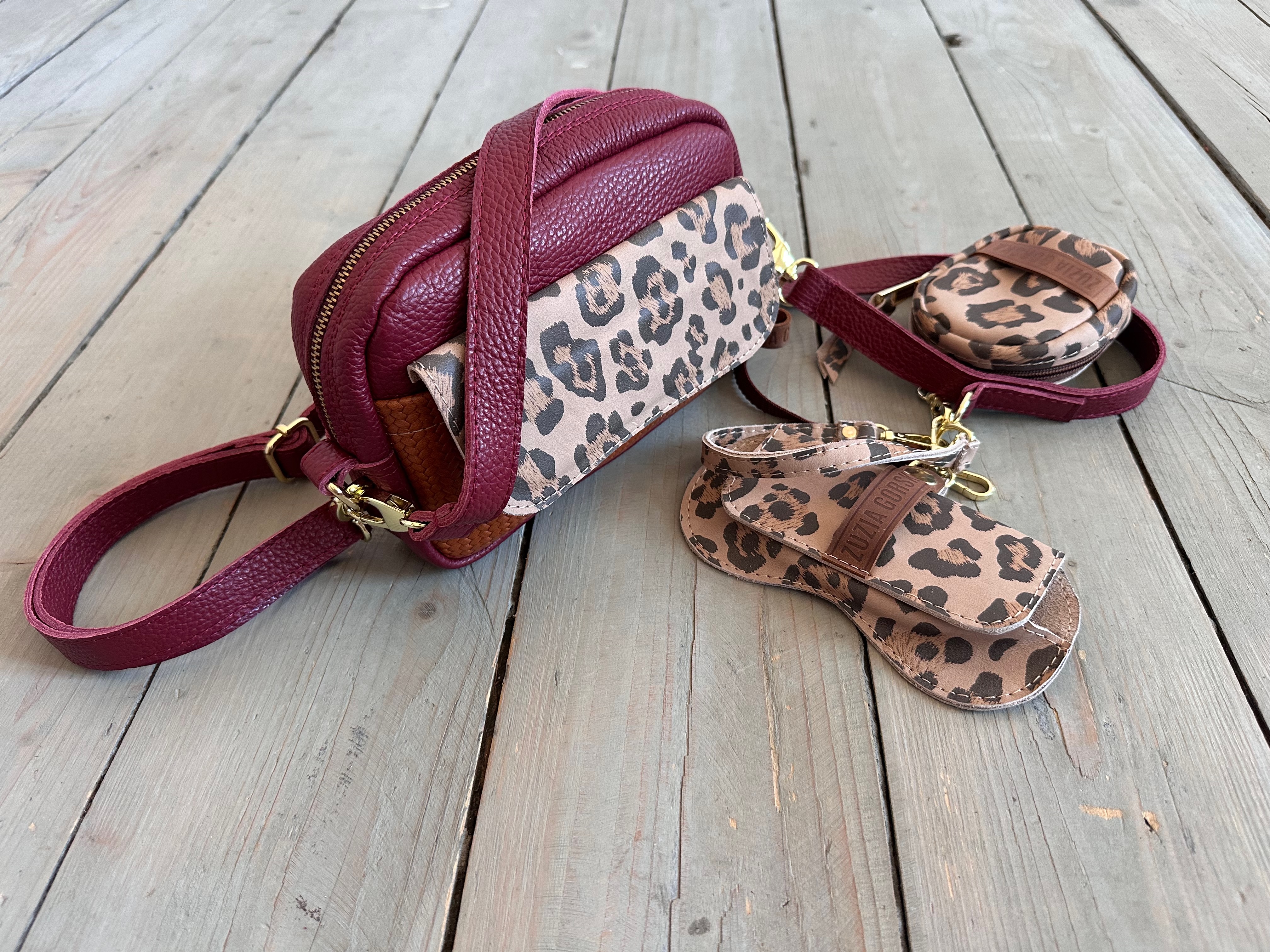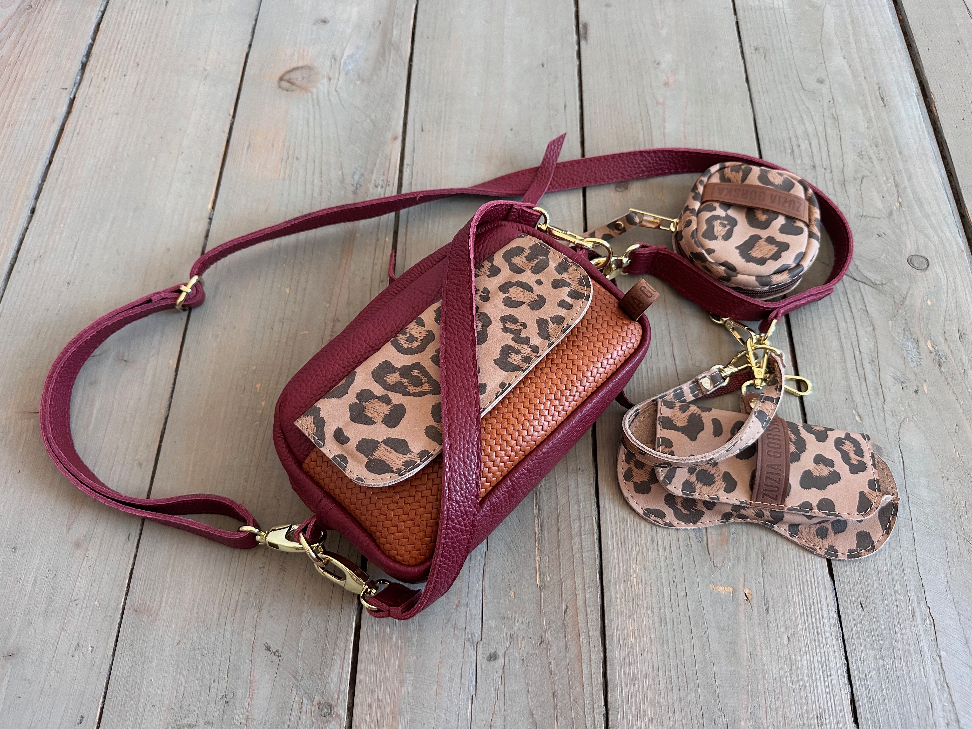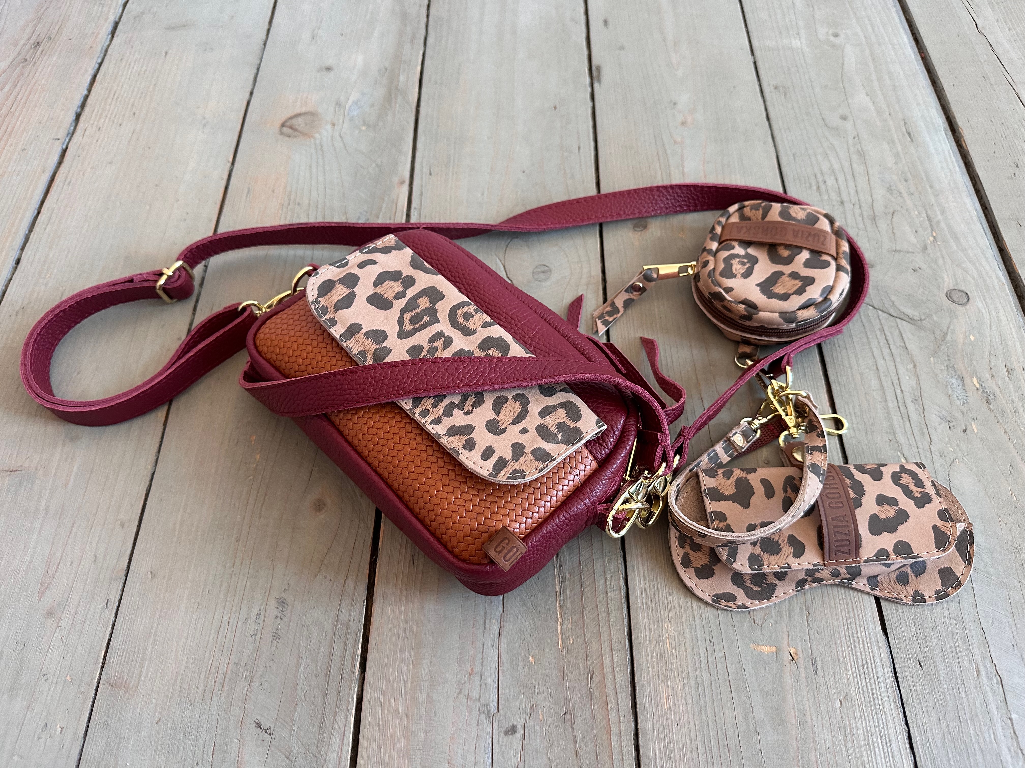 KOMPLET: Traveller 2 v. classic Cranberry + Brown Lazy Braided + Leopard IV Nubuck + Sunglasses Case + Minibag