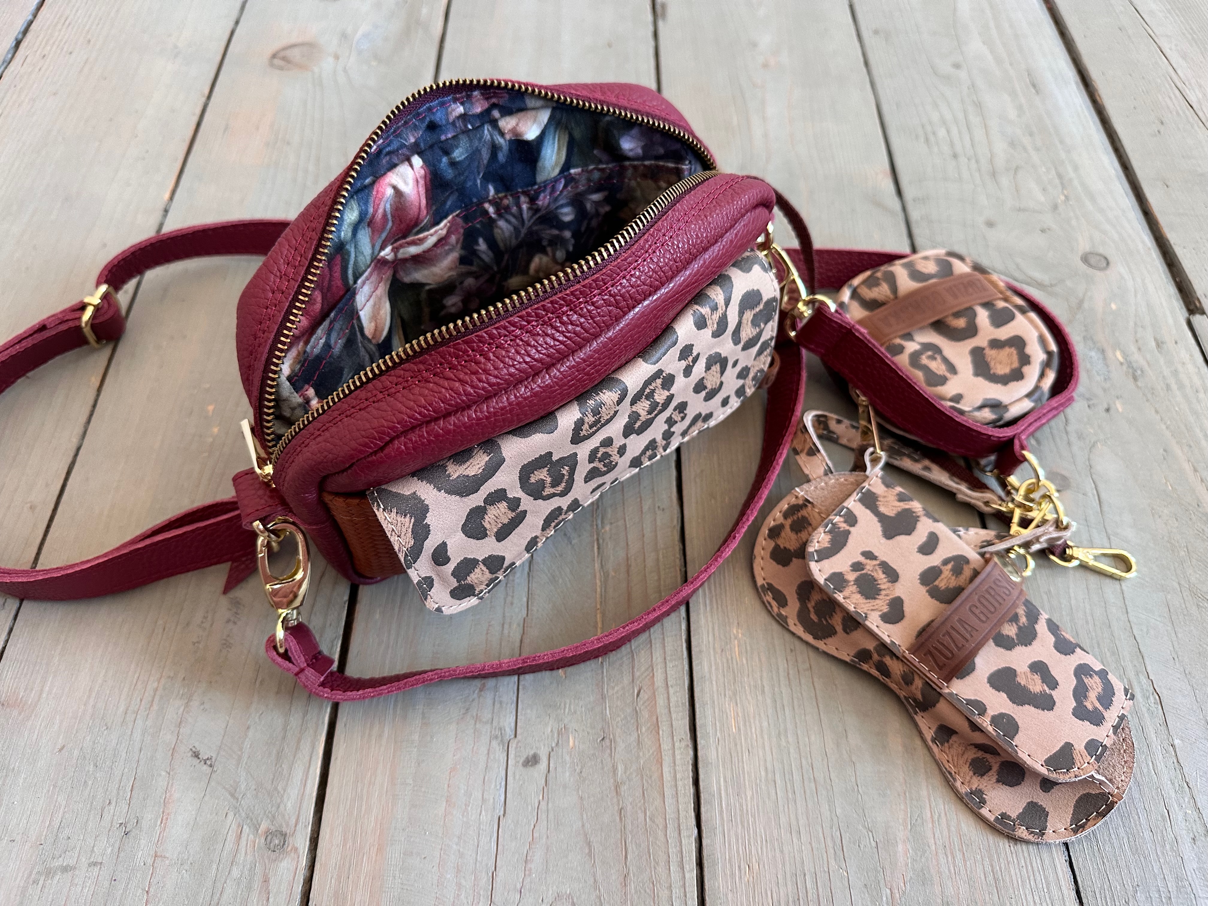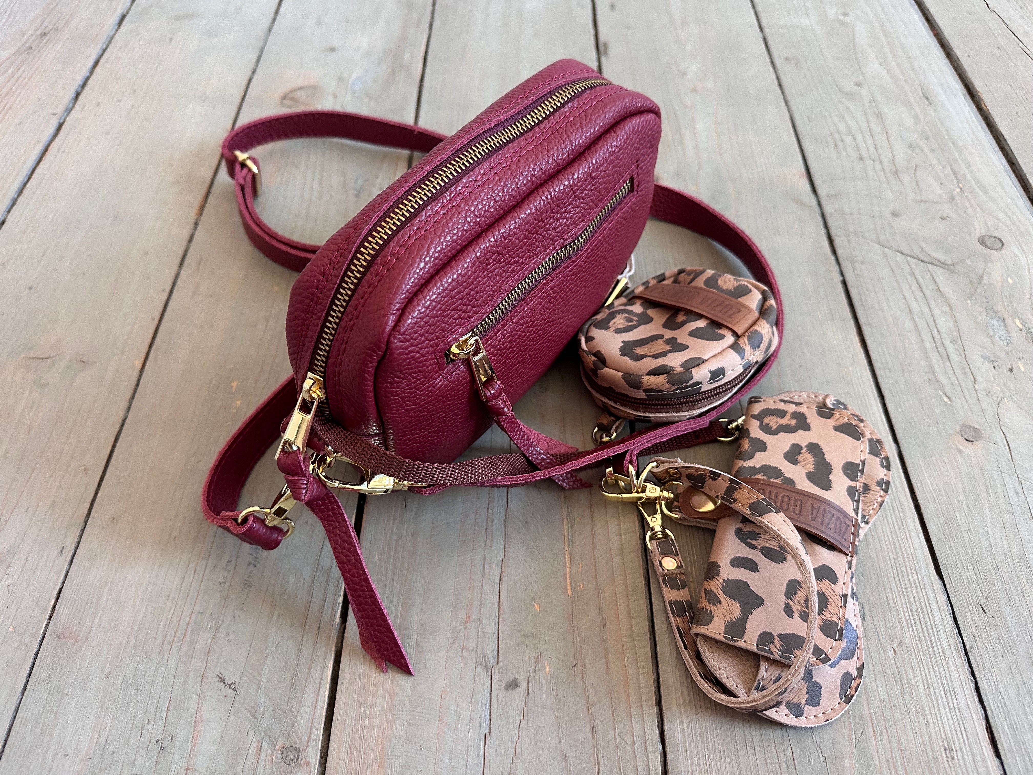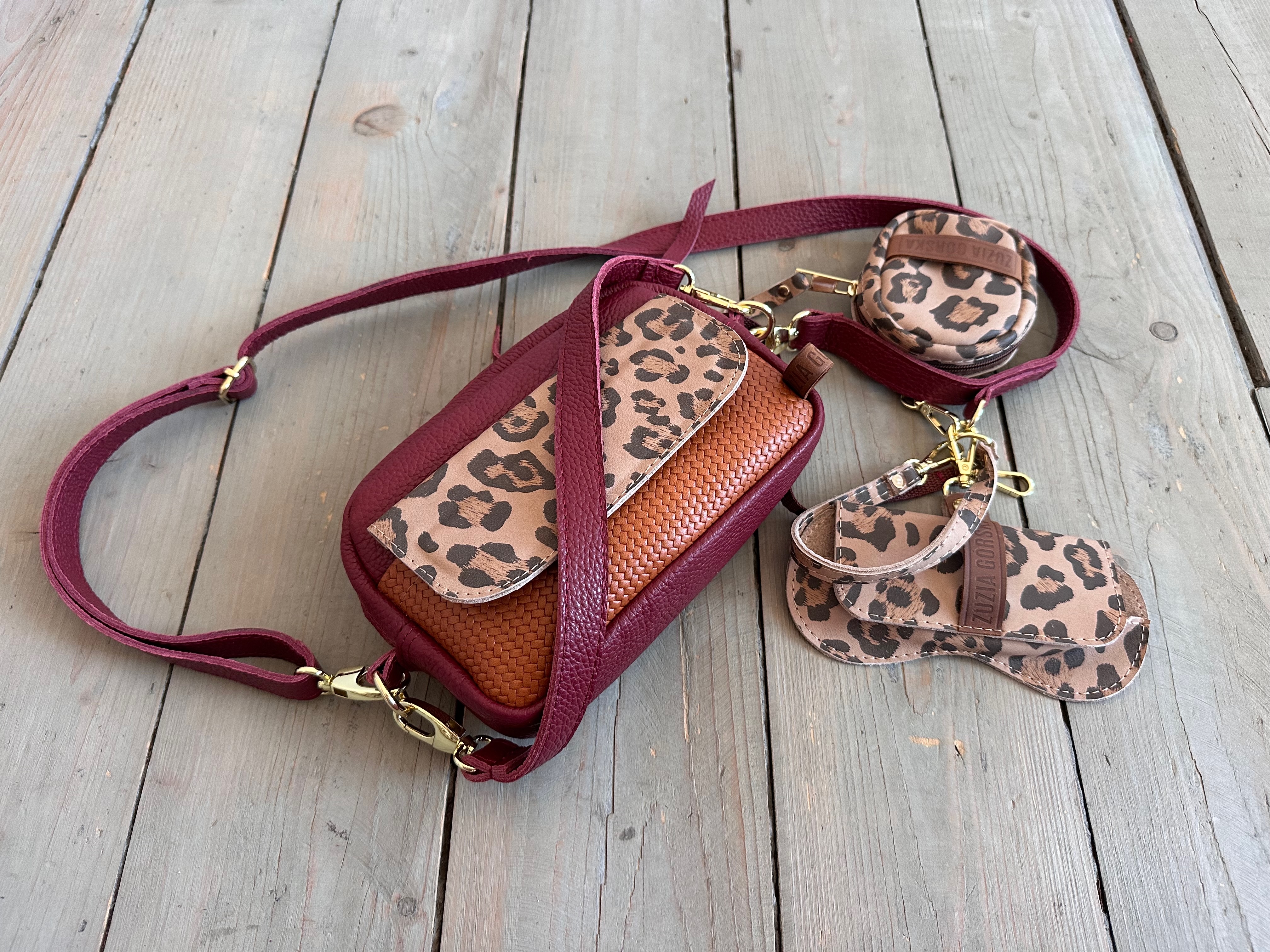 KOMPLET: Traveller 2 v. classic Cranberry + Brown Lazy Braided + Leopard IV Nubuck + Sunglasses Case + Minibag