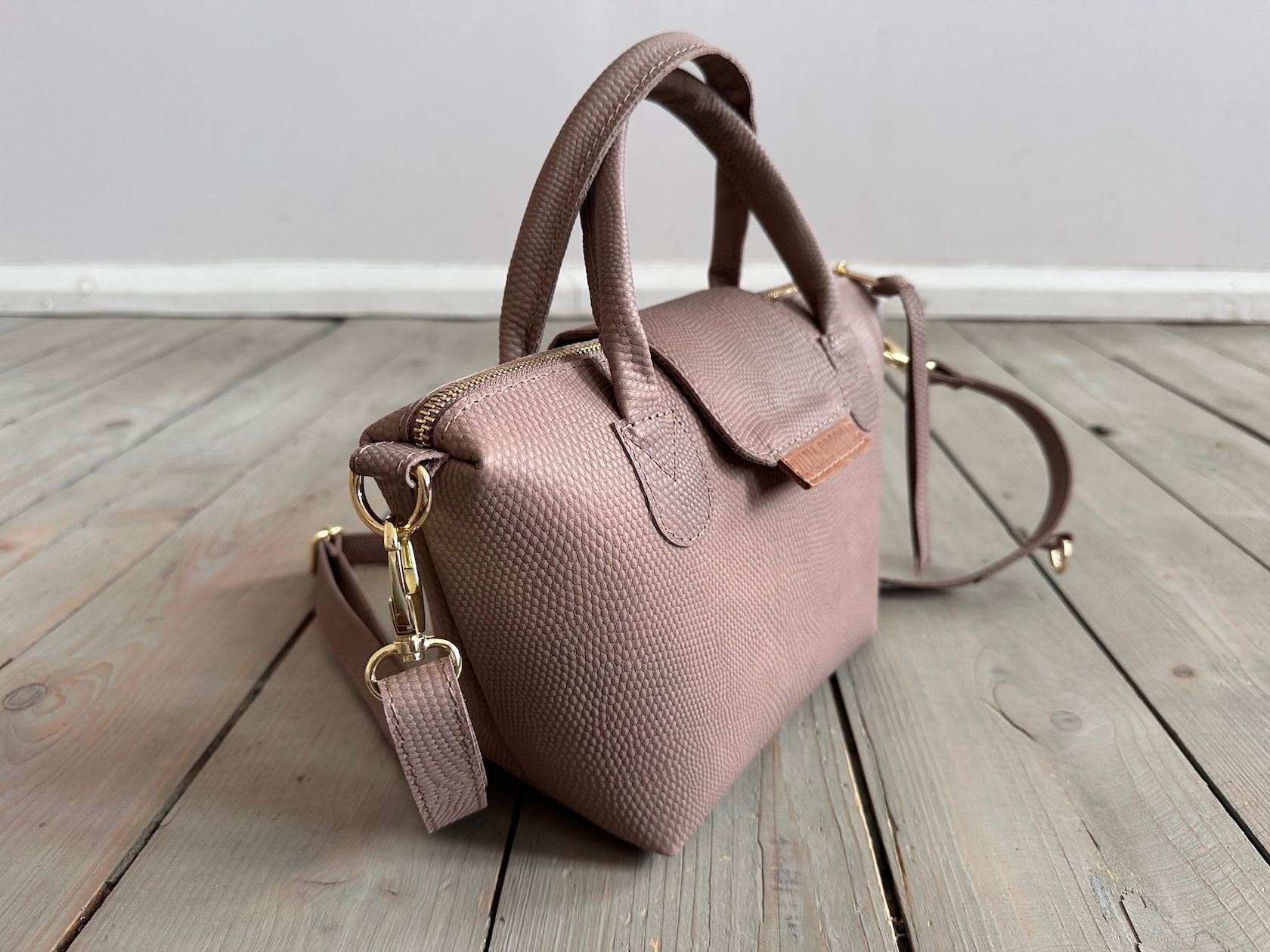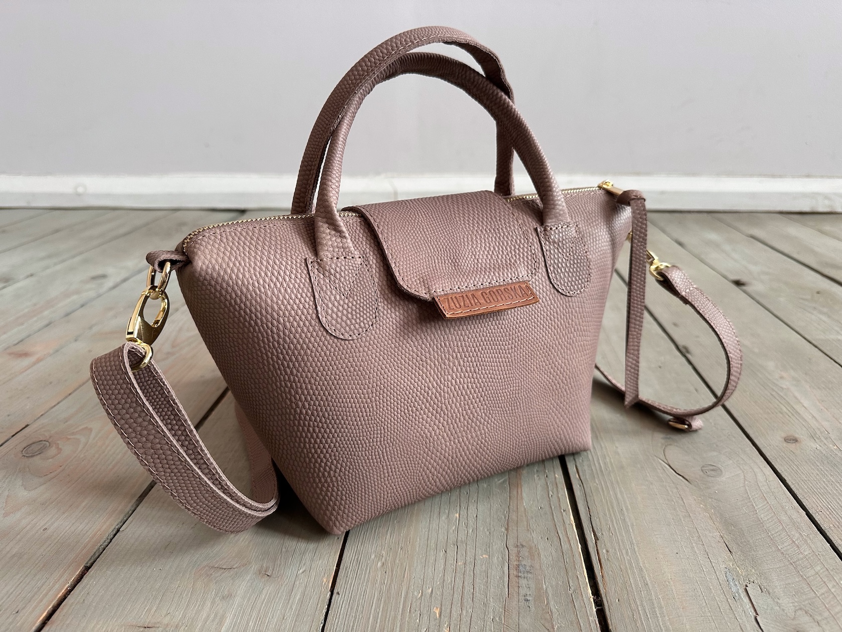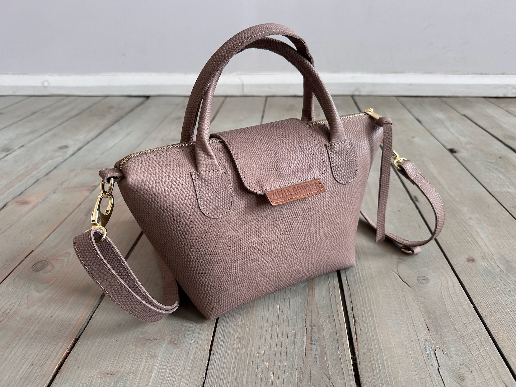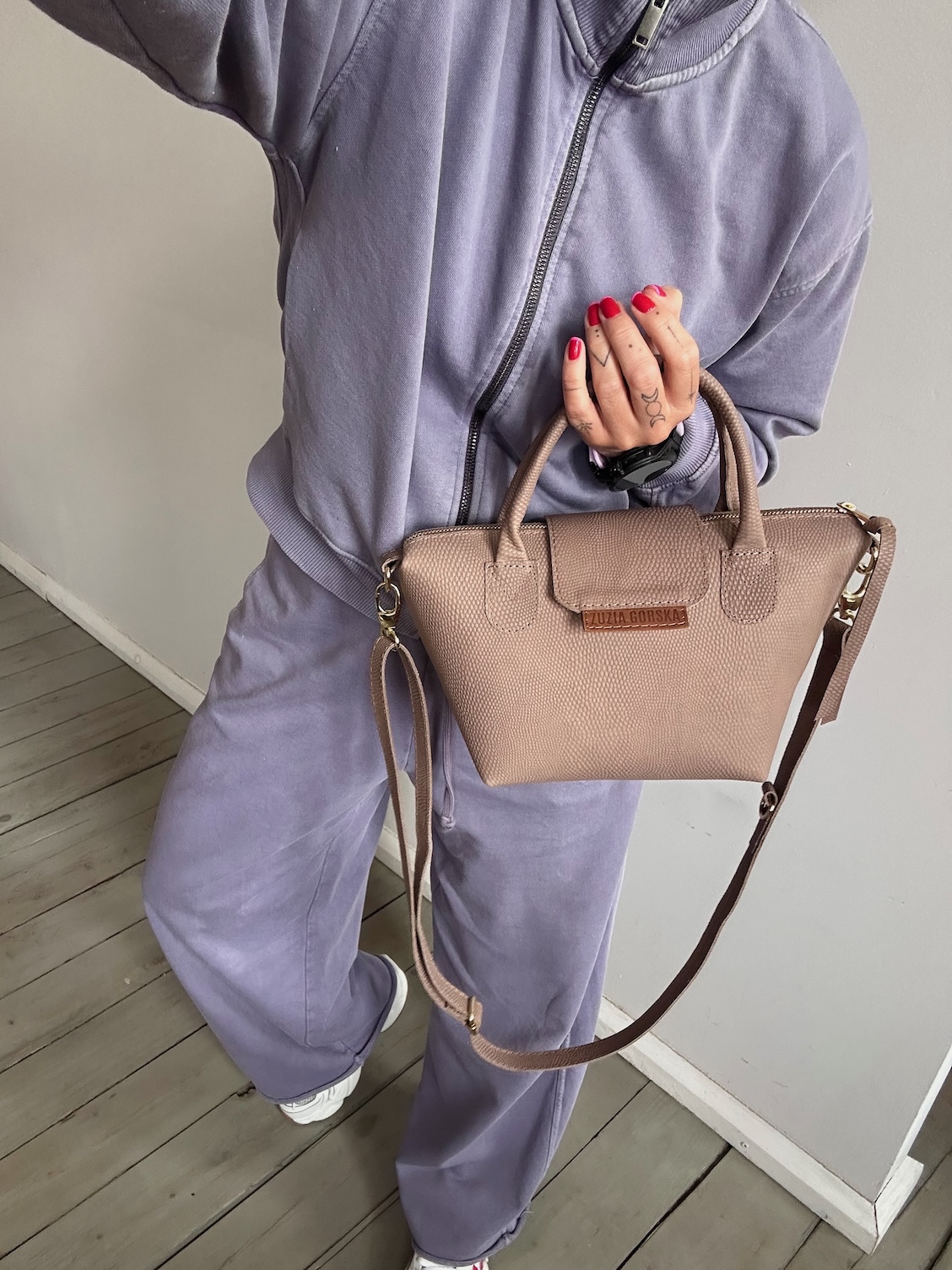 Średniej wielkości torebka o dość klasycznym kształcie. Zamykana na zamek.