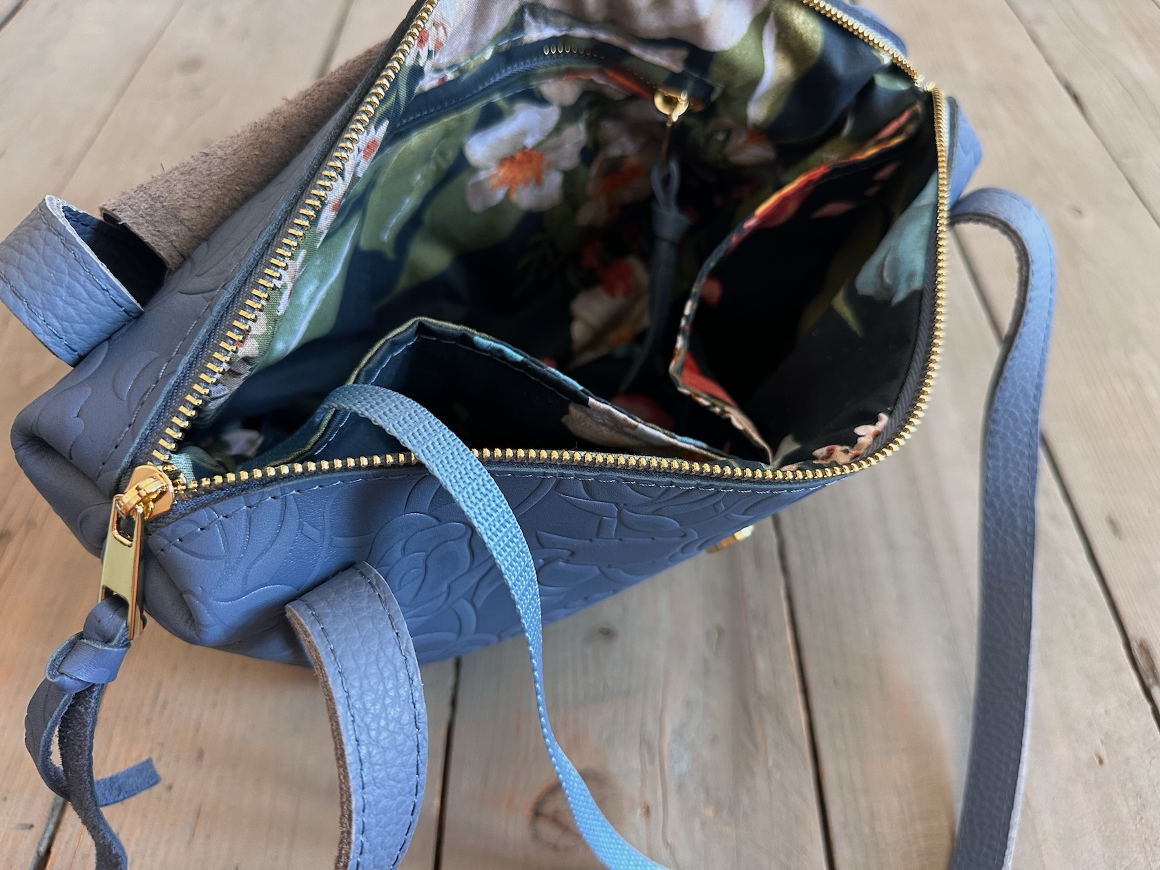 Uszyta ze skóry naturalnej licowej + bawełnianej podszewki.
