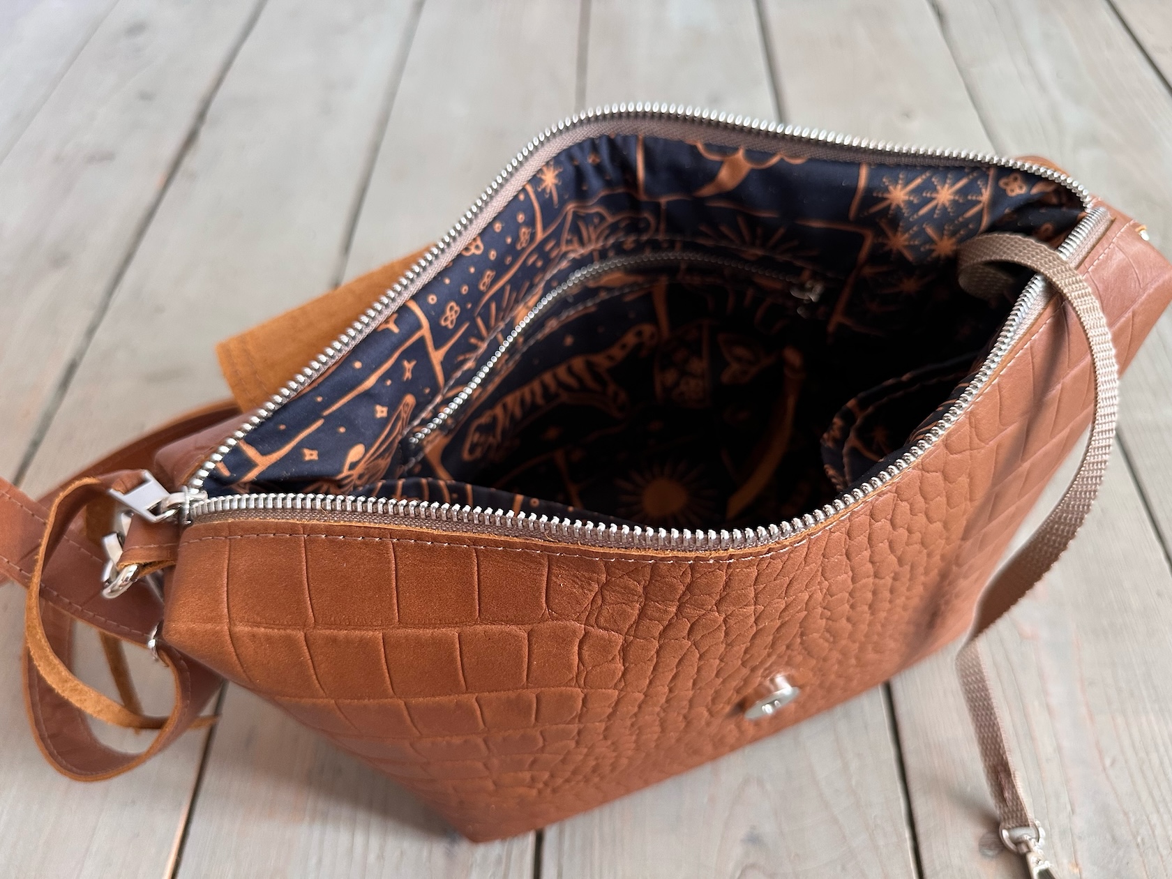 Uszyta ze skóry naturalnej licowej + bawełnianej podszewki.