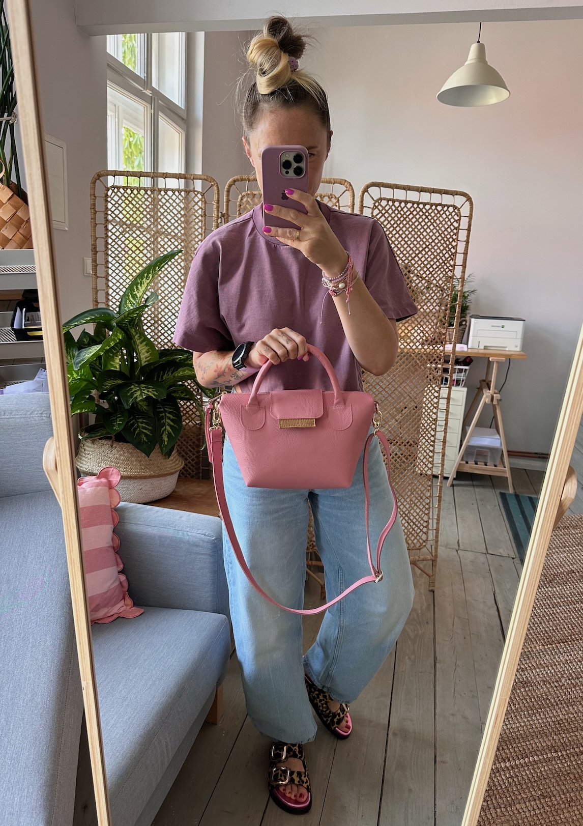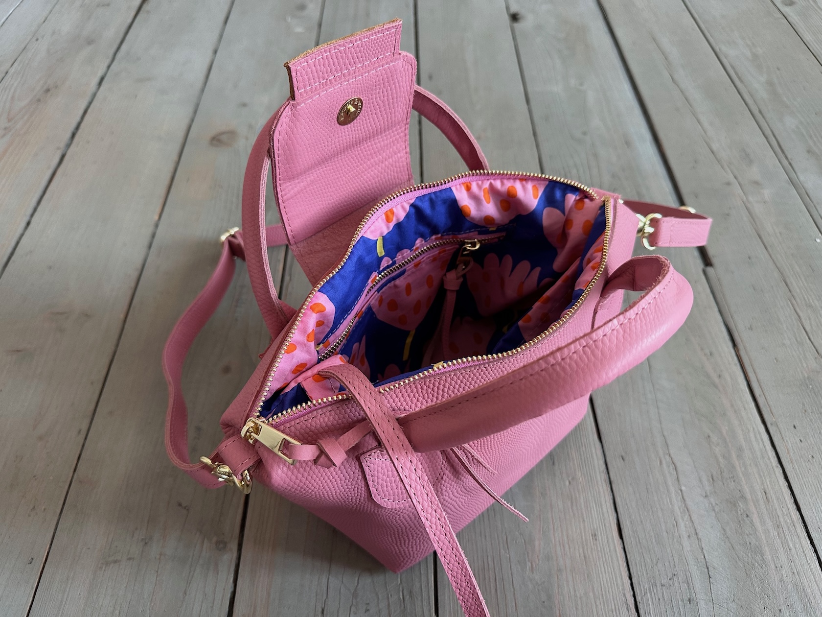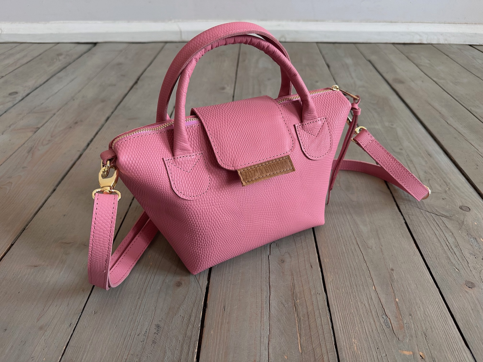 Średniej wielkości torebka o dość klasycznym kształcie. Zamykana na zamek.