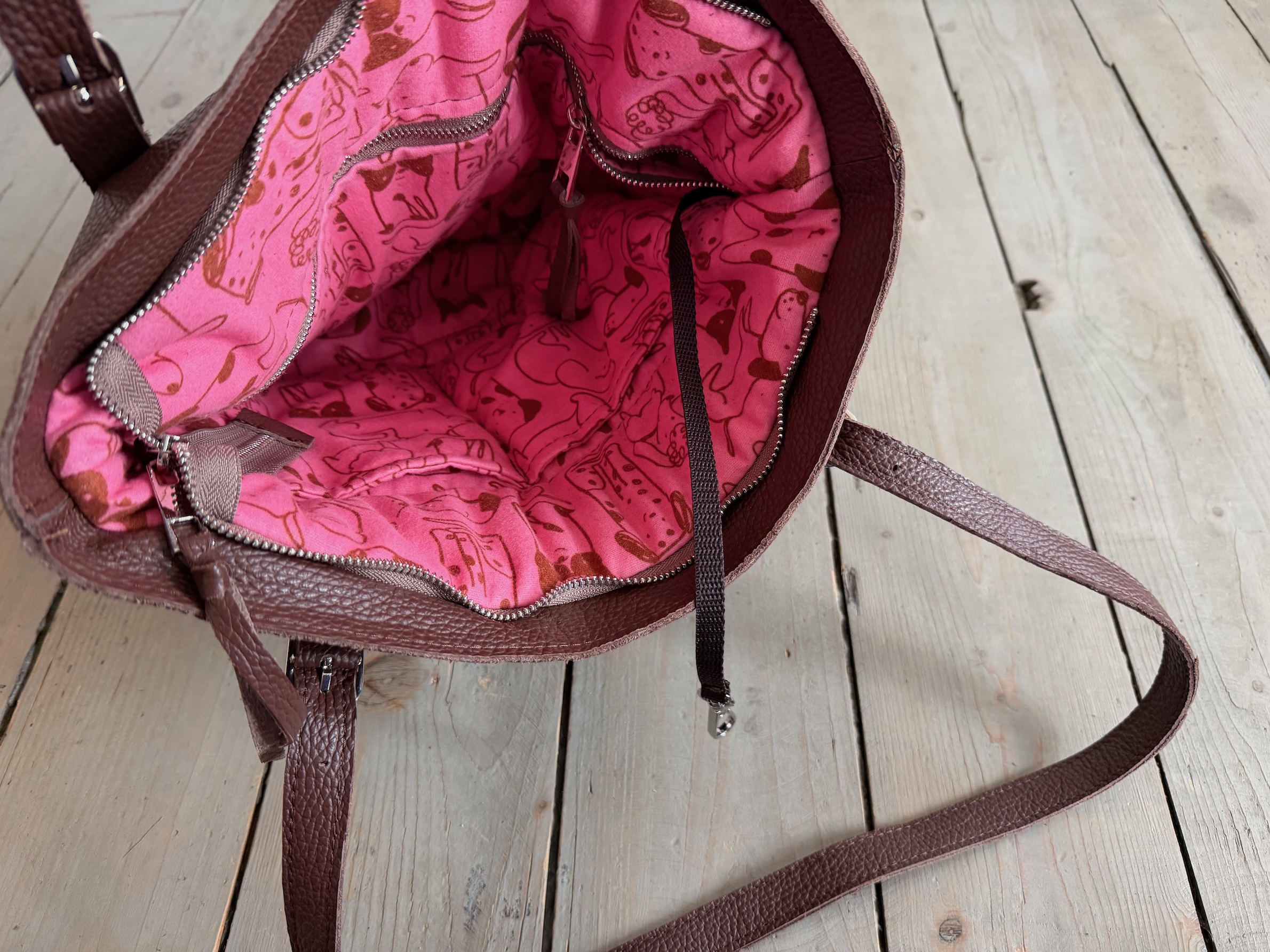 Uszyta ze skóry naturalnej licowej + podszewka 100% bawełny.