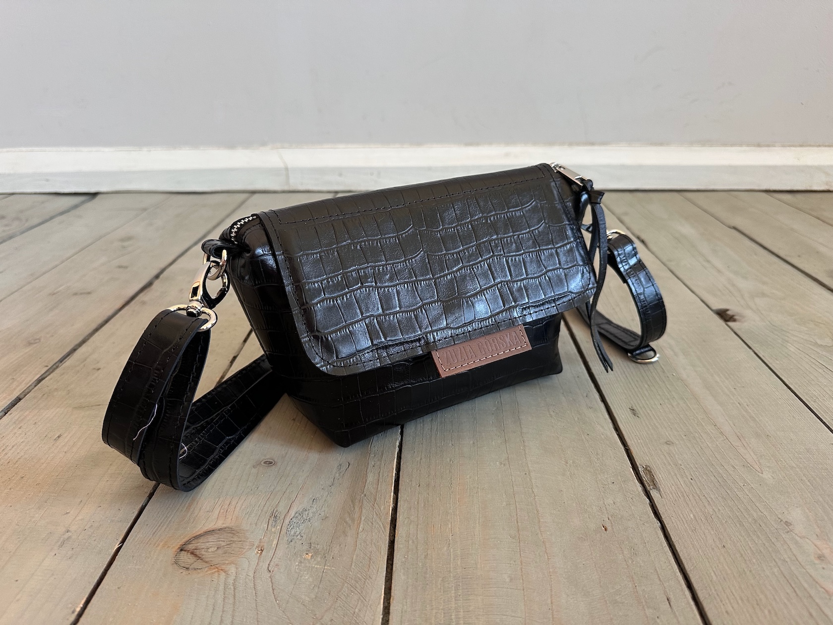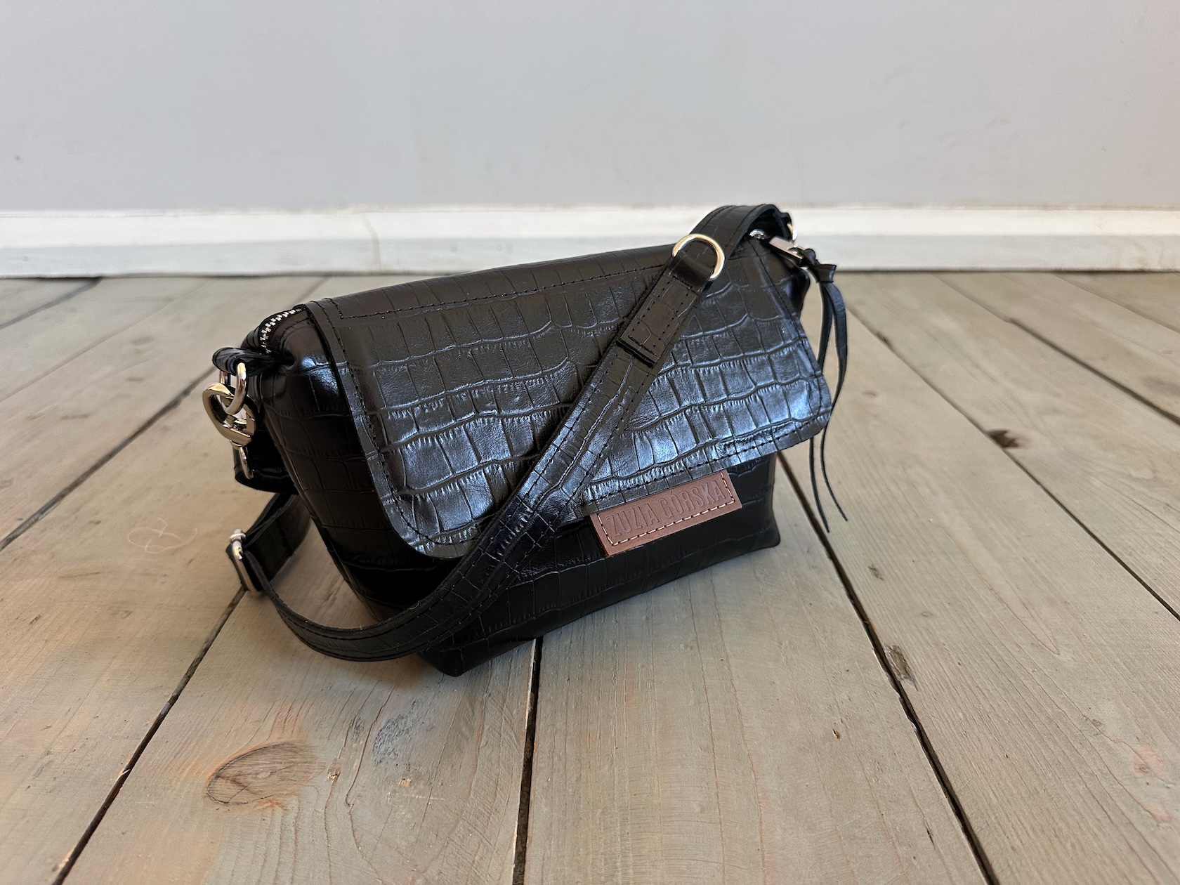 Uszyta ze skóry naturalnej licowej + bawełnianej podszewki.