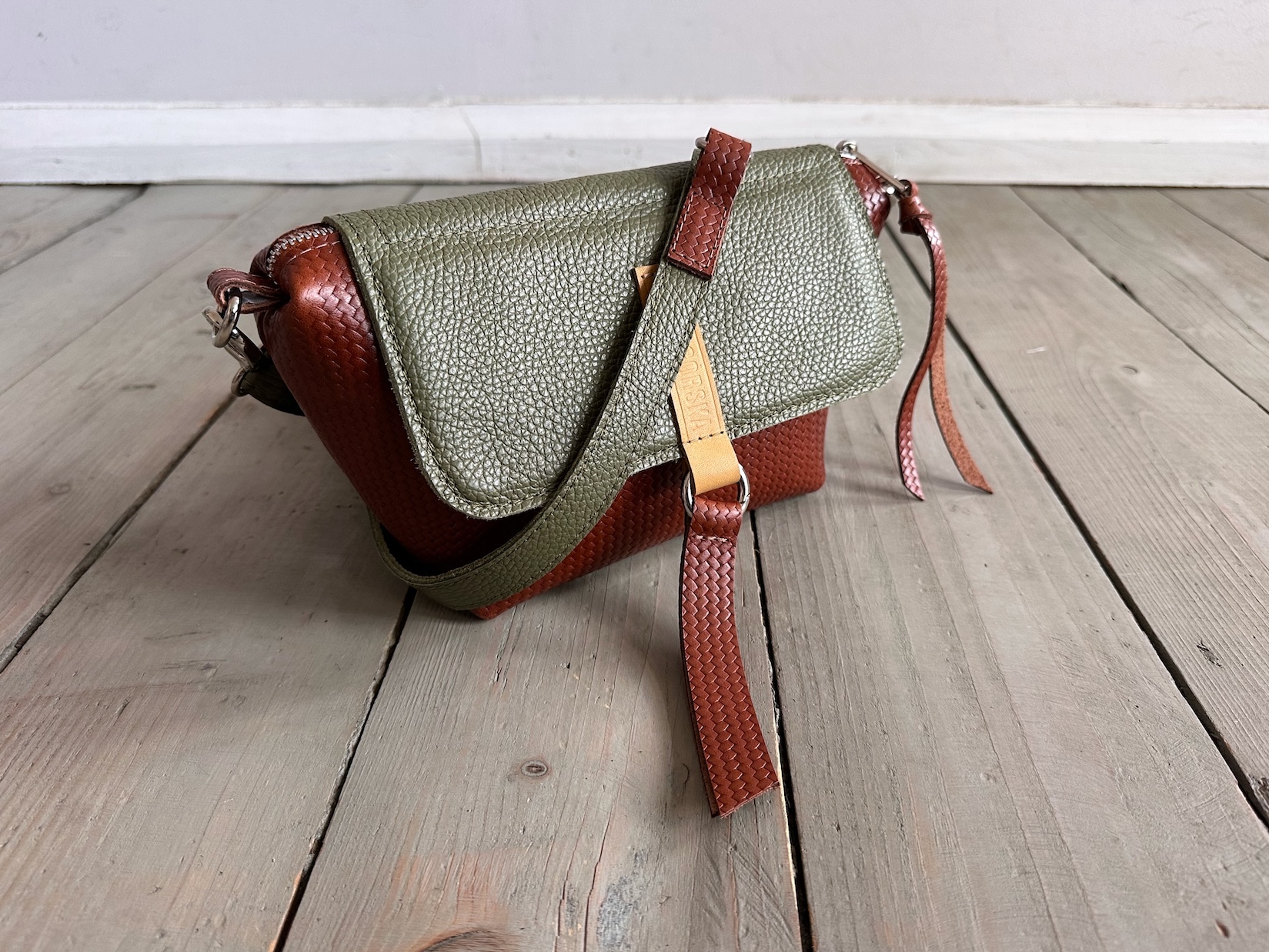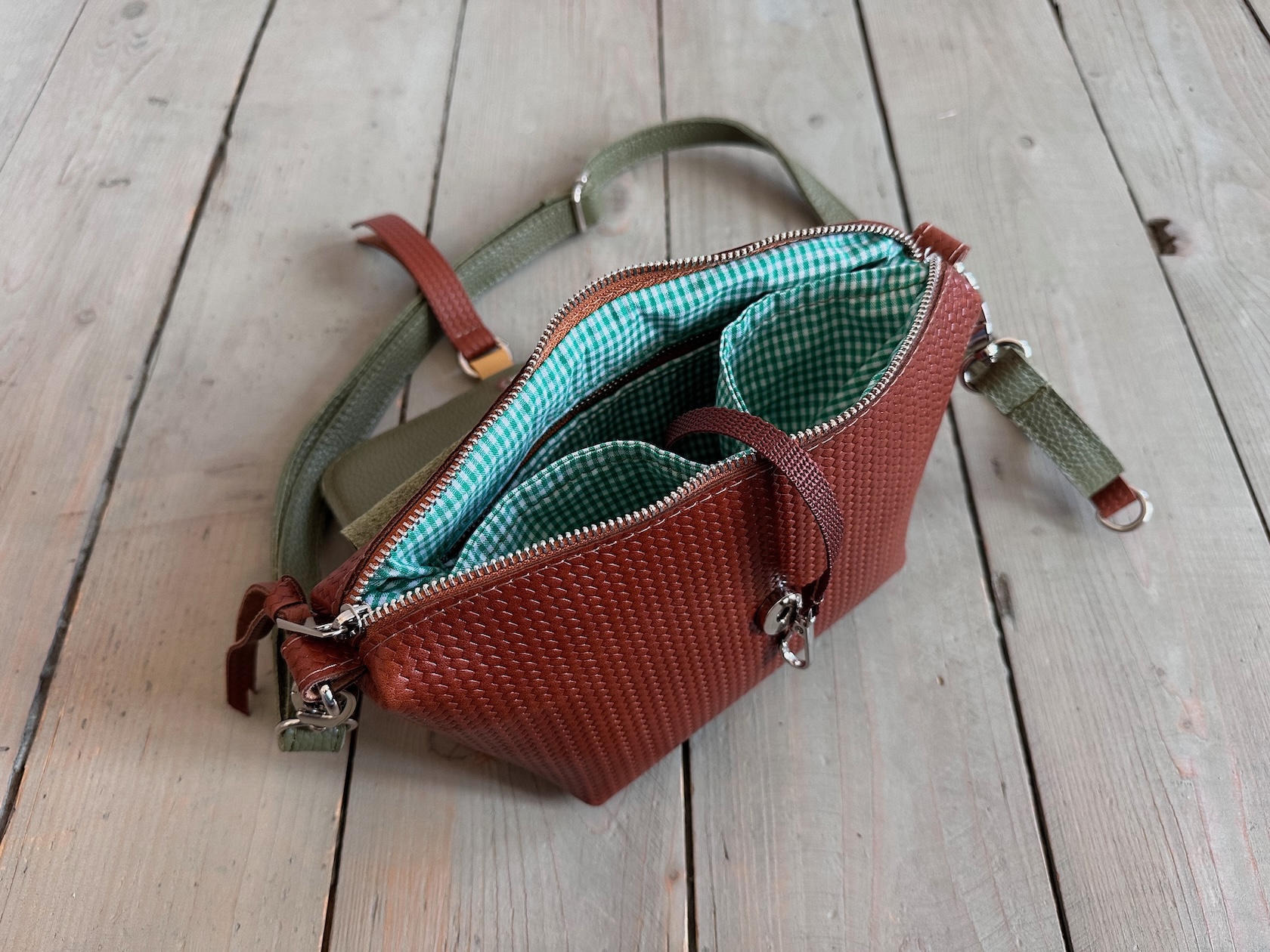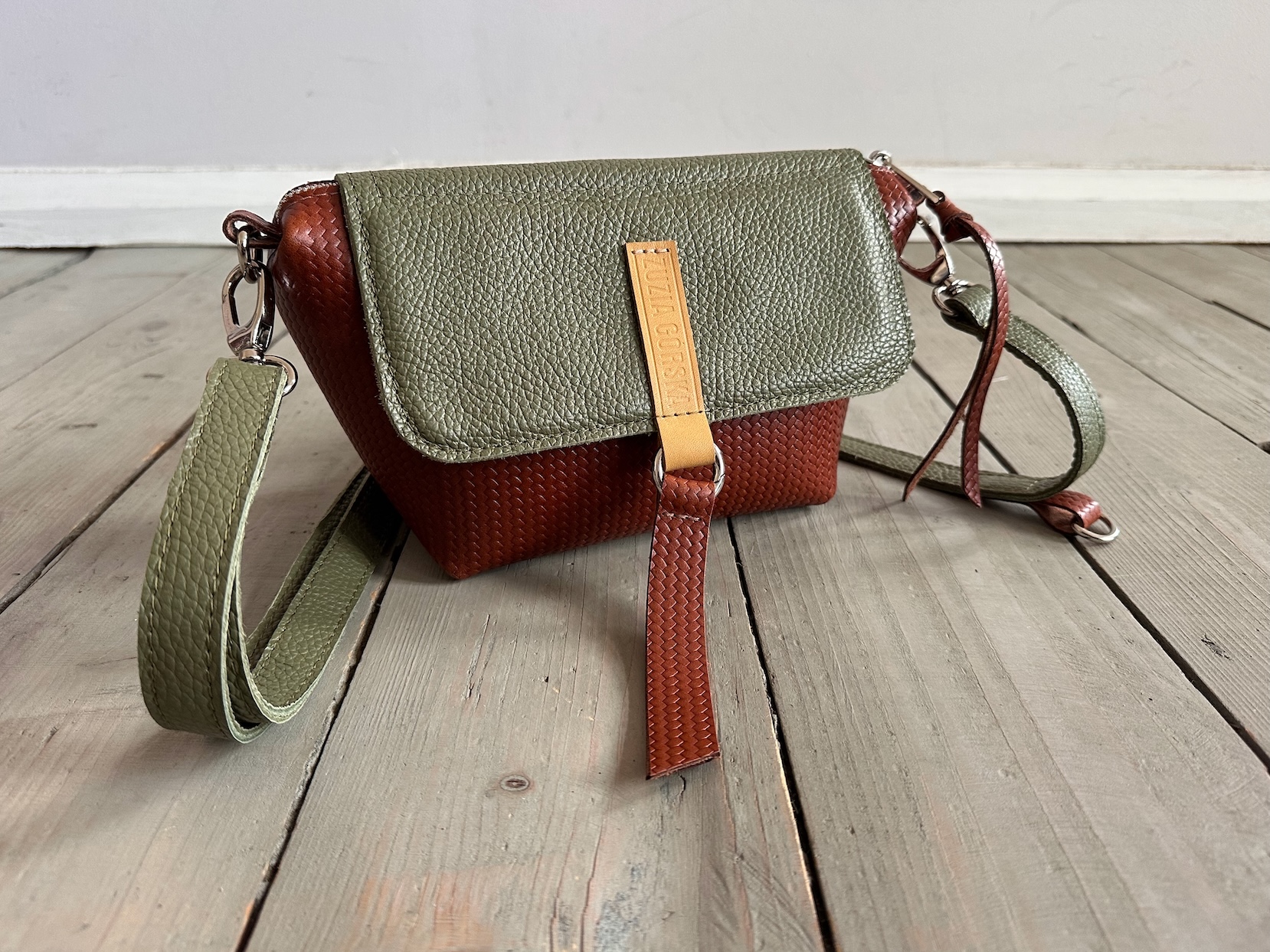 Uszyta ze skóry naturalnej licowej + bawełnianej podszewki.