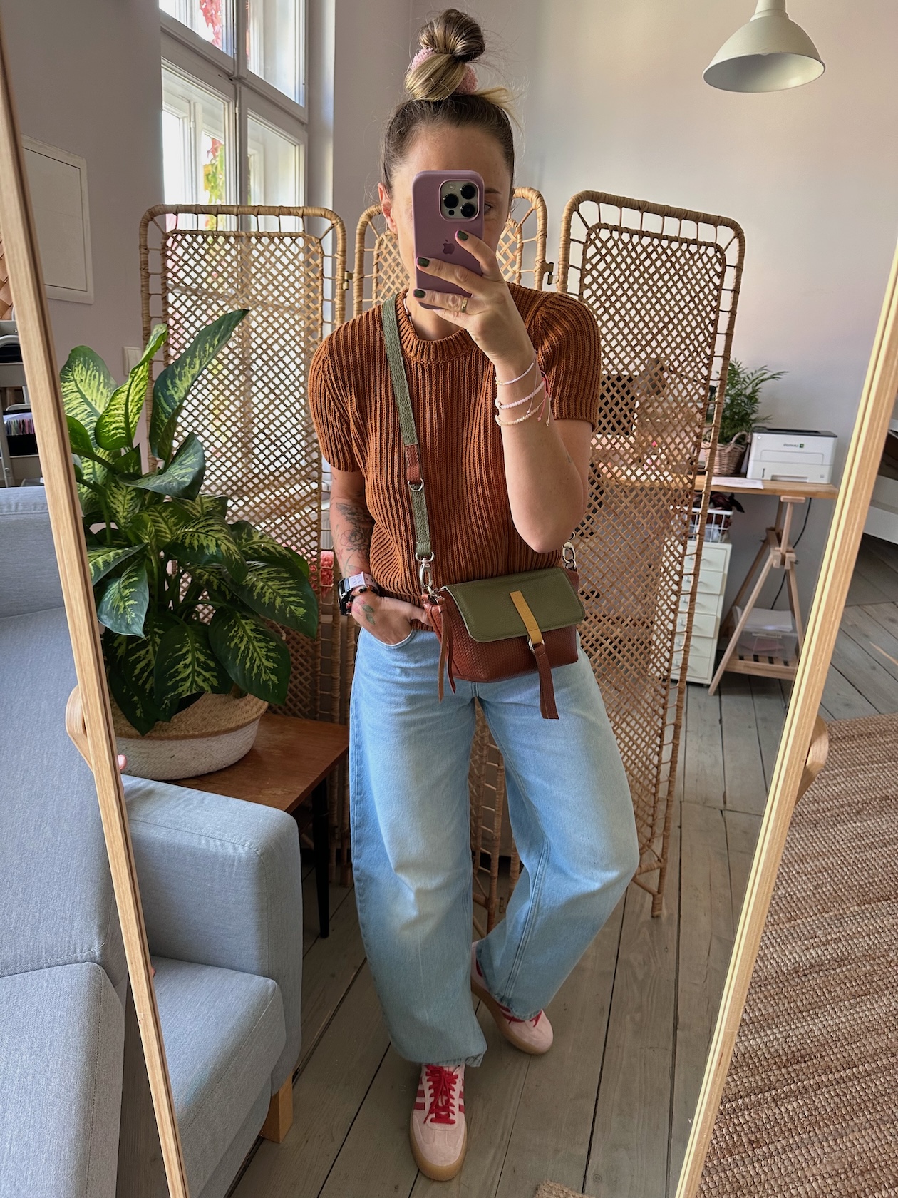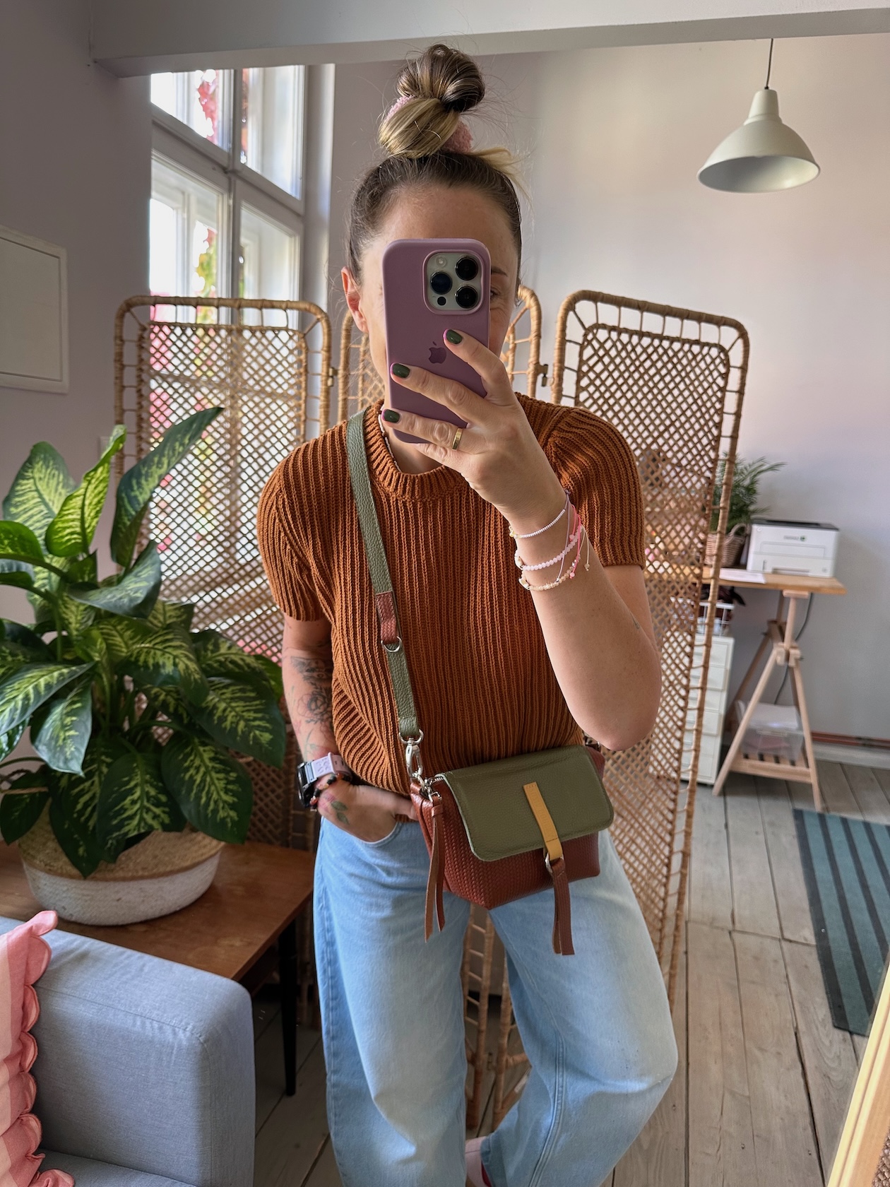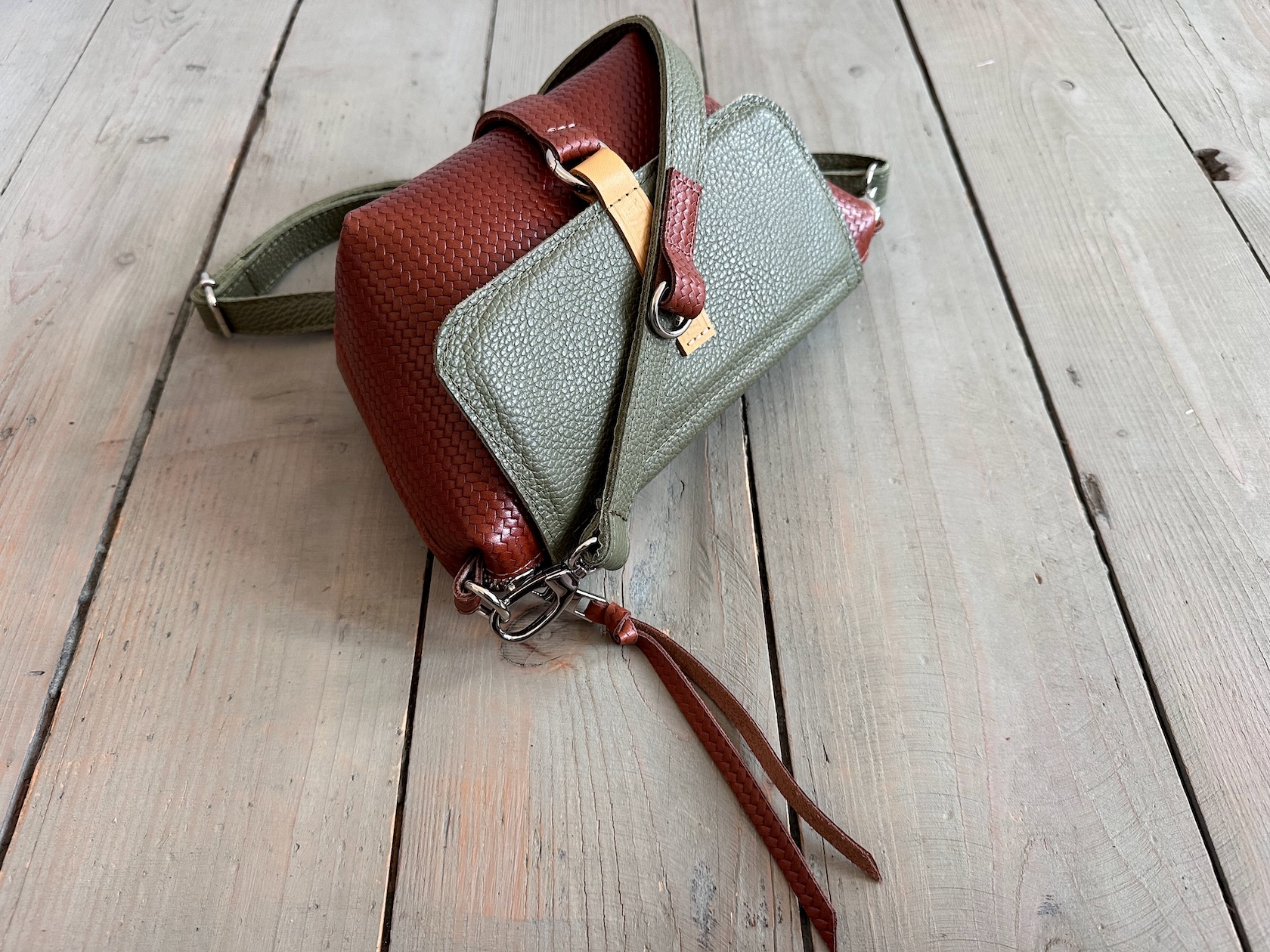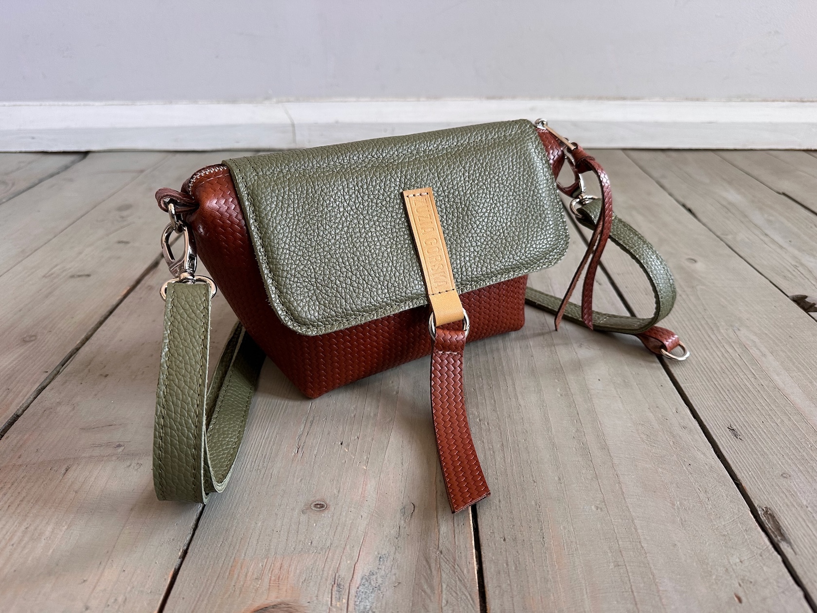 Uszyta ze skóry naturalnej licowej + bawełnianej podszewki.
