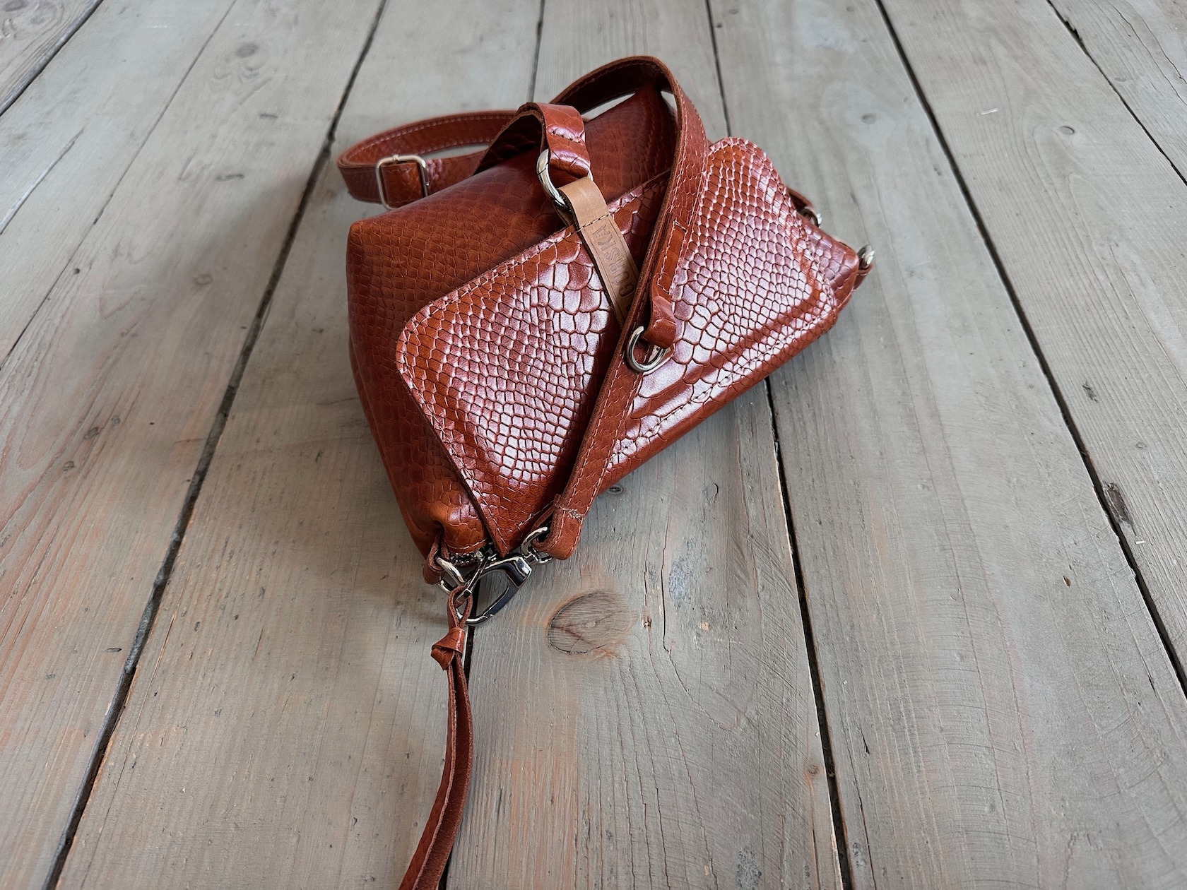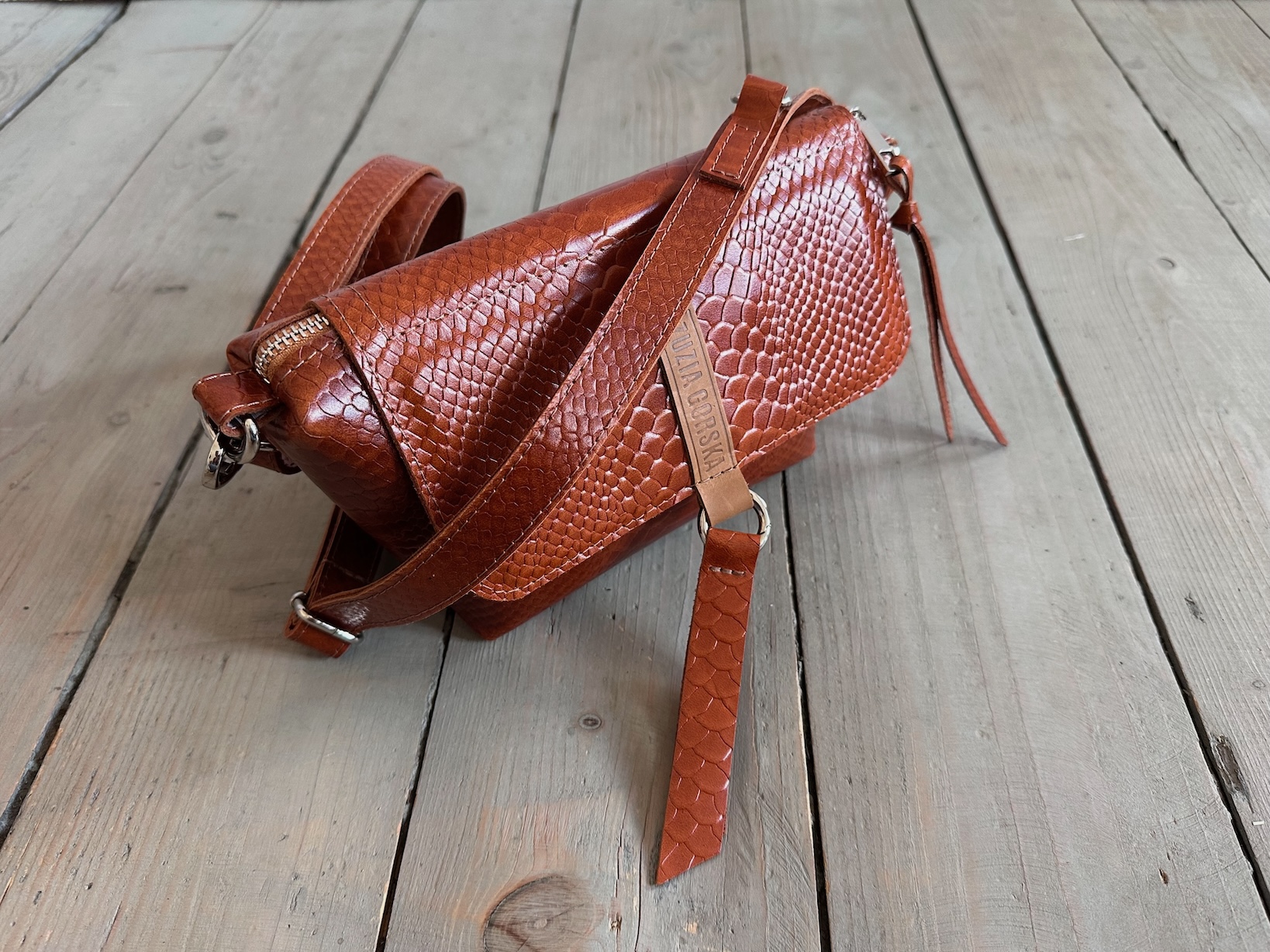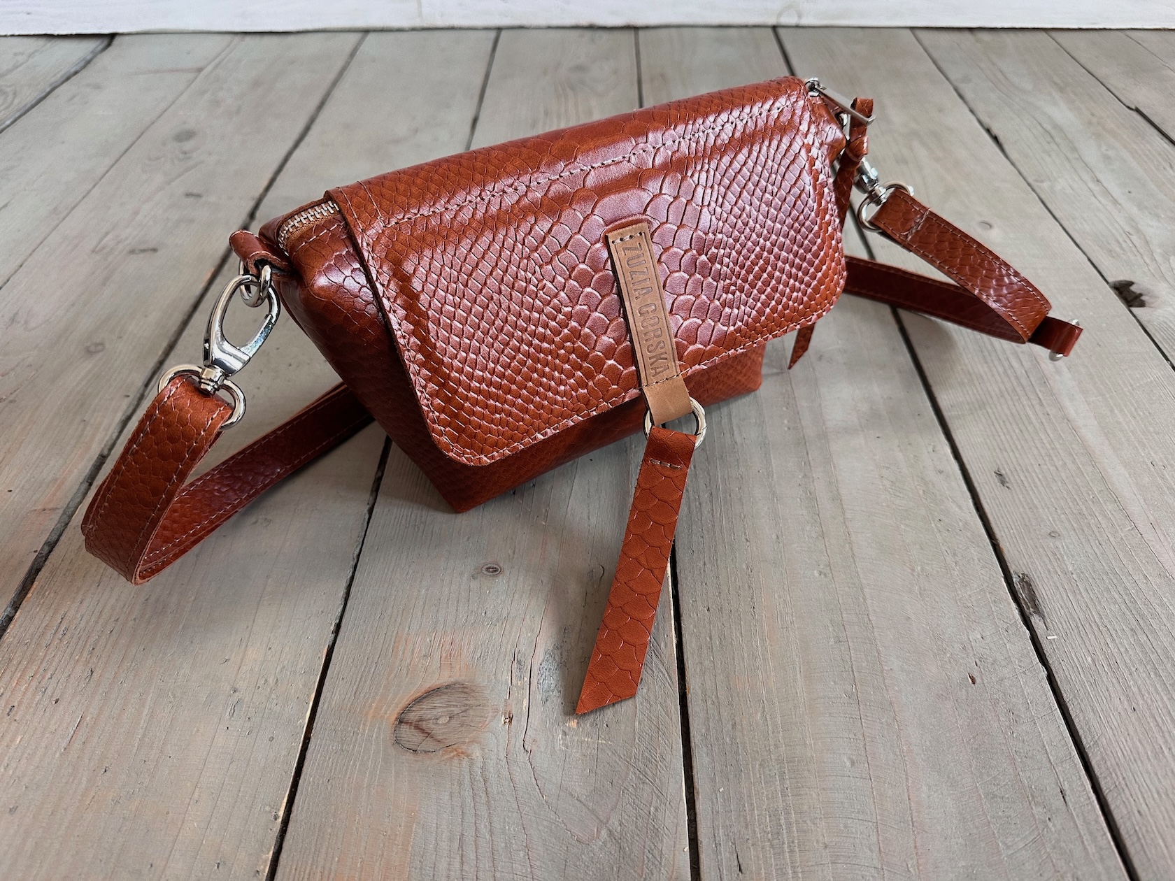 Uszyta ze skóry naturalnej licowej + bawełnianej podszewki.