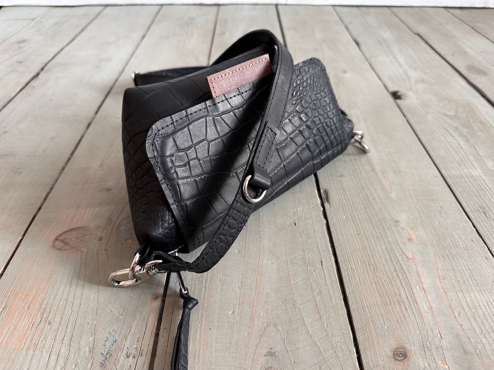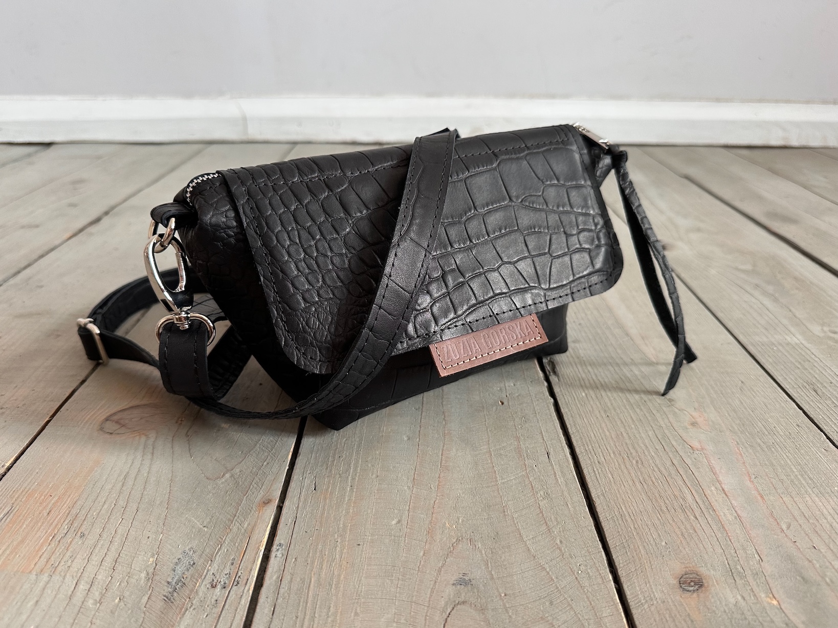 Uszyta ze skóry naturalnej licowej + bawełnianej podszewki.