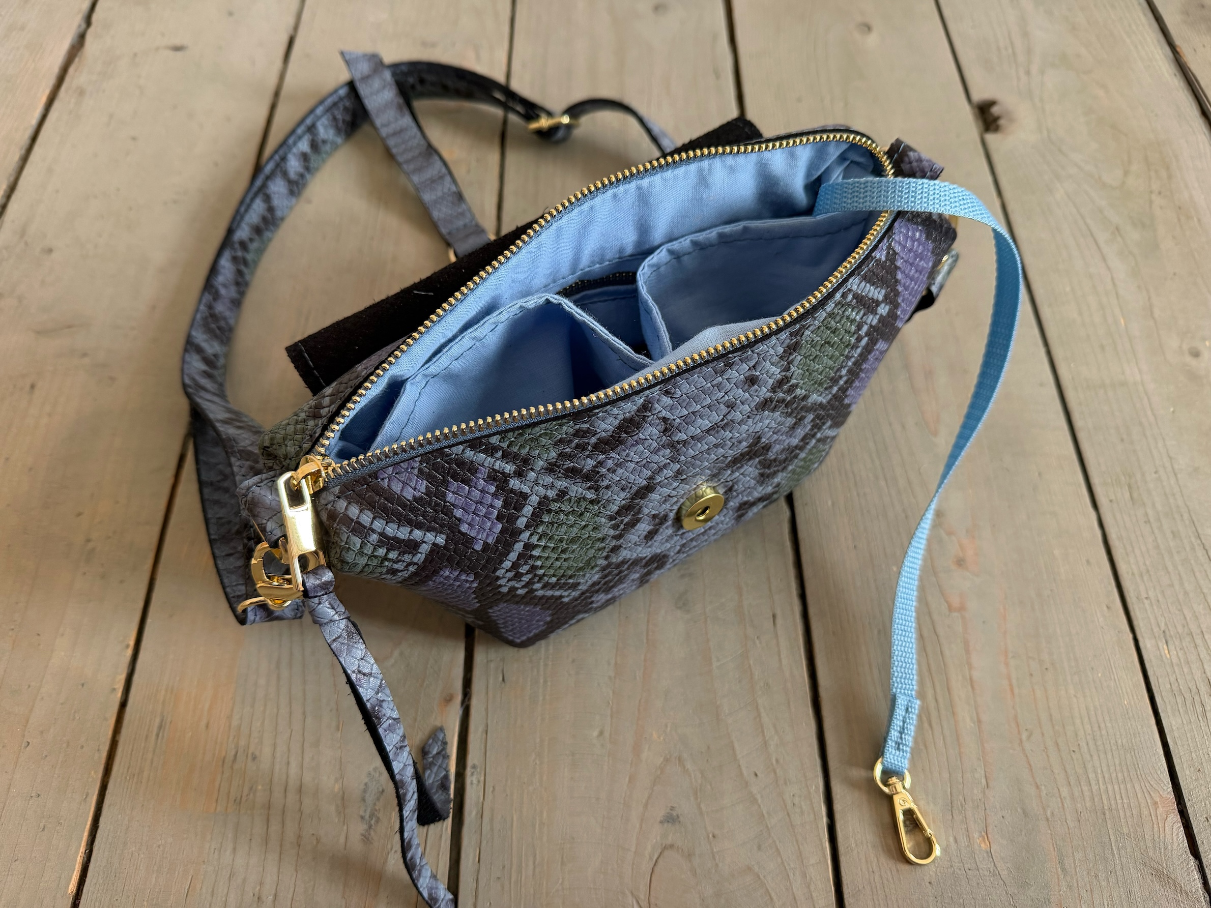 Uszyta ze skóry naturalnej licowej + bawełnianej podszewki.