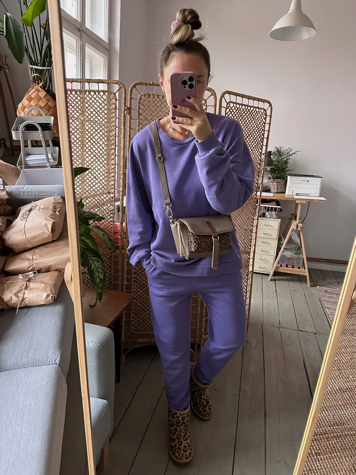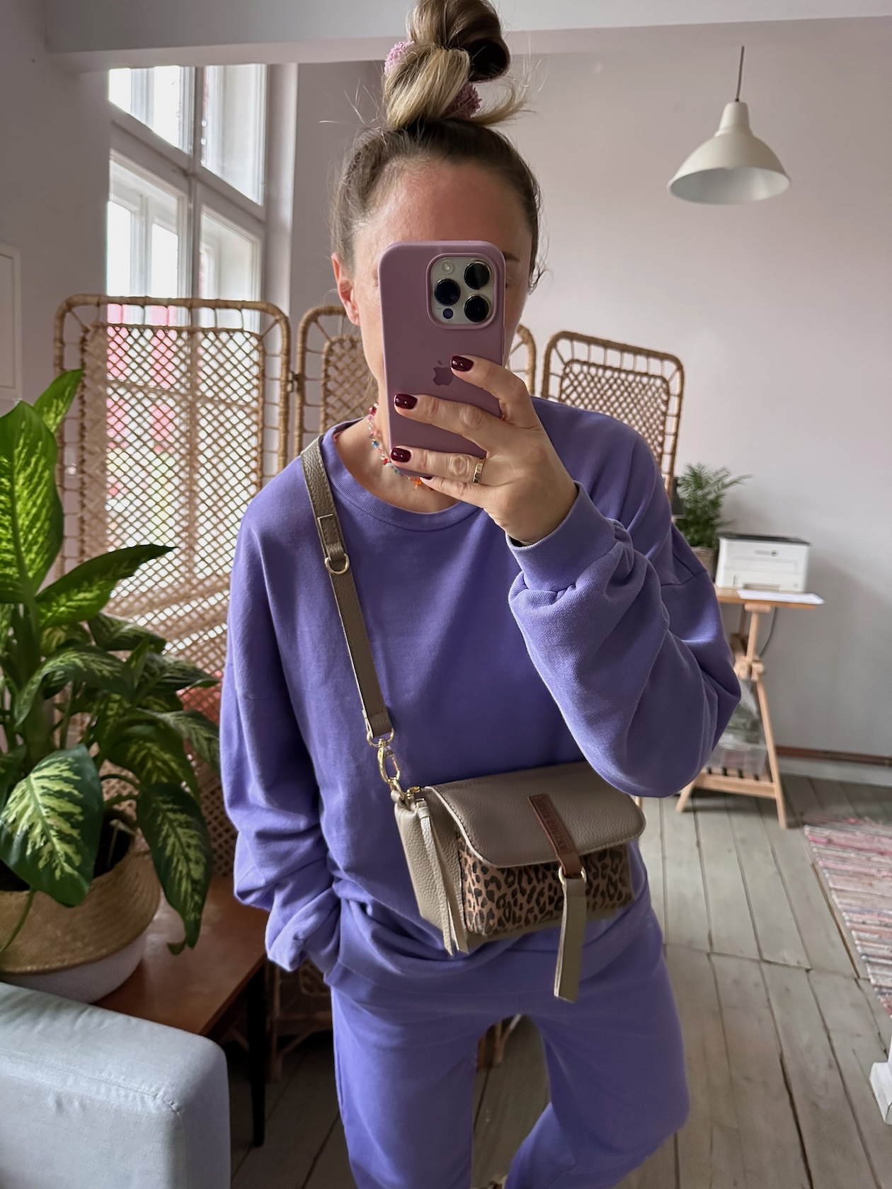 Na zewnątrz naszyta kieszonka idealna na telefon, zamykana na magnes.
