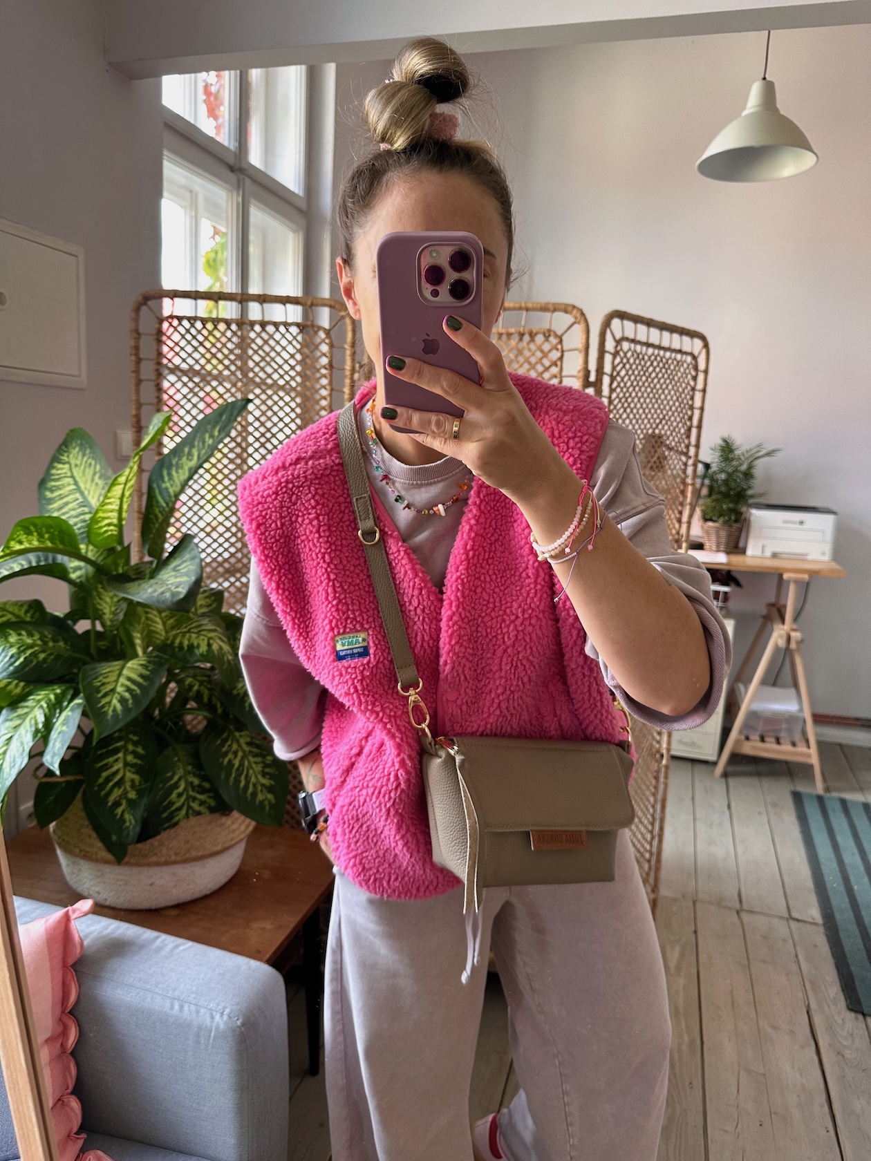 Wewnątrz kieszonka na zamek oraz smyczka z karabińczykiem.