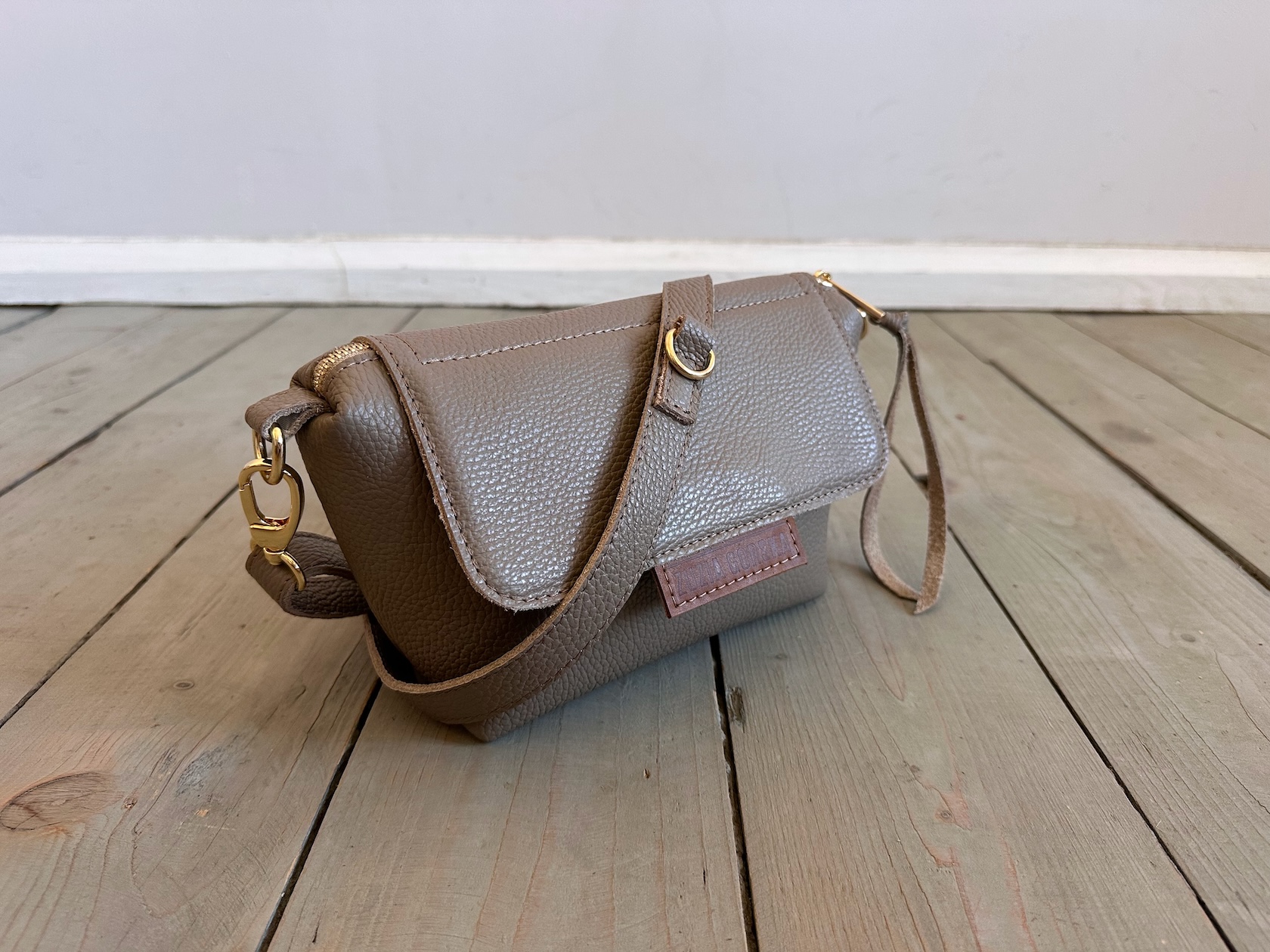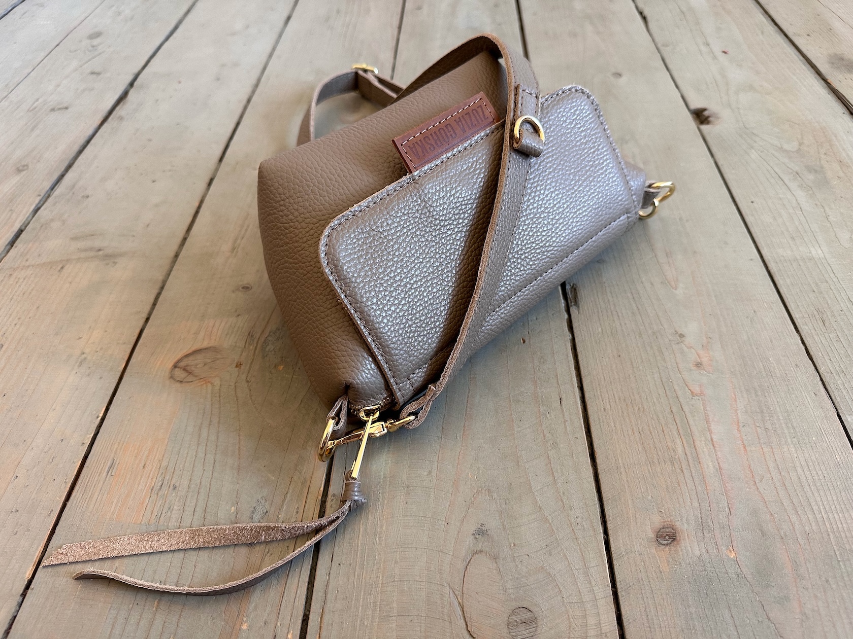 Uszyta ze skóry naturalnej licowej + bawełnianej podszewki.