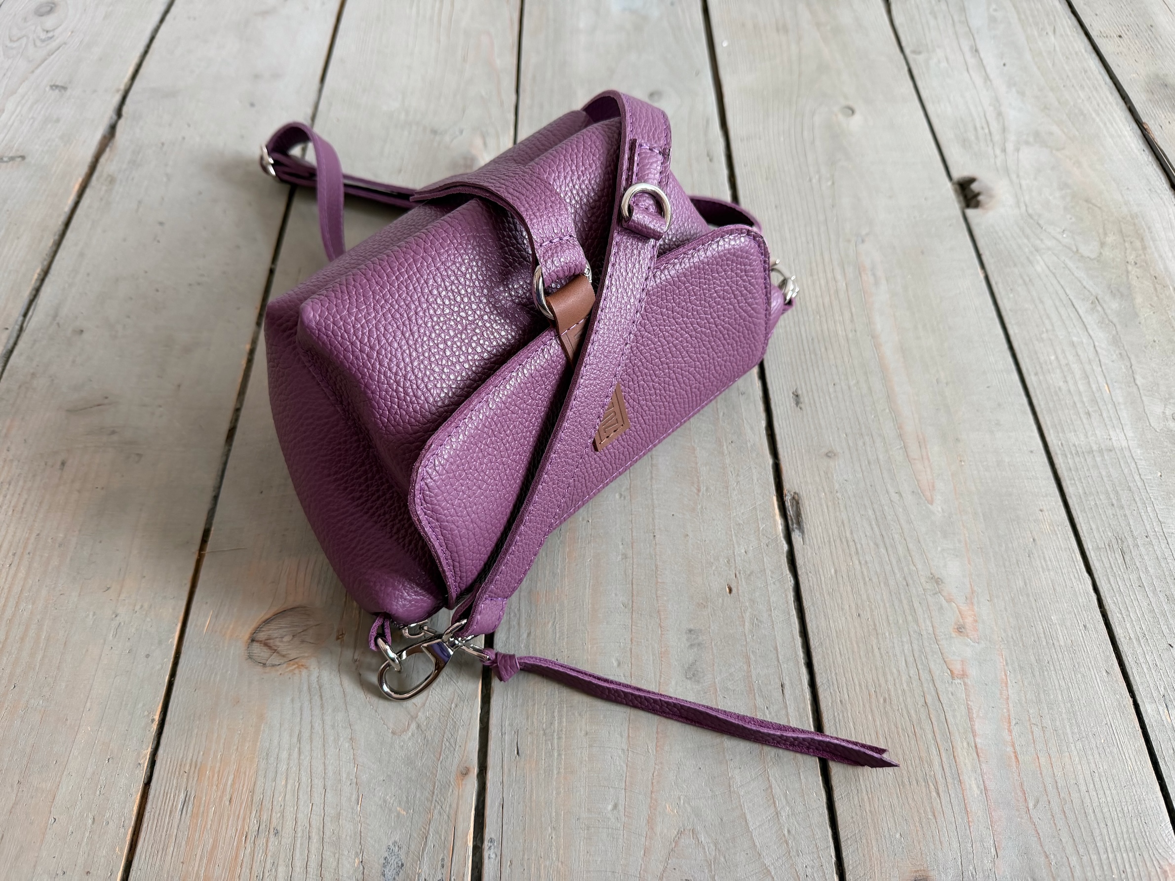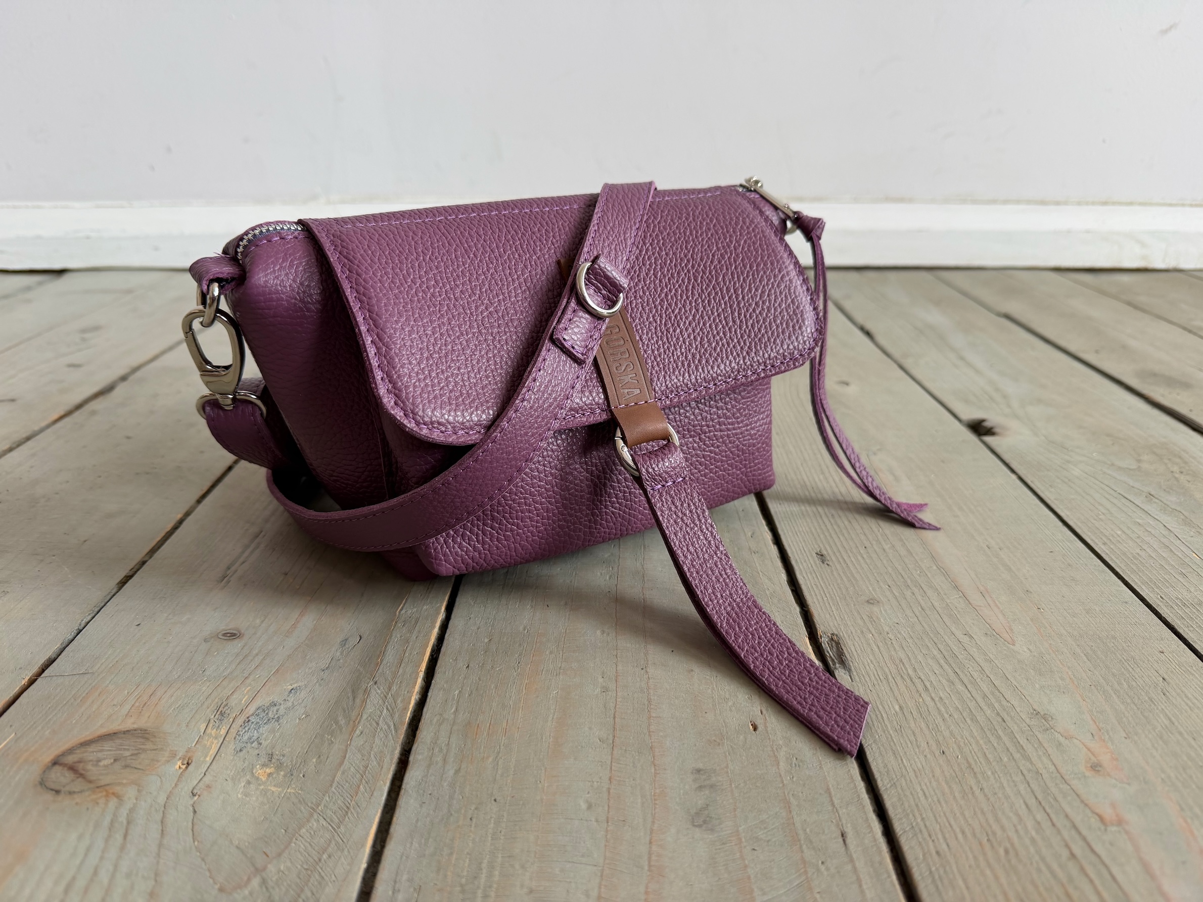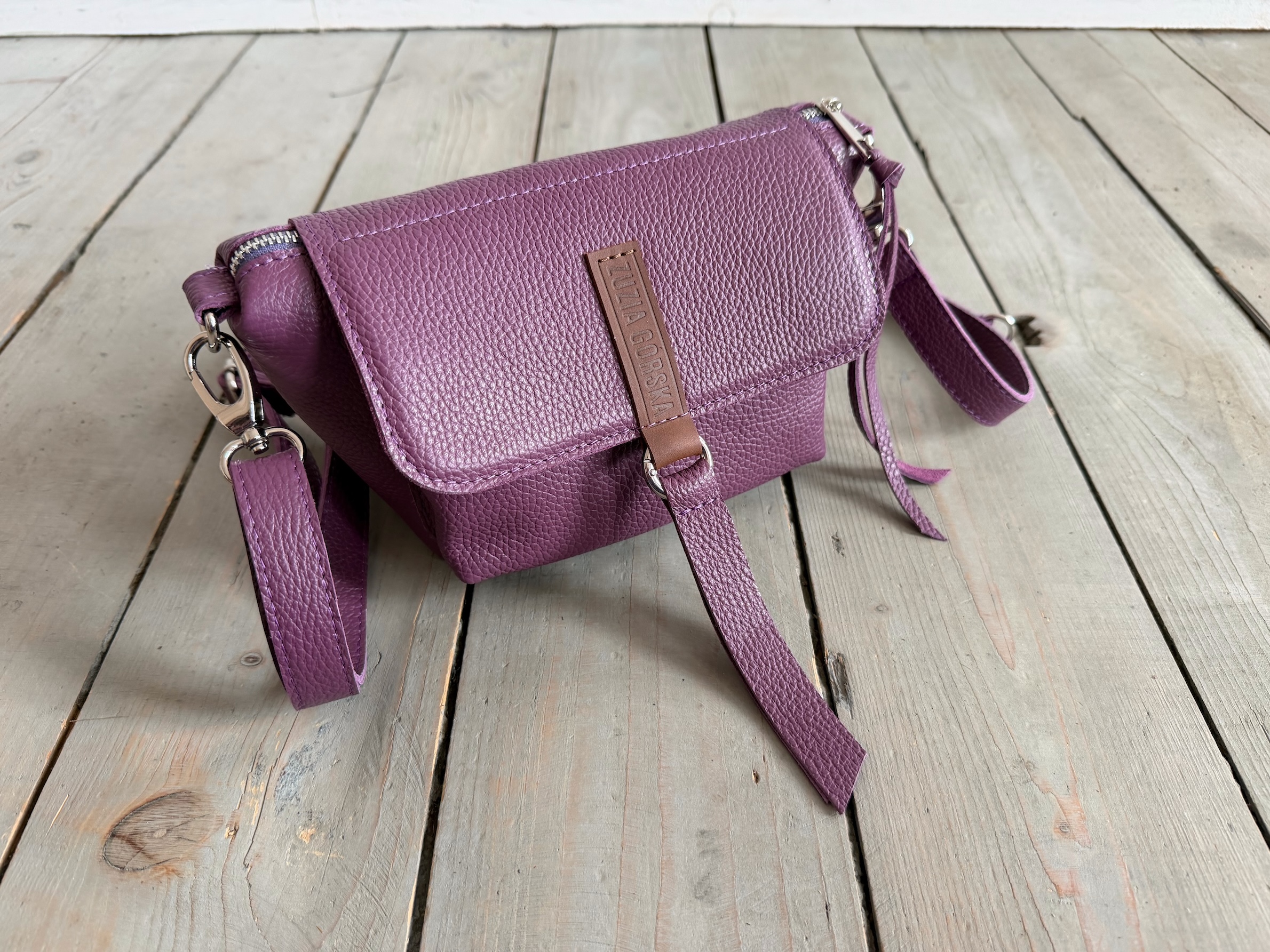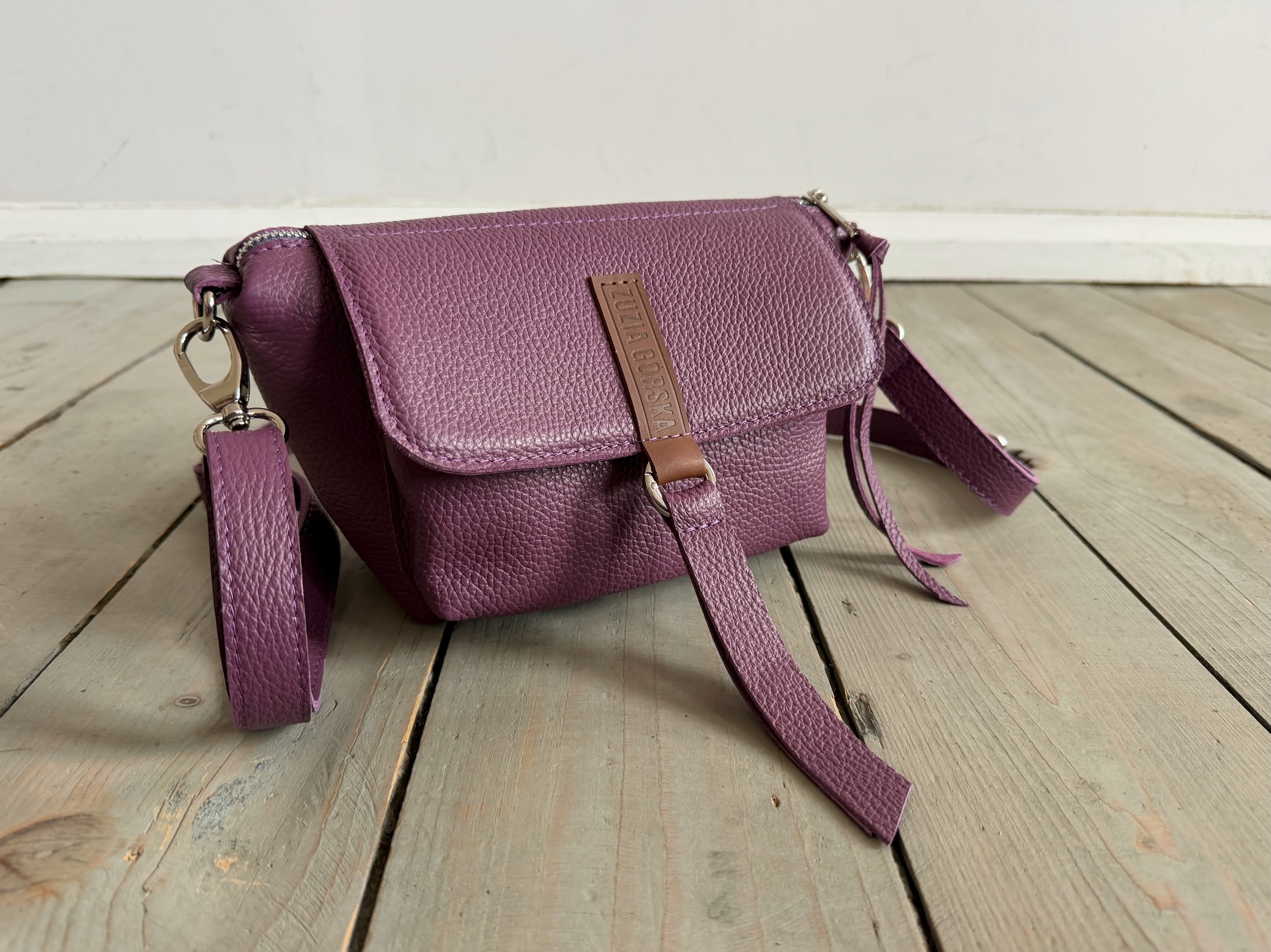 Uszyta ze skóry naturalnej licowej + bawełnianej podszewki.