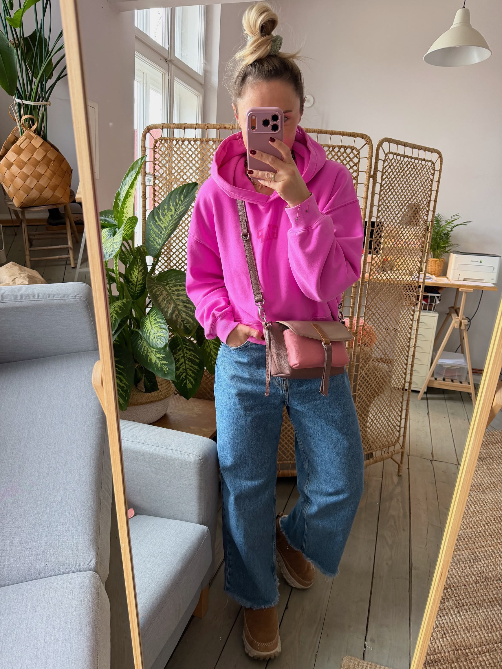 Na zewnątrz naszyta kieszonka idealna na telefon, zamykana na magnes.