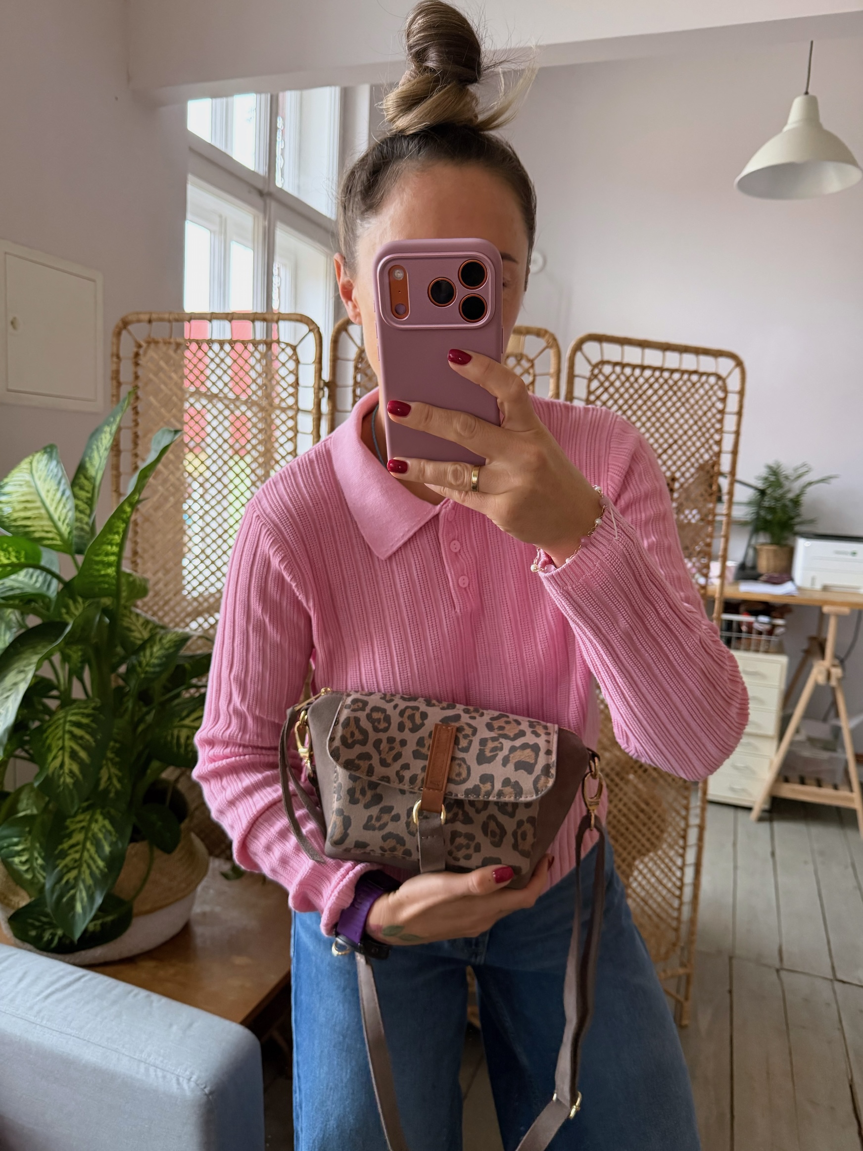 Na zewnątrz naszyta kieszonka idealna na telefon, zamykana na magnes.