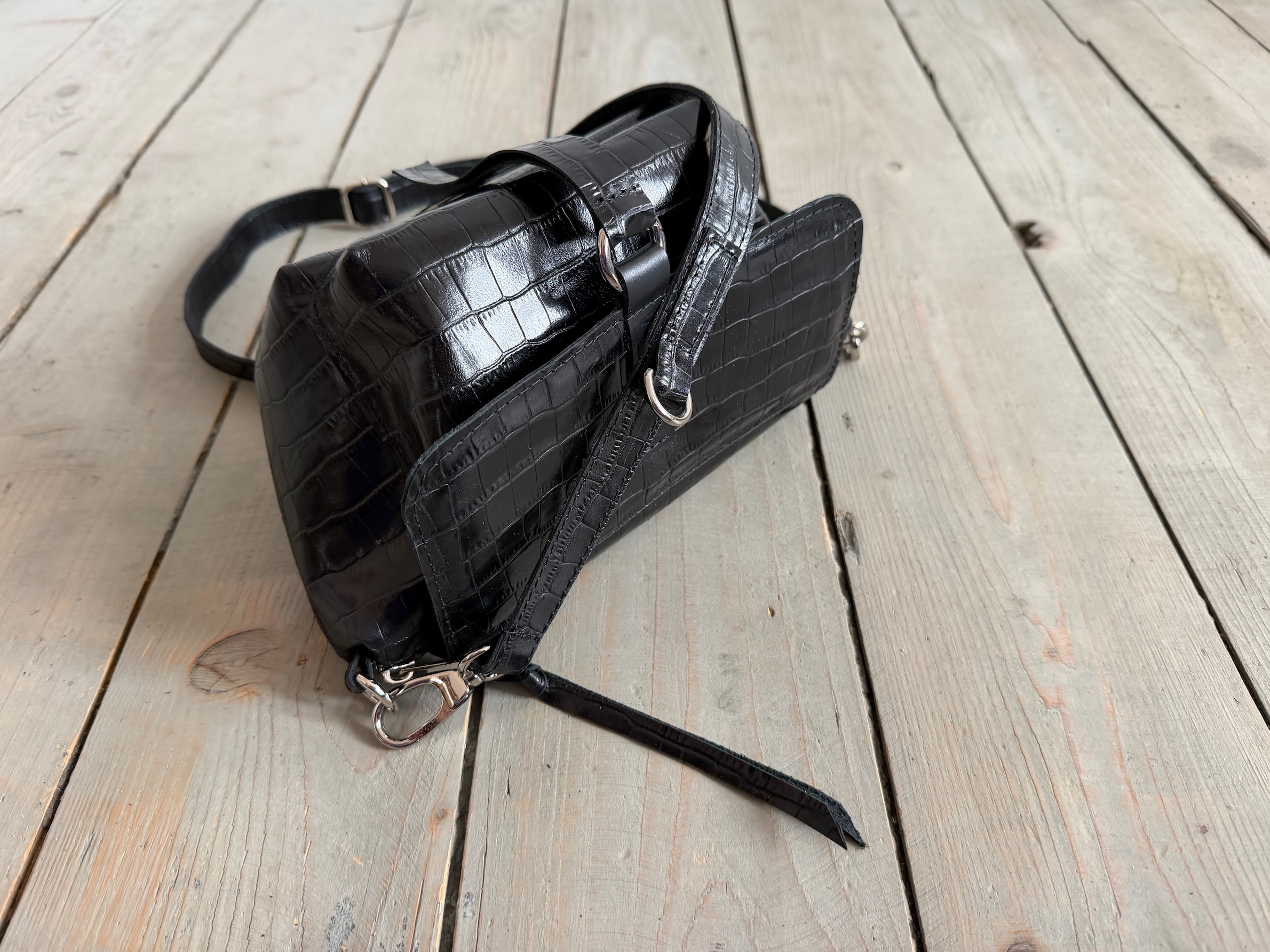 Uszyta ze skóry naturalnej licowej + bawełnianej podszewki.
