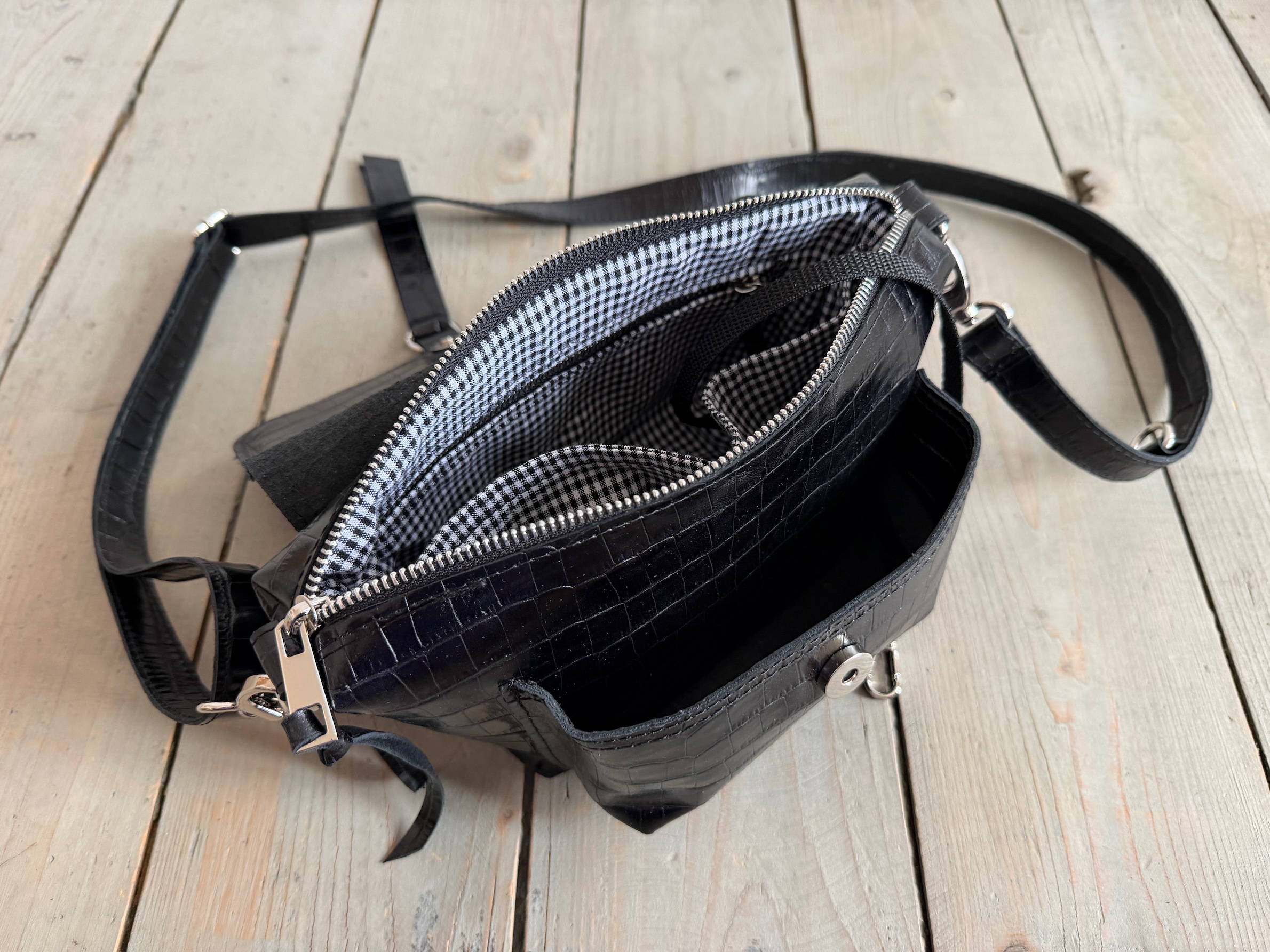 Na zewnątrz naszyta kieszonka idealna na telefon, zamykana na magnes.