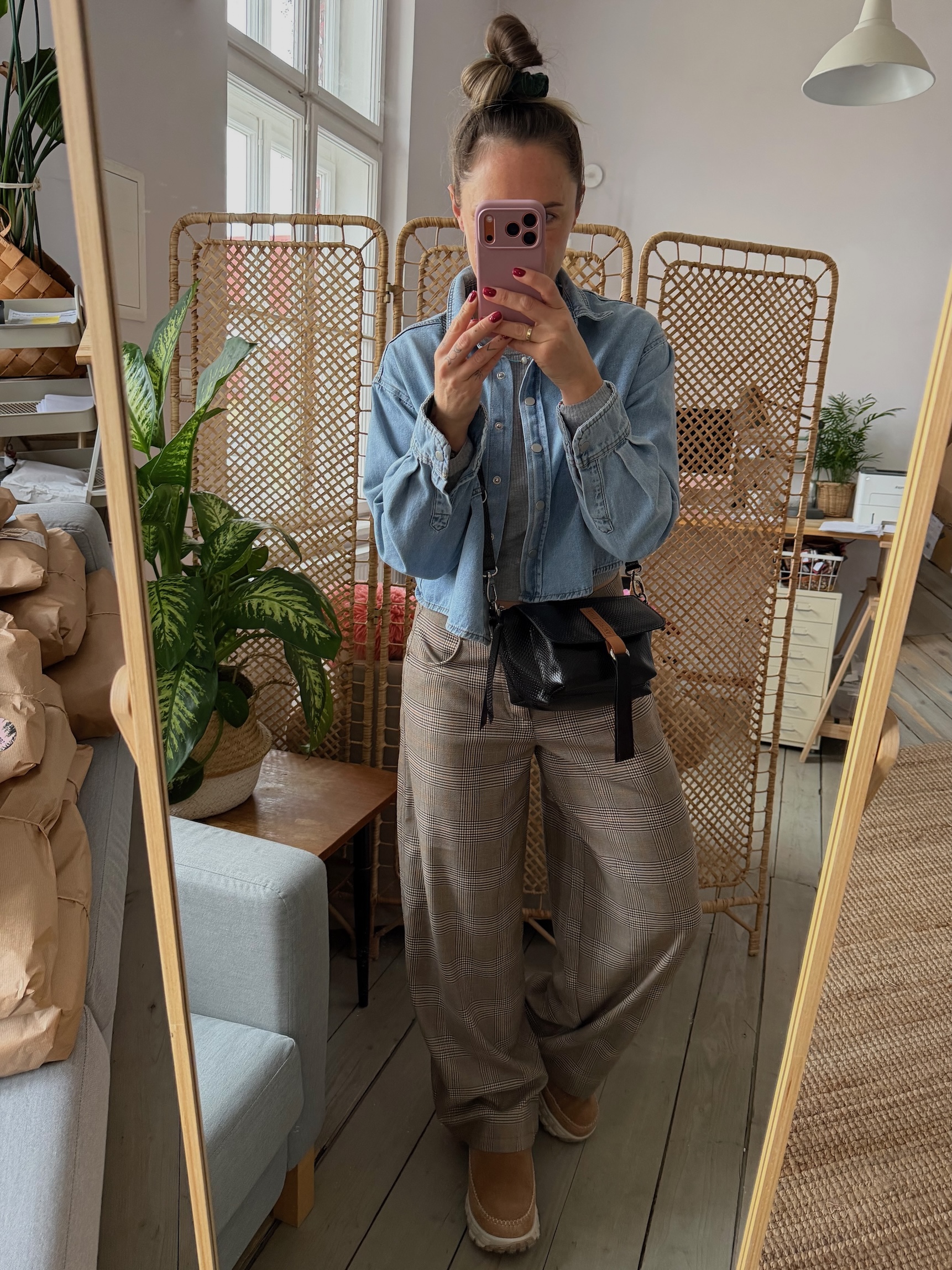 Na zewnątrz naszyta kieszonka idealna na telefon, zamykana na magnes.