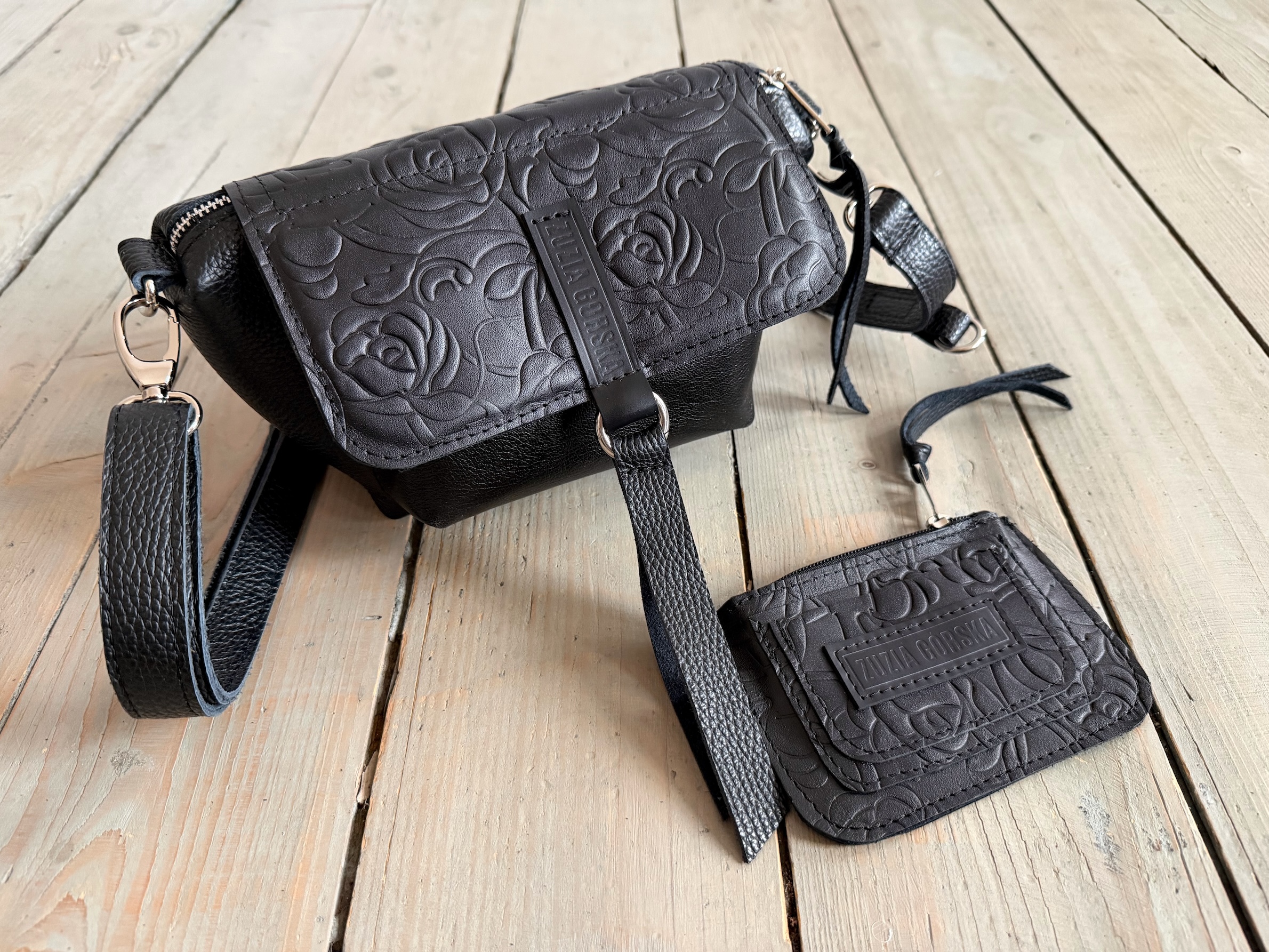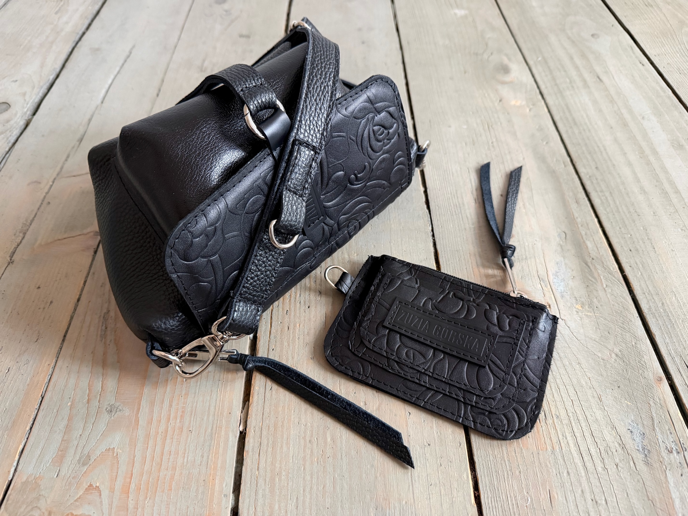 Uszyta ze skóry naturalnej licowej + bawełnianej podszewki.