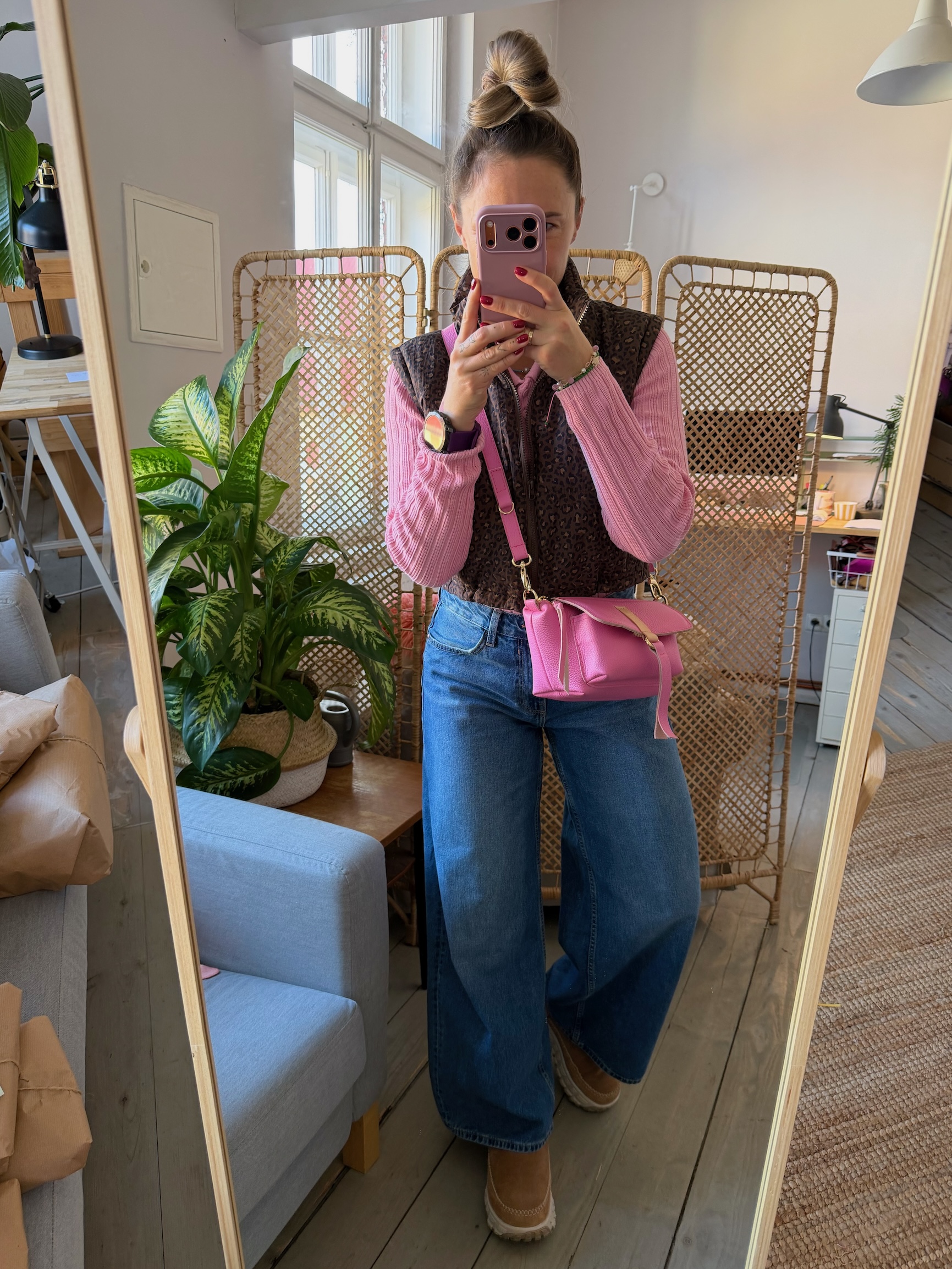 Na zewnątrz naszyta kieszonka idealna na telefon, zamykana na magnes.