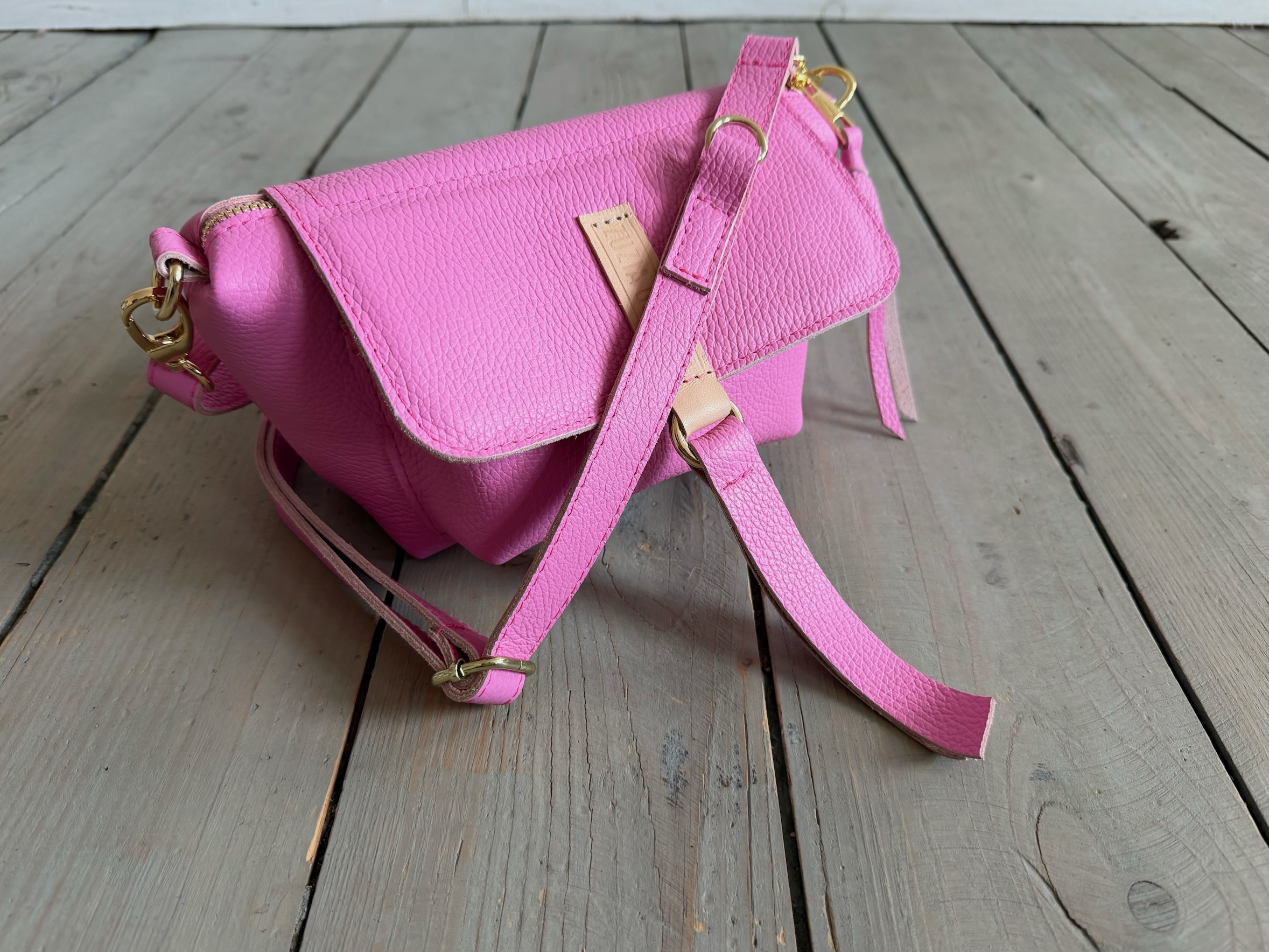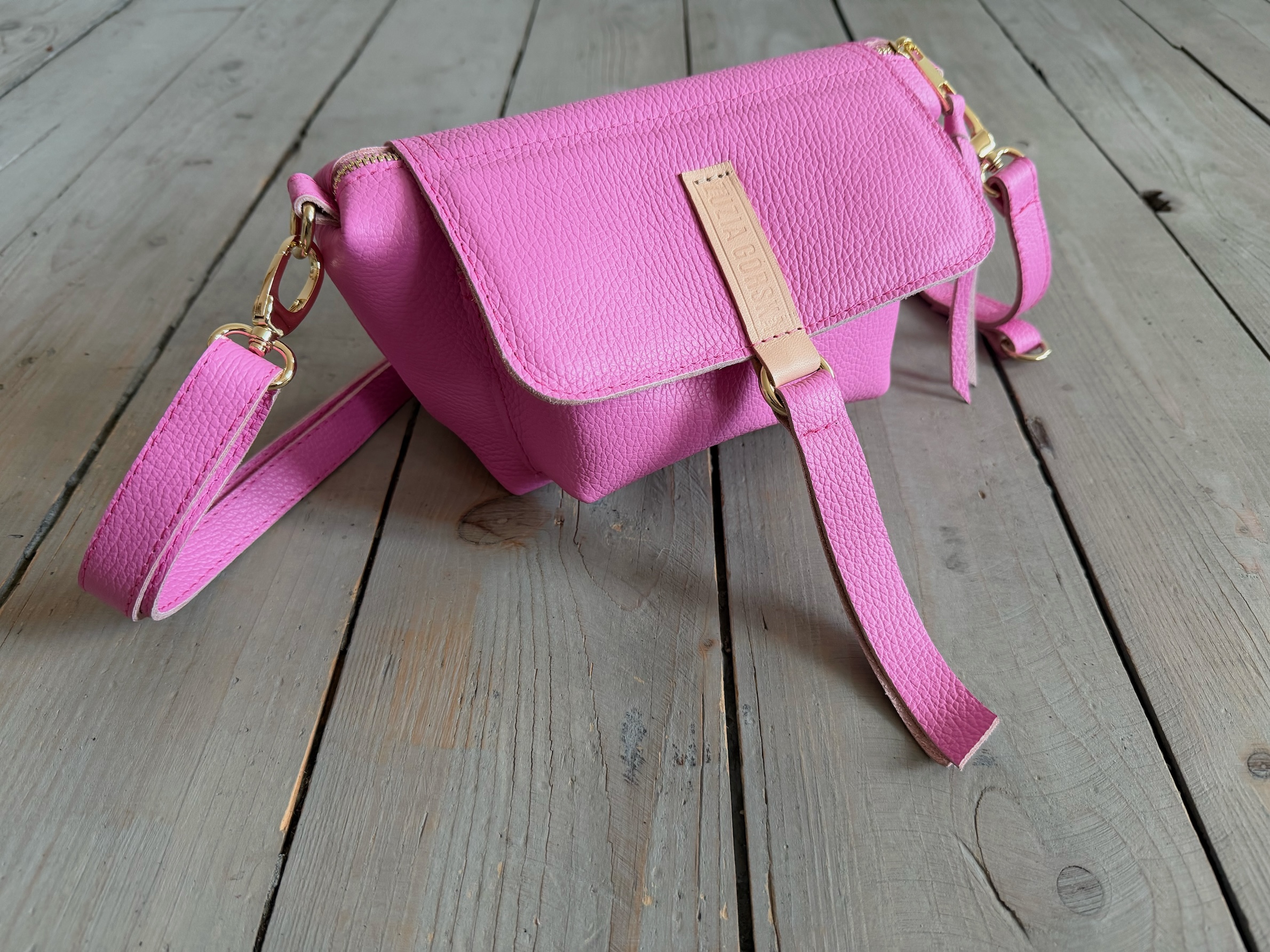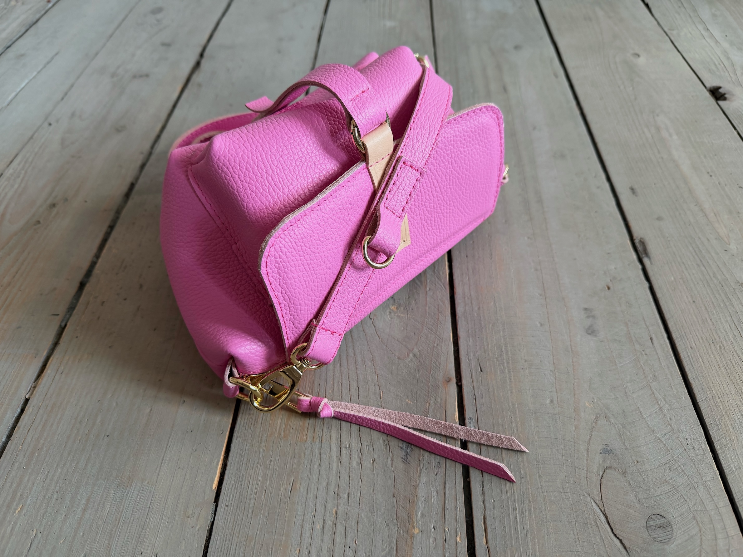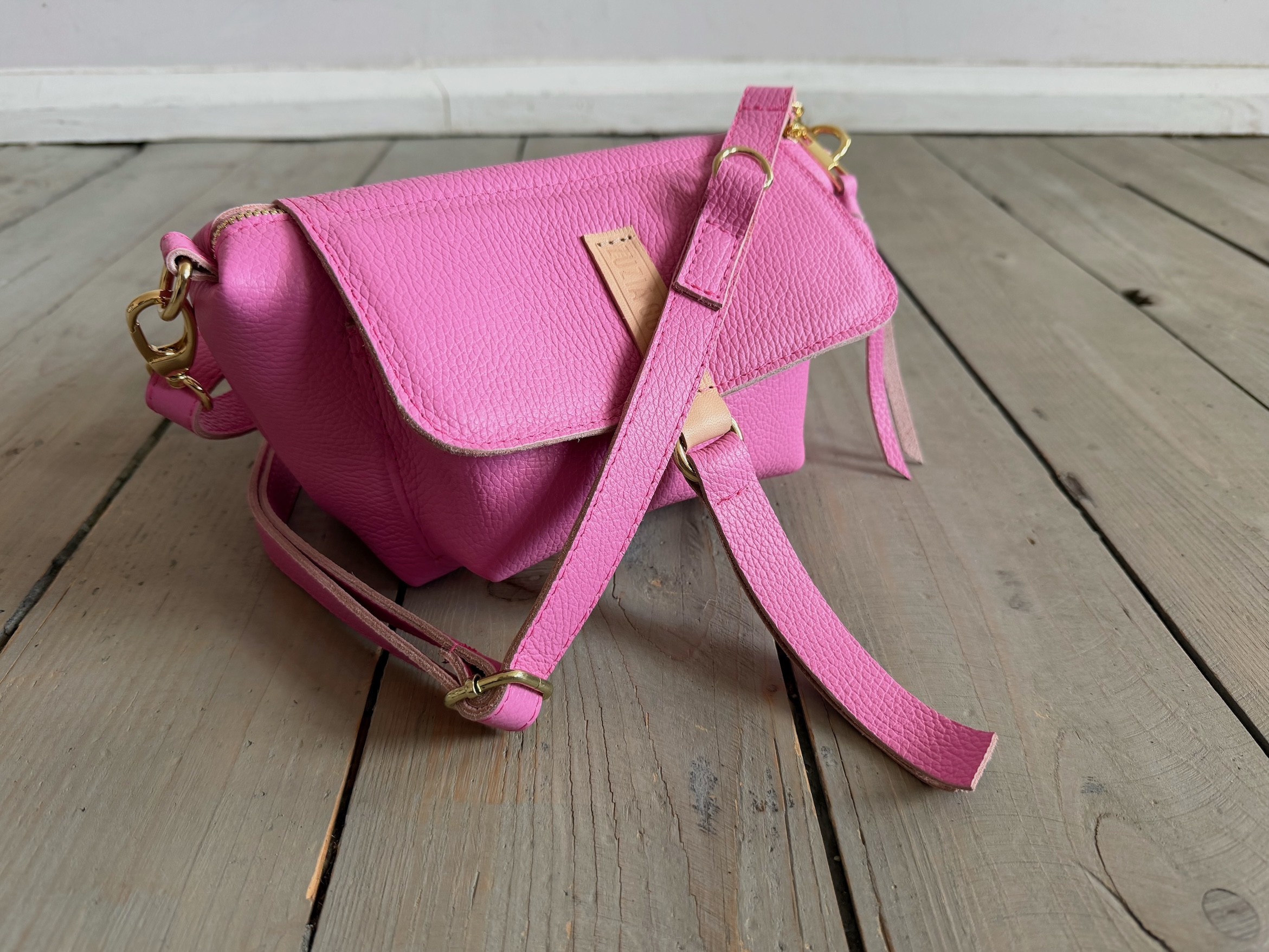 Uszyta ze skóry naturalnej licowej + bawełnianej podszewki.