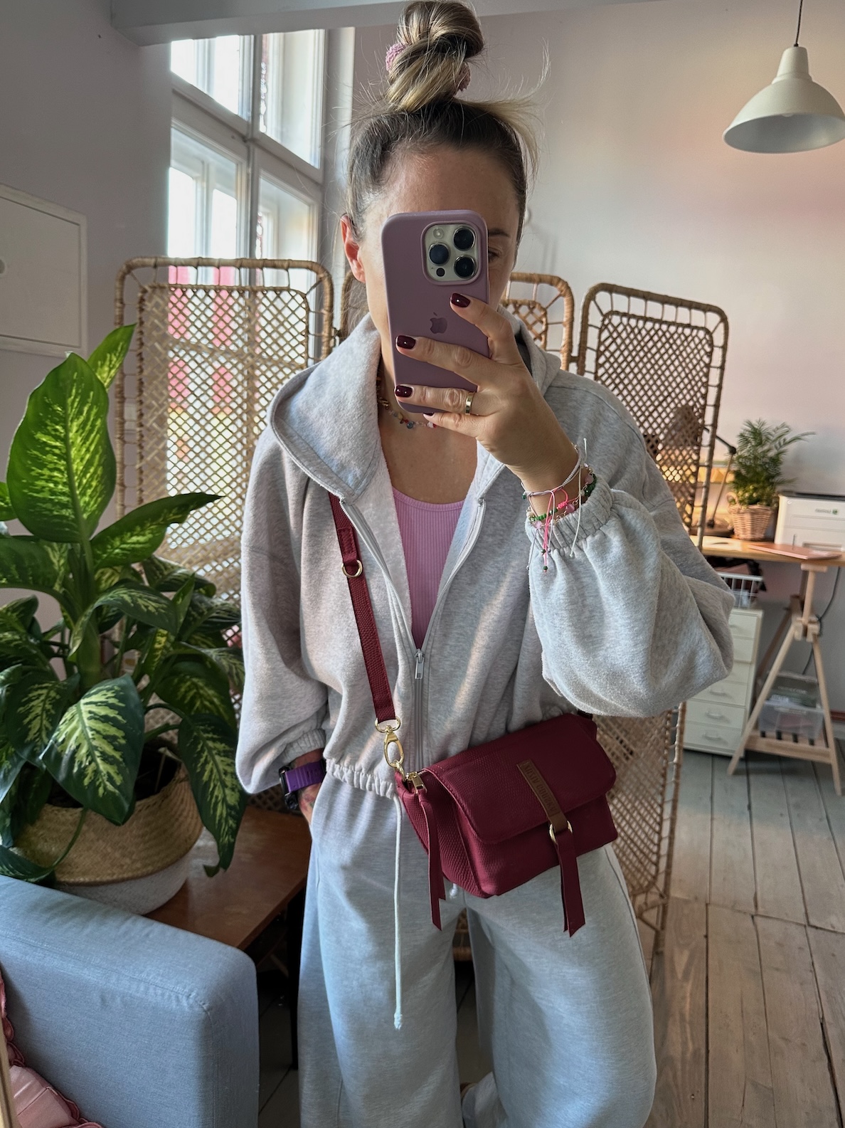 Na zewnątrz naszyta kieszonka idealna na telefon, zamykana na magnes.